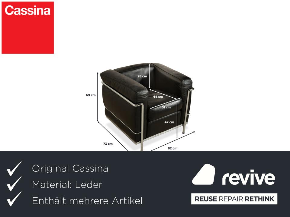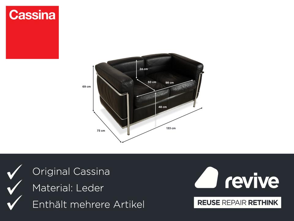 Cassina LC 2 Leder Sofa Schwarz Zweisitzer Sessel Le Corbusier Chrom