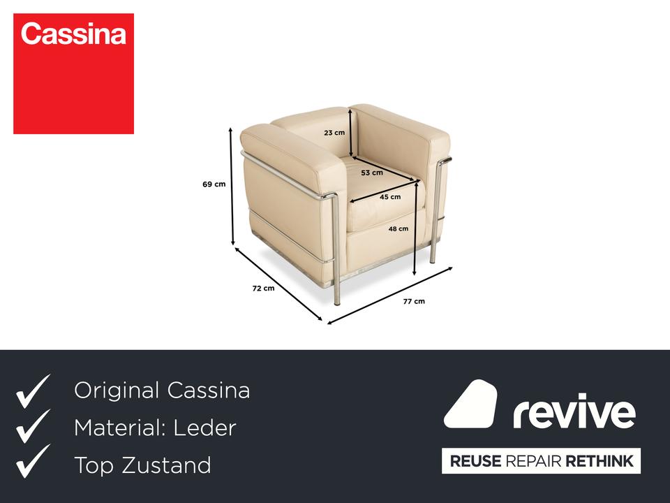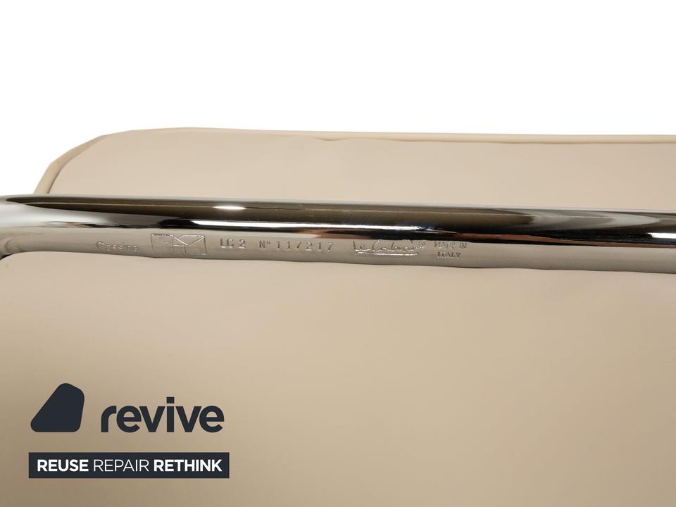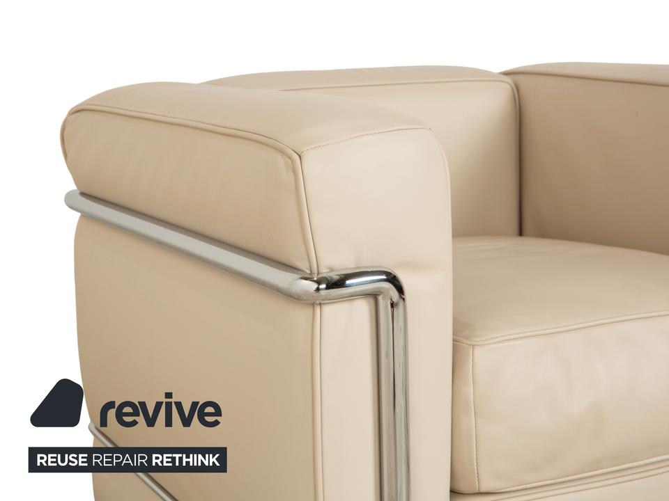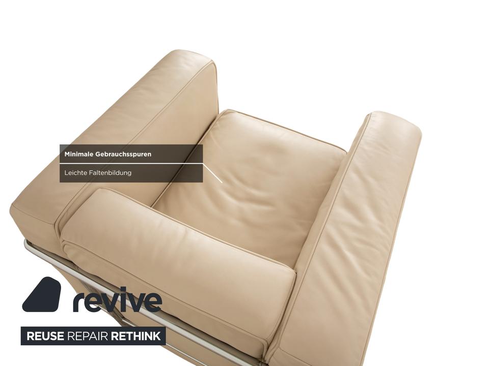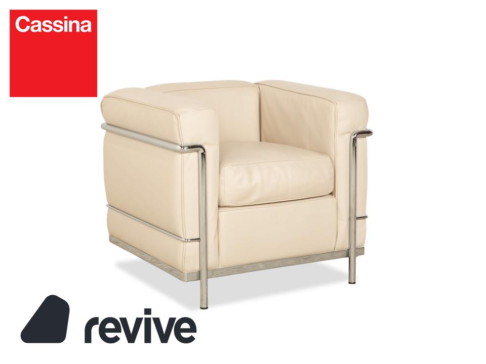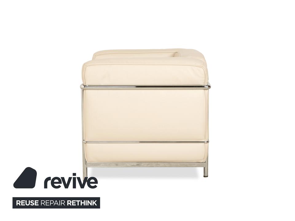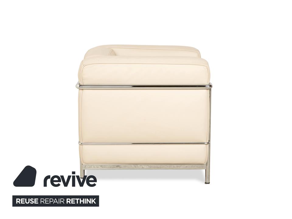 Der Cassina Le Corbusier LC 2 Sessel ist durch den Bauhaus-Stil und das Creme-Weiß von einer einzigartigen Optik geprägt. Das robuste silberne Gestell sorgt nicht nur für Stabilität, sondern dient auch als hervorragender Akzent zum hochwertigen Leder.