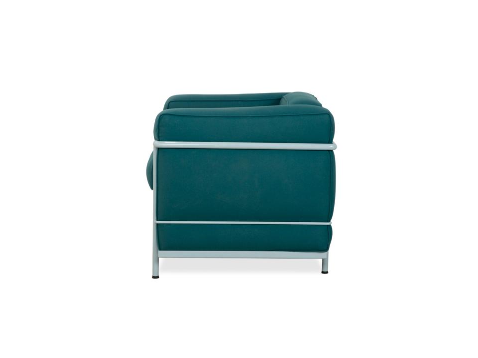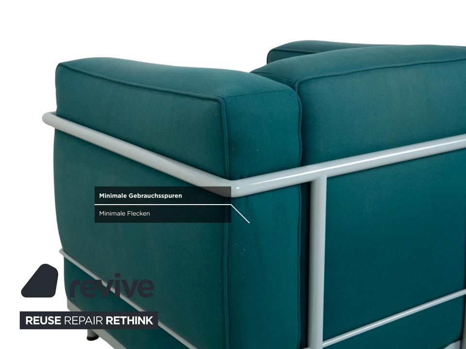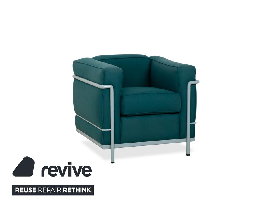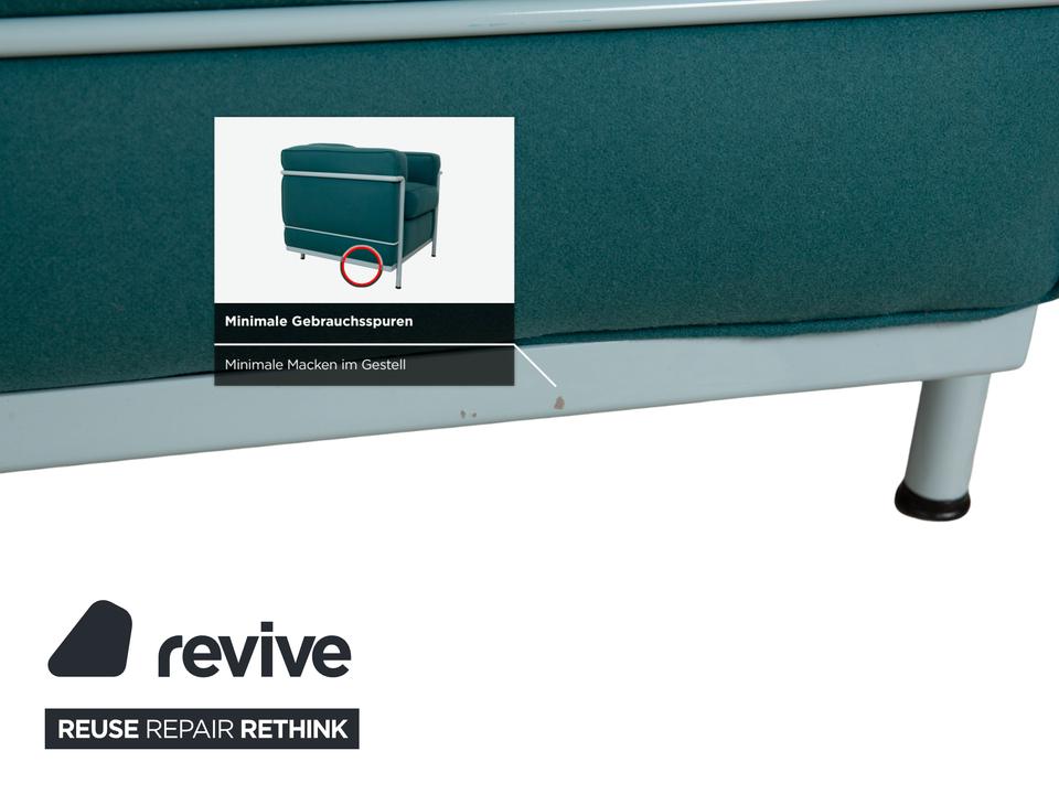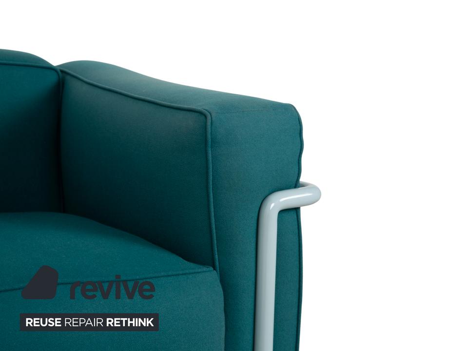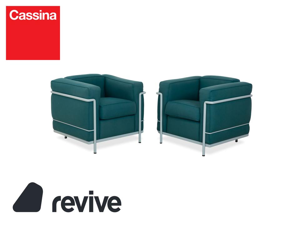 Mit diesem Set aus zwei Cassina LC 2 Sesseln holst du dir gleich die doppelte Portion Designgeschichte ins Haus. Wenn ein Sessel schon ein Statement ist, schafft dieses Duo eine komplette, hochkarätige Lounge-Atmosphäre. Besonders spannend ist hier das Zusammenspiel der Symmetrie: Die strengen, kubischen Stahlrohrrahmen geben dem Raum Struktur, während der Stoffbezug in tiefem Blau-Petrol das Ganze farblich aufbricht und viel wohnlicher macht als die klassische schwarze Leder-Variante.Die beiden Sessel eignen sich perfekt, um eine kommunikative Zone zu schaffen – stell sie klassisch gegenüber („Vis-à-vis“) oder leicht schräg mit einem Beistelltisch dazwischen. Du sitzt in beiden Sesseln im legendären „Grand Confort“, also tief und gemütlich, aber gut gestützt. Ein Ensemble, das beweist, dass Bauhaus-Design nicht kühl sein muss, sondern in dieser Farbe und im Doppelpack richtig lebendig und einladend wirkt.