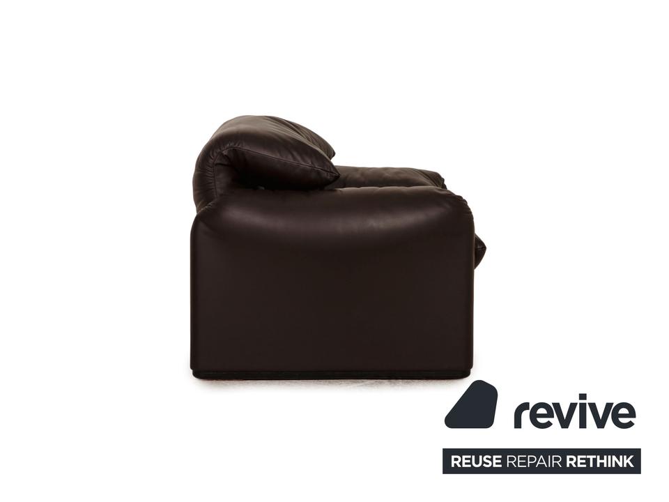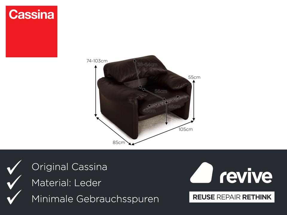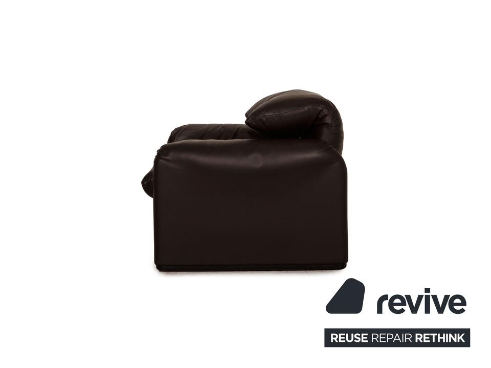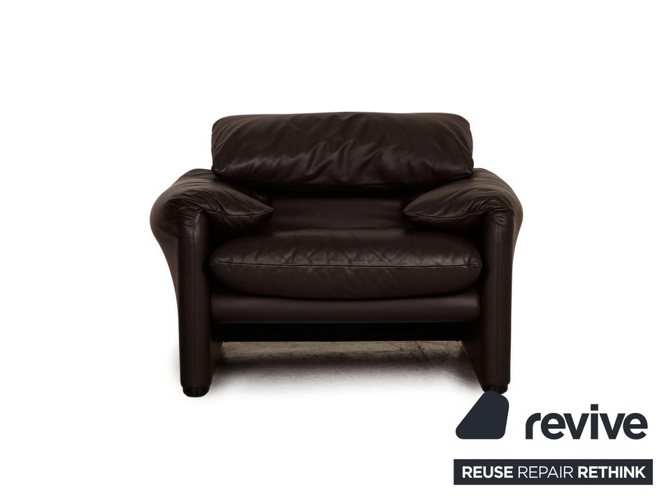 Der Maralunga Sessel von Cassina ist mit einem dunkelbraunen Echtleder bezogen. Er überzeugt mit seinem zeitlosen Design und der komfortablen, aufstellbaren Rückenlehne.