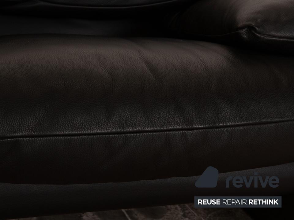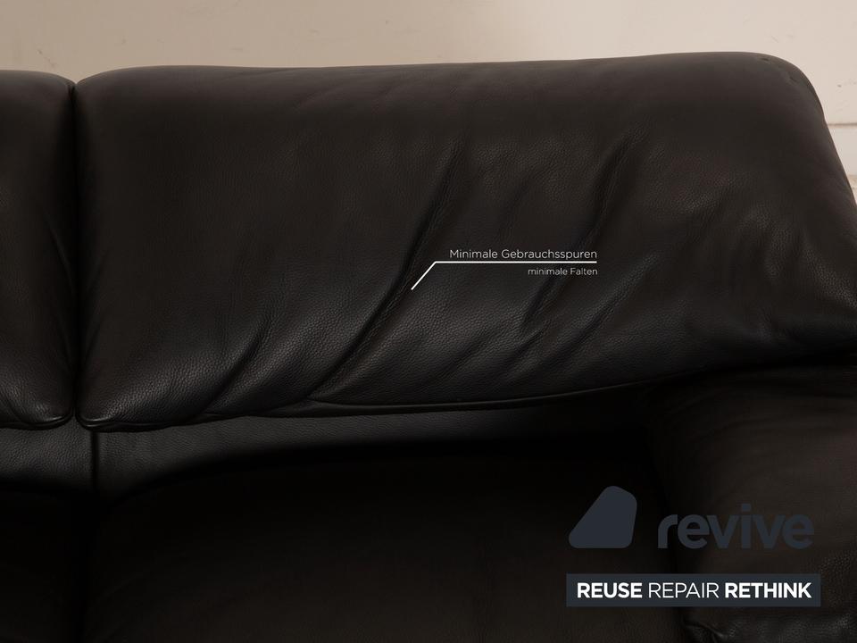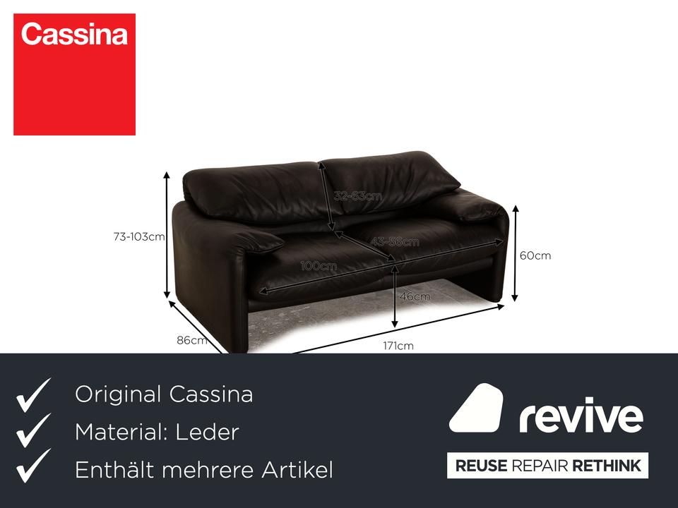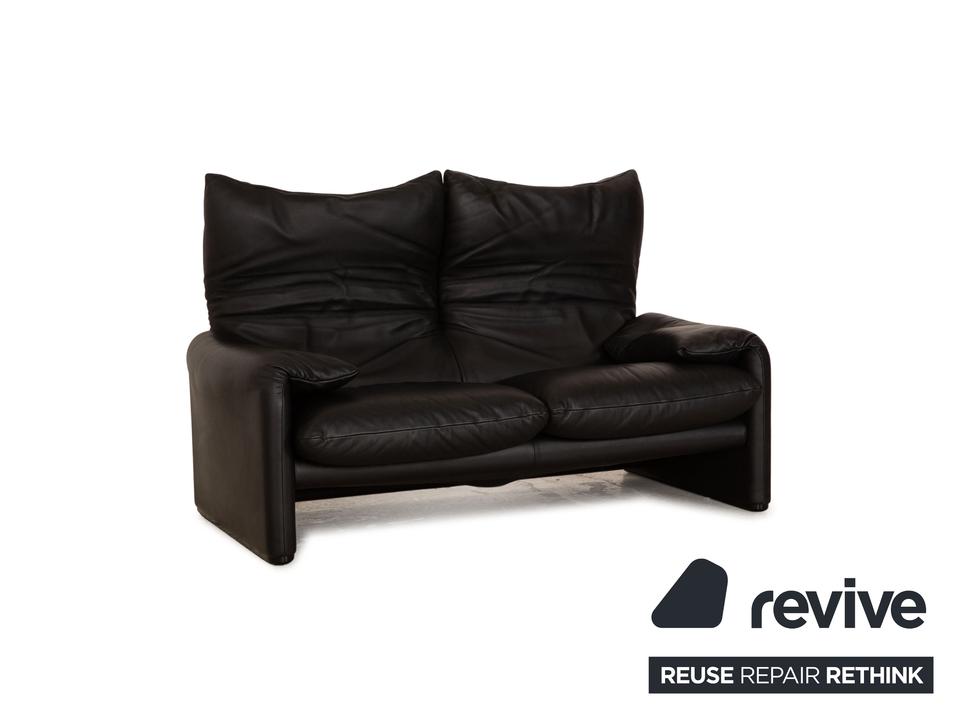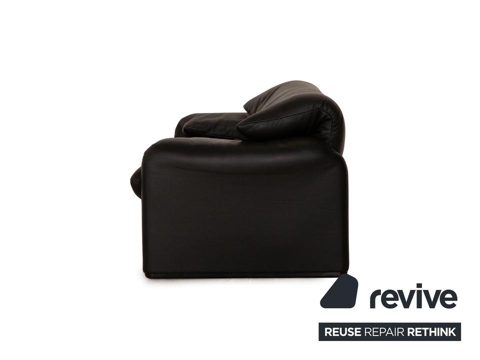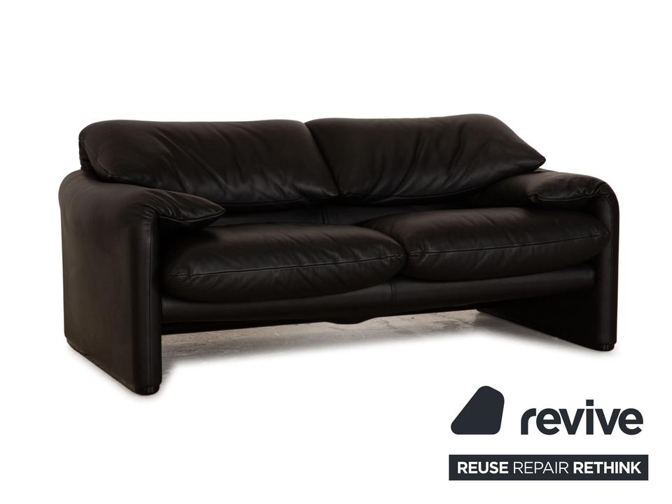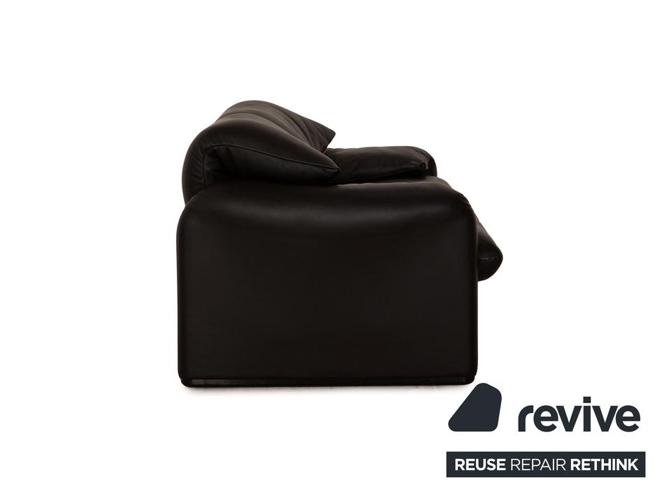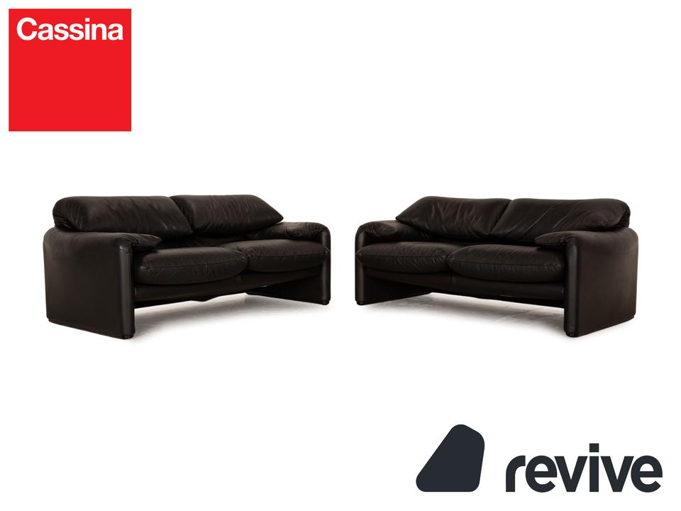 Die Maralunga Sofa Garnitur von Cassina ist mit einem schwarzen Echtleder bezogen und steht auf bodentiefen Seitenteilen. Das klassische Design und die abgerundeten Kanten zeichnen die Garnitur aus. Die Garnitur besteht aus zwei Zweisitzern.