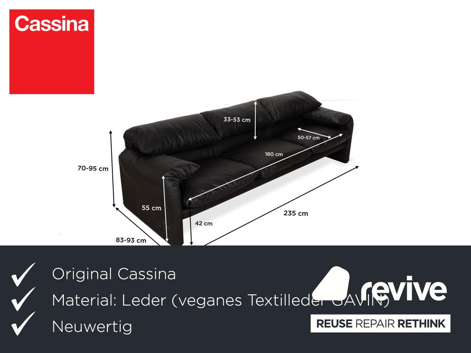 Das Cassina Maralunga aus veganem Leder überzeugt durch seine große Sitzfläche und den verstellbaren Rückenlehnen. Der Neubezug gewährt höchsten Komfort und Langlebigkeit, während der tiefe Schwarzton Ruhe und Stil ausstrahlt.
