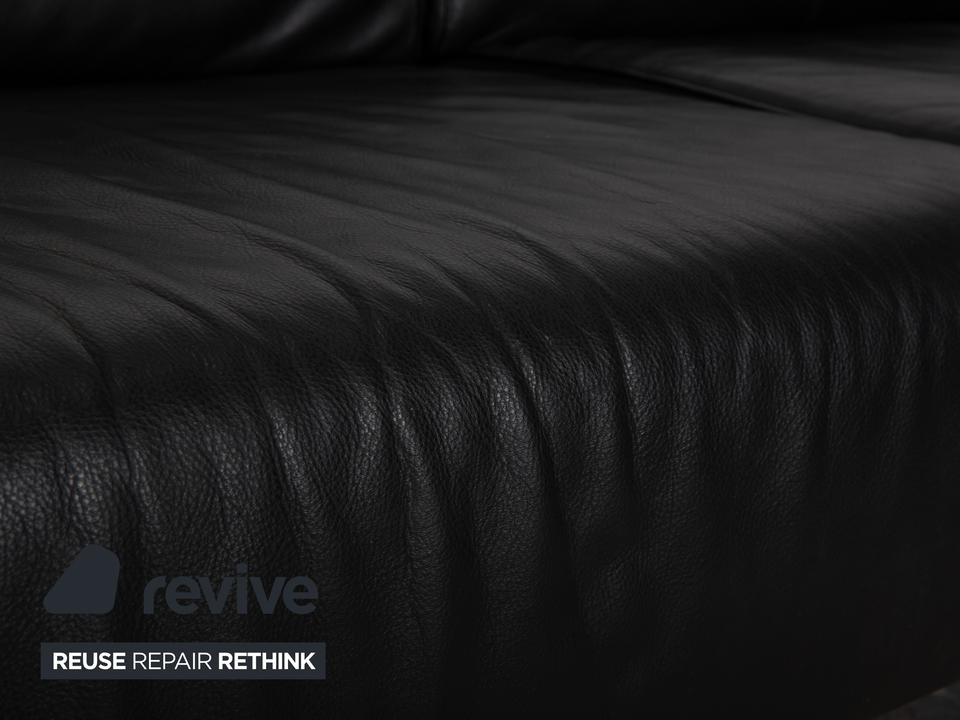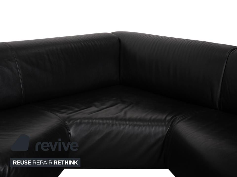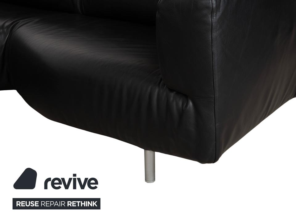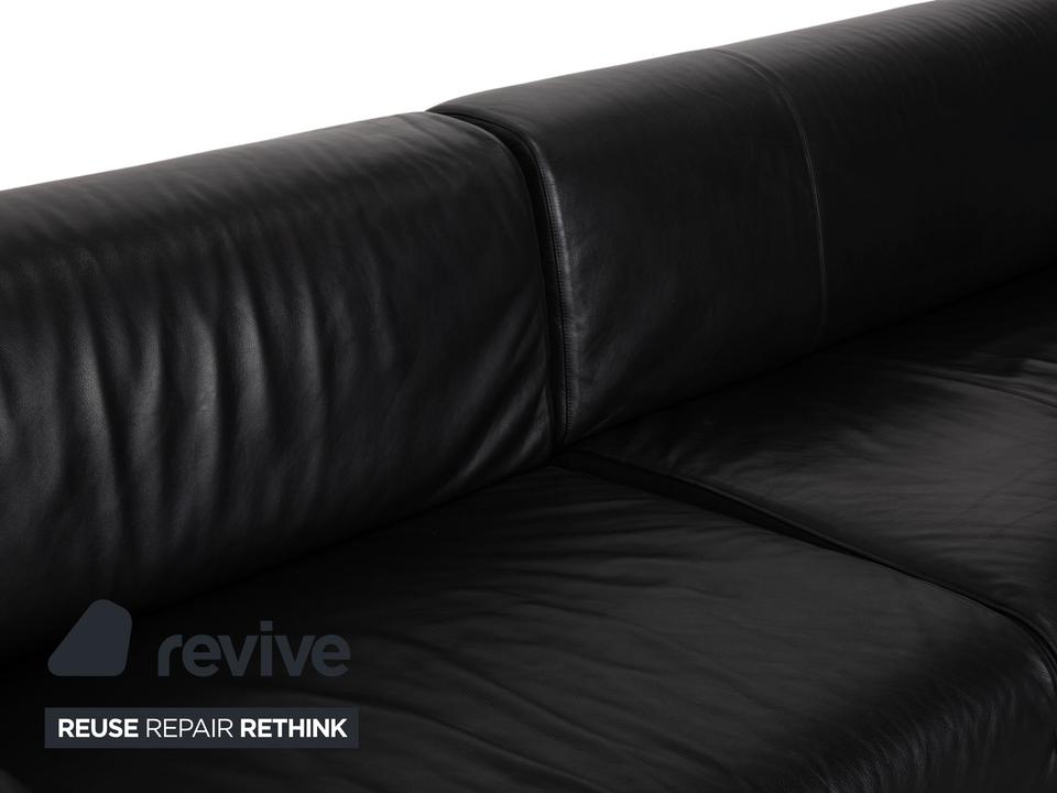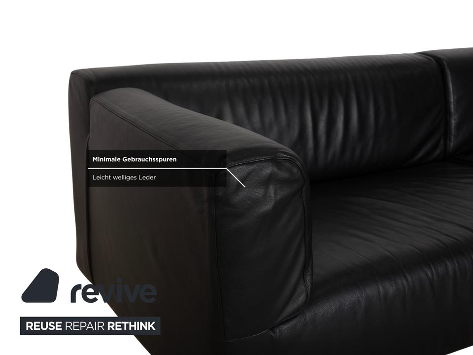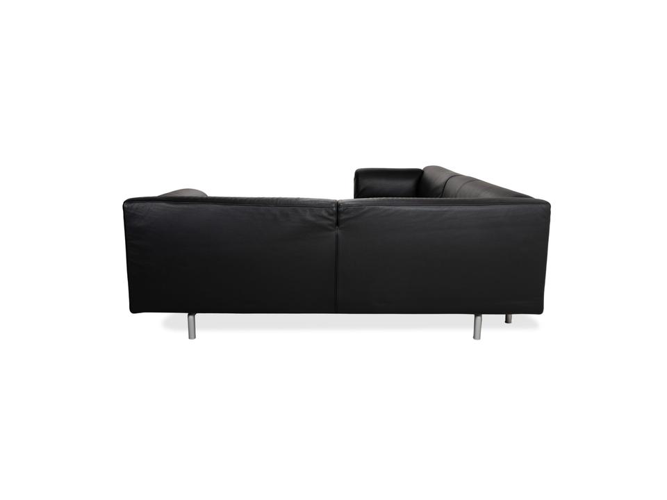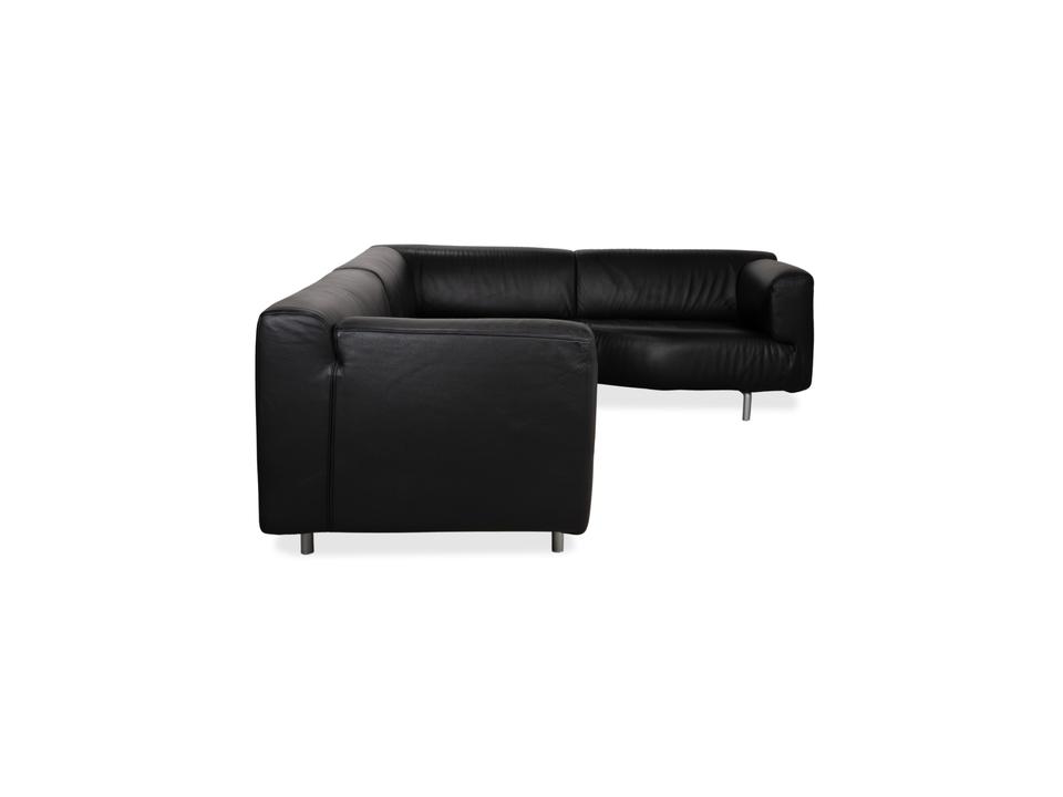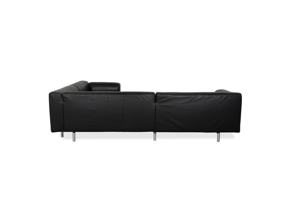 Mit dem Modell „Met“ von Cassina holst du dir italienische Designgeschichte der 90er Jahre ins Haus, entworfen von Piero Lissoni und S. Sanyal. Diese Eckgarnitur in edlem, schwarzem Leder besticht durch ihre absolute Schlichtheit und Eleganz. Es ist eines dieser Möbelstücke, die nicht schreien müssen, um zu wirken – die klaren, geometrischen Formen sprechen für sich.Das hochwertige Leder verleiht dem Sofa eine luxuriöse, glatte Haptik und eine zeitlose Ästhetik, die nie aus der Mode kommt. Die schlanken, zylindrischen Metallfüße in Silber heben den kompakten Korpus leicht an und unterstreichen den puristischen Charakter. Ein Design-Klassiker, der sich perfekt in minimalistische oder moderne Einrichtungen einfügt und dabei höchsten Sitzkomfort bietet.