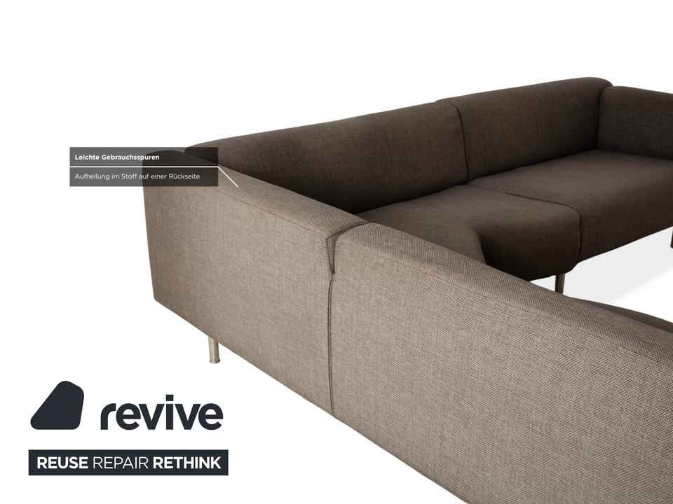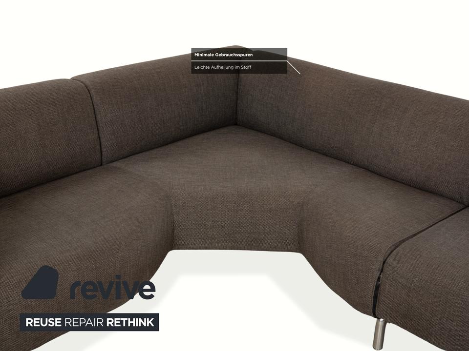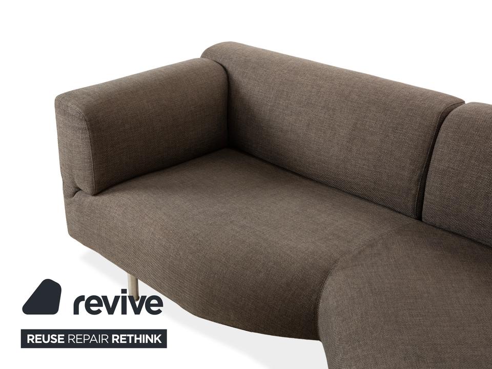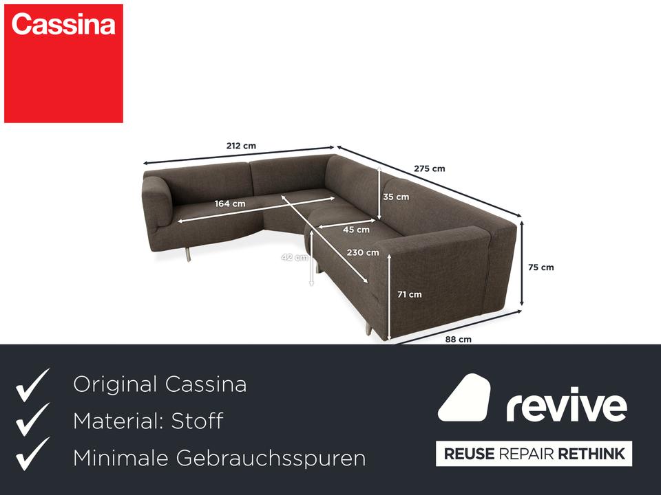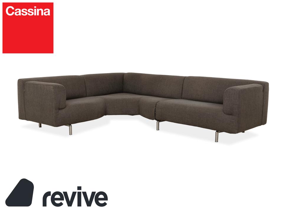 Das Met 250 Sofa von Cassina ist mit einem grauen Stoff bezogen und steht auf schlichten, schmalen Metallfüßen. Das klassische Design und die abgerundeten Kanten, sowie die großzügigen Sitzflächen zeichnen das Ecksofa aus.