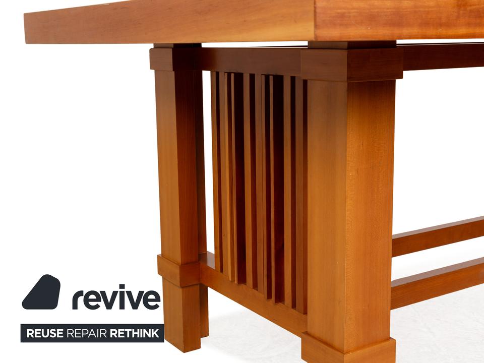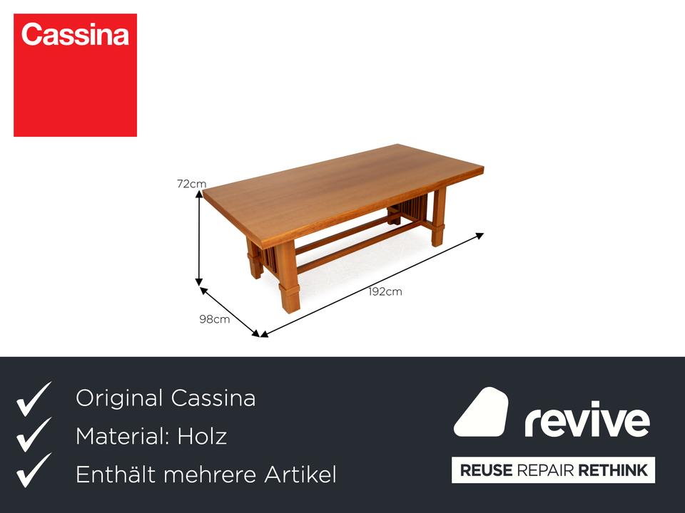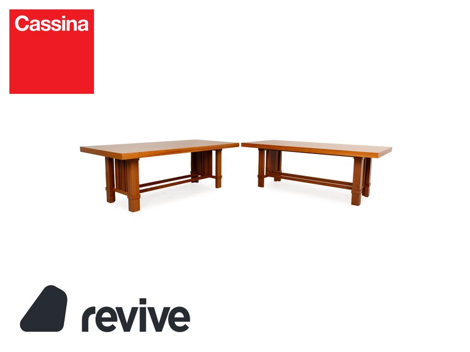 Die Tisch Garnitur Taliesin von Cassina besteht aus braunem Kirschholz und überzeugt durch das stilvolle, massive Design. Die Garnitur besteht aus zwei Esstischen.