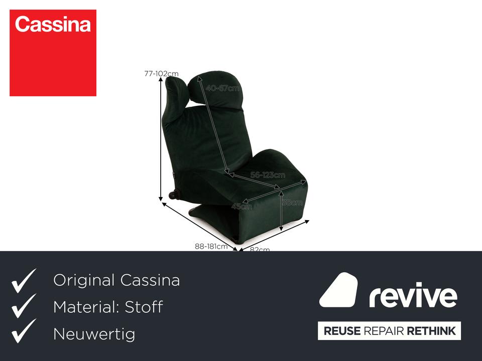 Der Wink Sessel von Cassina ist mit einem dunkelgrünen Stoff bezogen und steht auf kleinen, schwarzen Füßen. Die praktische Relaxfunktion und das minimalistische Design zeichnen ihn aus.Material ASTERA 324Material/material: 100% Polyester Breite/width: 140 cm Gewicht/weight: 560 g/lfm 560 g/rm Kettrapport/warp repeat: — Schußrapport/weft repeat: — Scheuertouren/martindale: 100.000