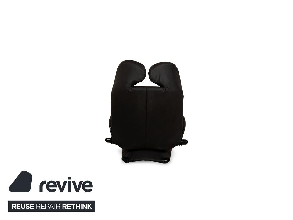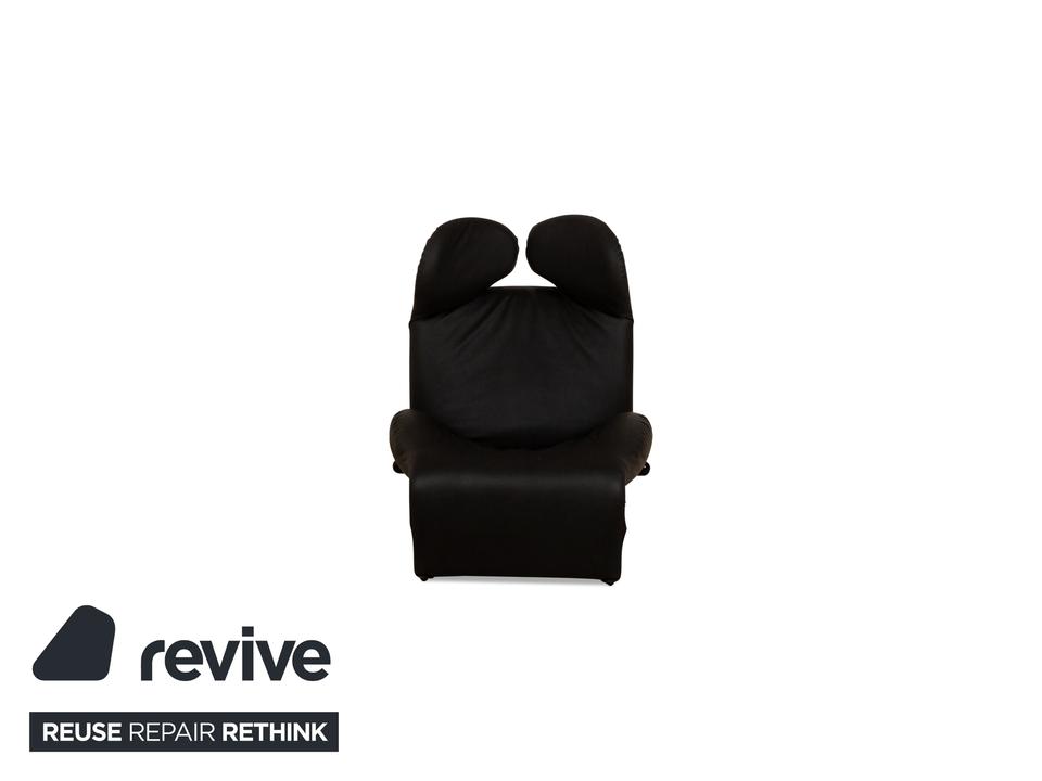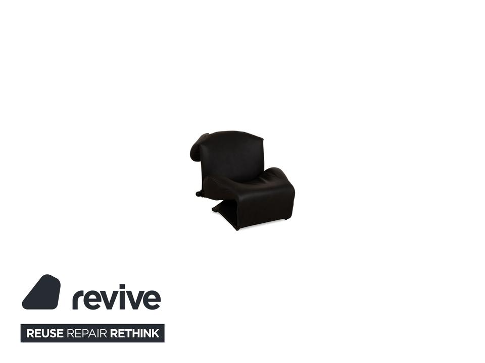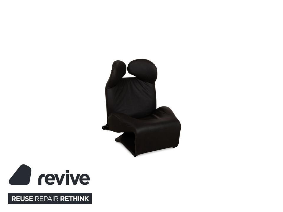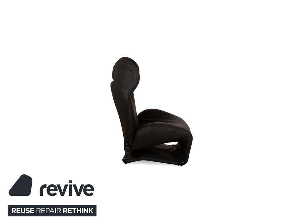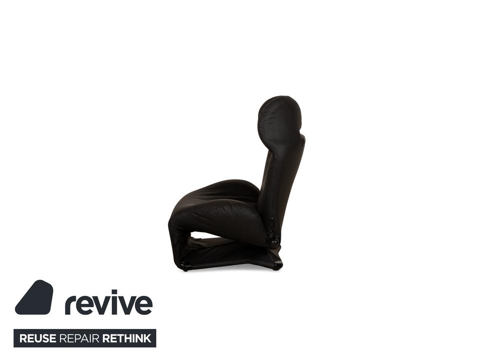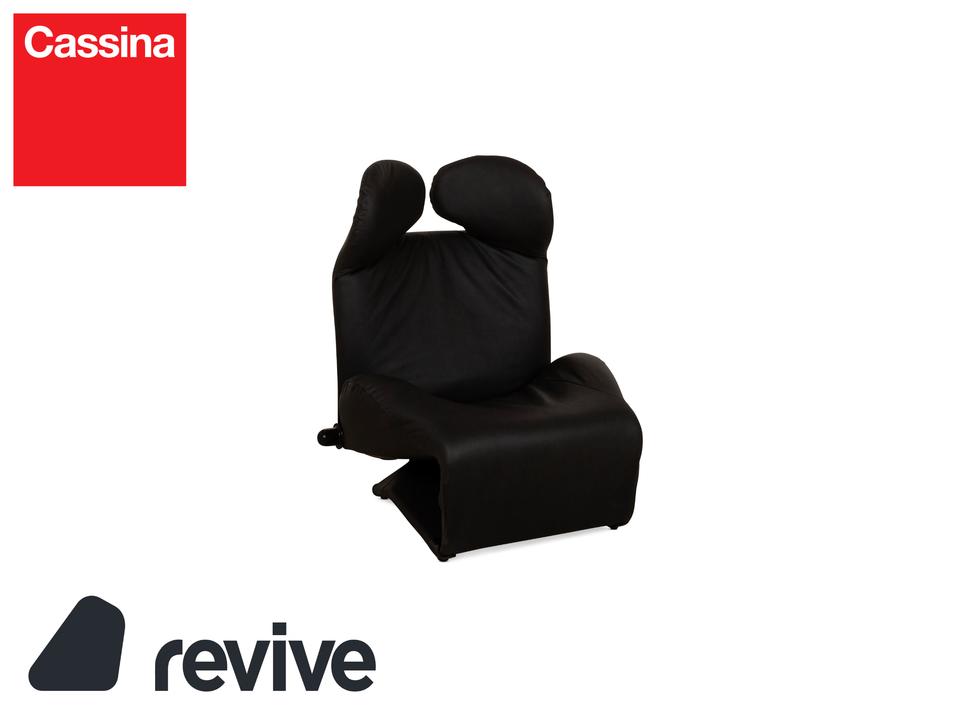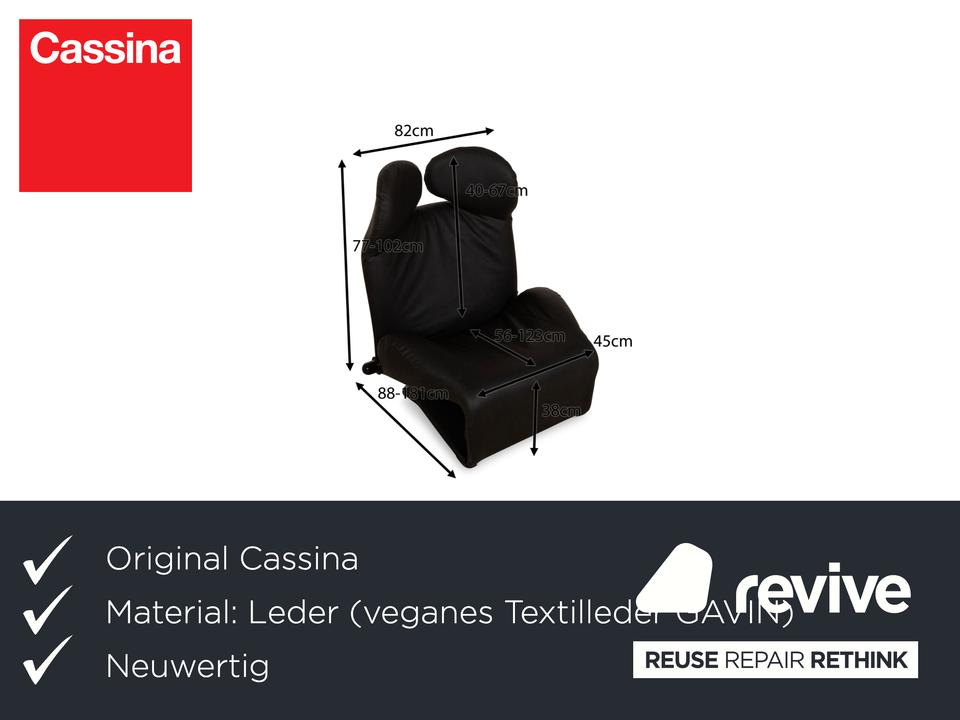 Der Wink Sessel von Cassina ist mit einem dunkelgrauen, veganen Leder neu bezogen und steht auf kleinen, schwarzen Füßen. Die praktische Relaxfunktion und das minimalistische Design zeichnen ihn aus.