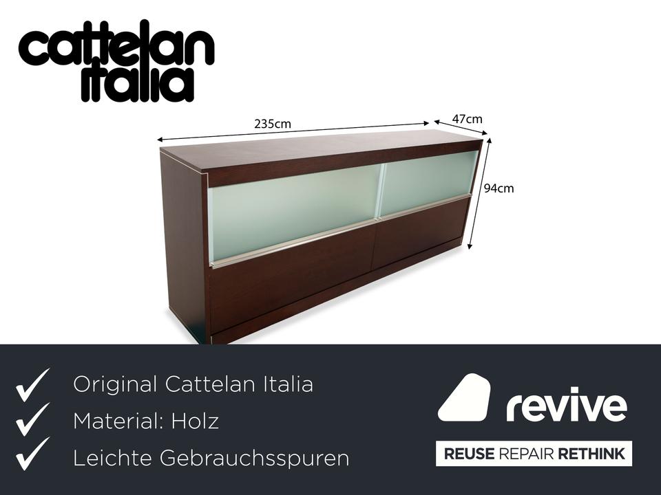 Das Sideboard Cattelan Italia überzeugt durch sein markantes Design und die Verbindung verschiedener Materialien. Die Holz- und Glasflächen der Front sind Teil eines außergewöhnlichen Schiebe-Mechanismus, der das Innenleben freigbt.
