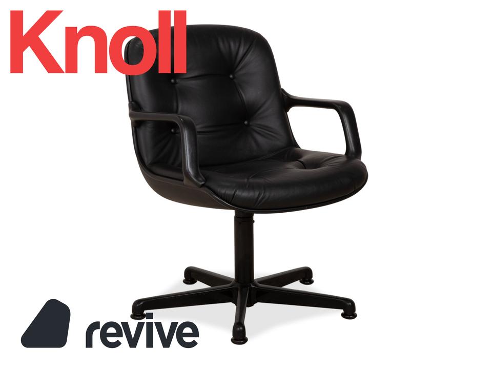 Dieser sehr bequeme Sessel wurde von Charles Pollock für Comforto entworfen und von Knoll produziert. Er ist mit wunderschönem braunem Leder mit schöner Patina bezogen. Der Sessel befindet sich in einem Vintage-Zustand, wie abgebildet. Das Leder ist weiterhin in sehr gutem Zustand. Der Sessel ist drehbar.Die Eleganz der Mitte des 20. Jahrhunderts: Der Executive Chair von Charles Pollock (1963) wurde für noch mehr Komfort optimiert und kann in einem ergonomisch durchdachten Sitzmöbel zu großen Ideen inspirieren. Pollock, der nach seinem Abschluss am Pratt Institute im Büro von George Nelson arbeitete, wurde von Florence Knoll für sein außergewöhnliches Talent geschätzt. Sein Directional Chair gilt als eines der bekanntesten Designs von Knoll, geprägt durch einen Aluminiumrahmen, der Sitz und Rücken sowohl visuell als auch konstruktiv trägt. Gefertigt von Knoll nach den ursprünglichen und strengen Vorgaben des Designers. Mit einer fünfjährigen Herstellergarantie. Hergestellt in den USA. Die abgesenkte Vorderkante des Sitzes sowie die geformte Rückenlehne sorgen für langanhaltenden Komfort.