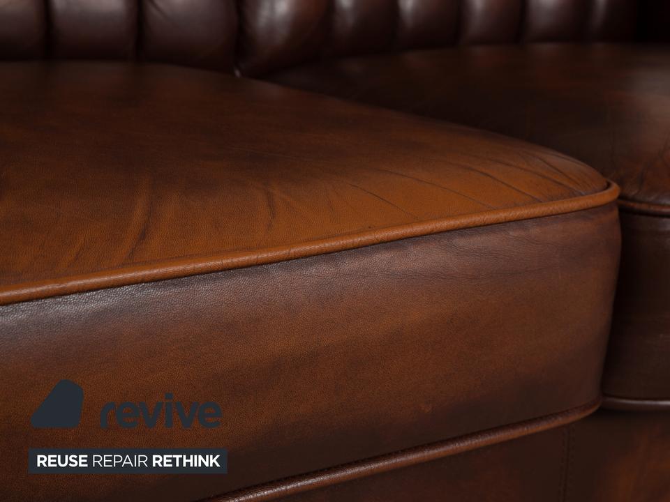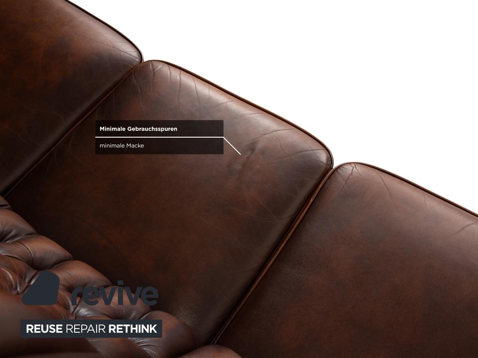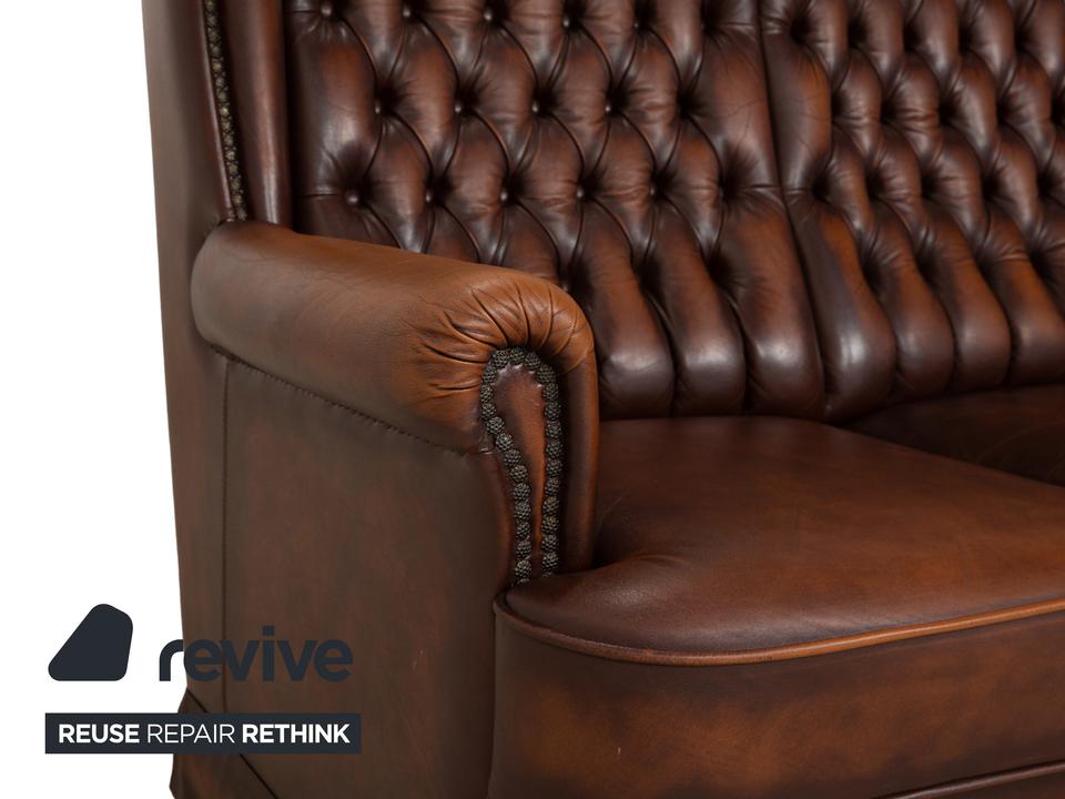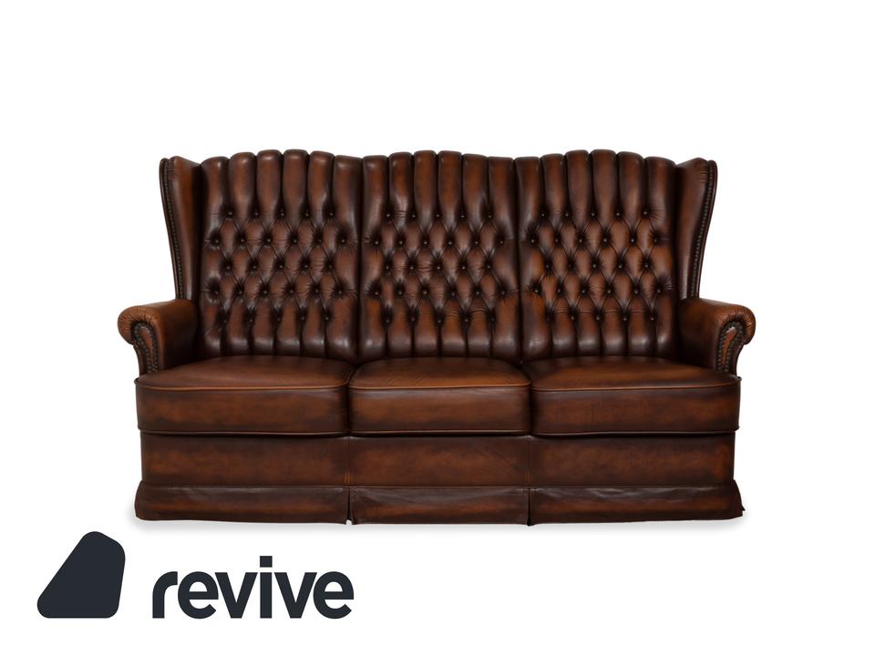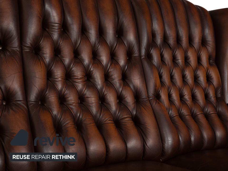 Das Chesterfield Dreisitzer Sofa legt eine extrem einzigartiges Design an den Tag. Geprägt von rostig-braunem Leder, gepolsterten Rückenlehnen und extravaganten Details agiert die Couch als echter Hingucker. Zudem bietet das hochwertige Leder maximalen Komfort, gepaart mit Langlebigkeit.