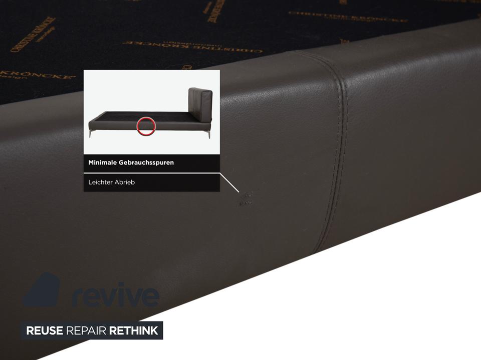 Mit diesem Bett von Christine Kröncke holst du dir pure Eleganz ins Schlafzimmer. Die Münchner Design-Marke steht für stilvolles, zeitloses Interieur, und genau das strahlt dieses Modell auch aus. Es ist rundum mit feinem Leder in einem dezenten, erdigen Braunton bezogen, der Ruhe und Wertigkeit vermittelt und sich farblich fast überall einfügt.Das Design ist bewusst schlank gehalten: Der Rahmen wirkt nicht wuchtig, sondern durch die filigranen, silbernen Metallfüße fast schwebend und leicht. Das Kopfteil ist angenehm gepolstert, aber optisch zurückhaltend – perfekt, um sich abends noch mal mit einem Buch anzulehnen, ohne dass das Bett den ganzen Raum erschlägt. Da es sich hier um die Basis eines Boxspringbettes handelt, hast du bereits das solide, gefederte Fundament, auf dem deine Matratze für optimalen Schlafkomfort liegen kann.