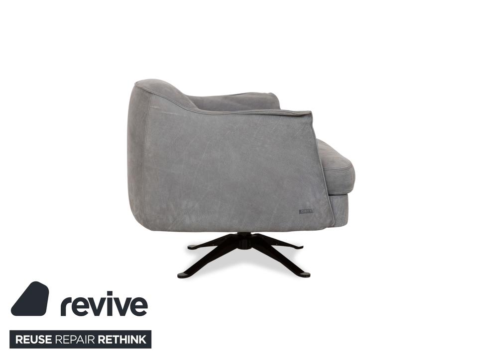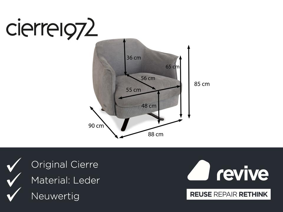 Der Cierre Boheme Leder Sessel ist ein eleganter grauer Sessel mit passendem Hocker in einem zeitlosen Design. Der Sessel bietet optimalen Sitzkomfort mit leicht abgerundeten Kanten, weichen Polstern und einem robusten Metallfuß. Der Hocker ergänzt das Set perfekt und lädt zum Entspannen ein. Ideal für ein modernes Wohnzimmer oder eine gemütliche Leseecke.