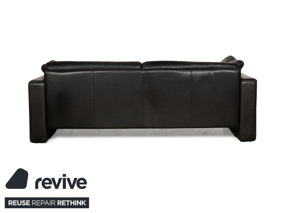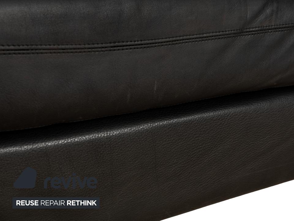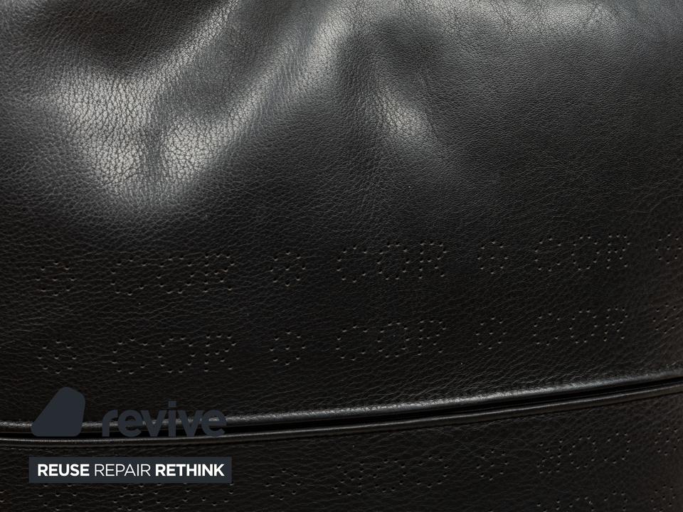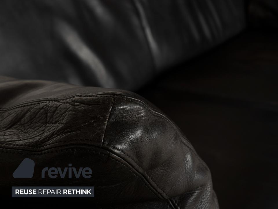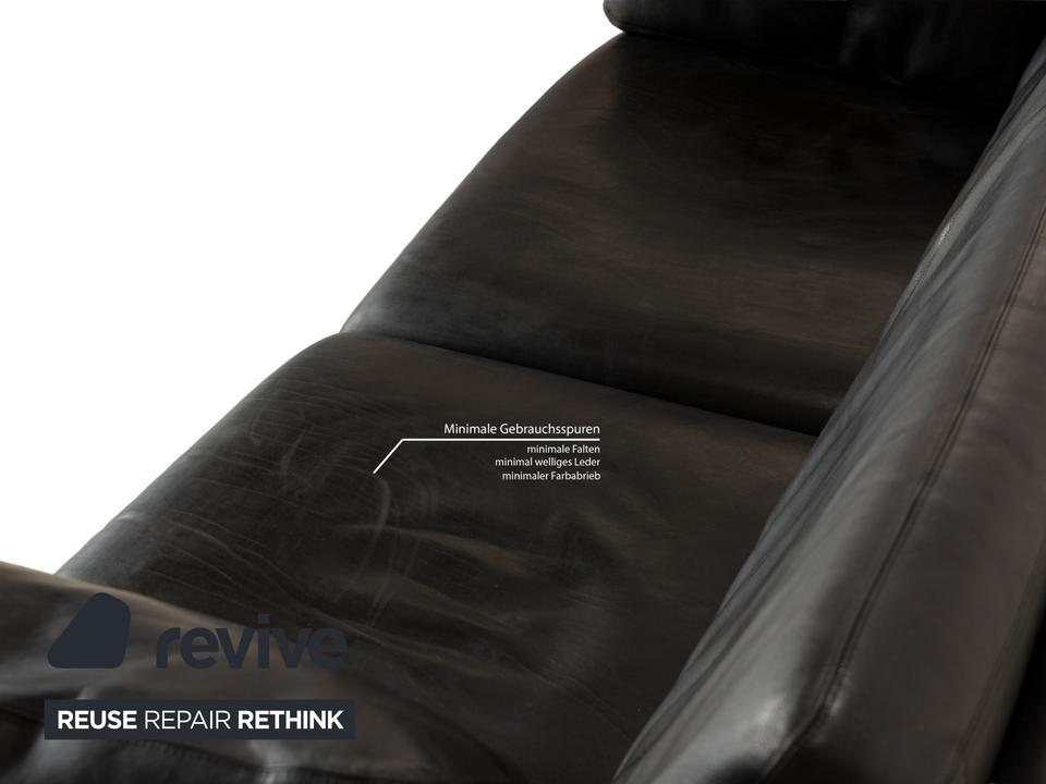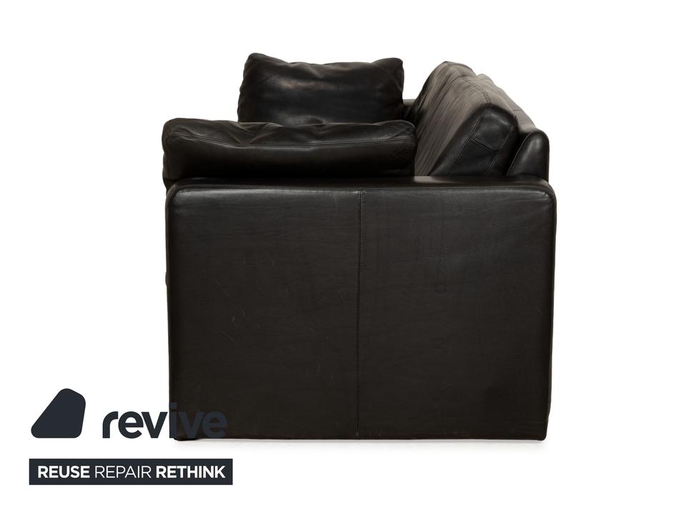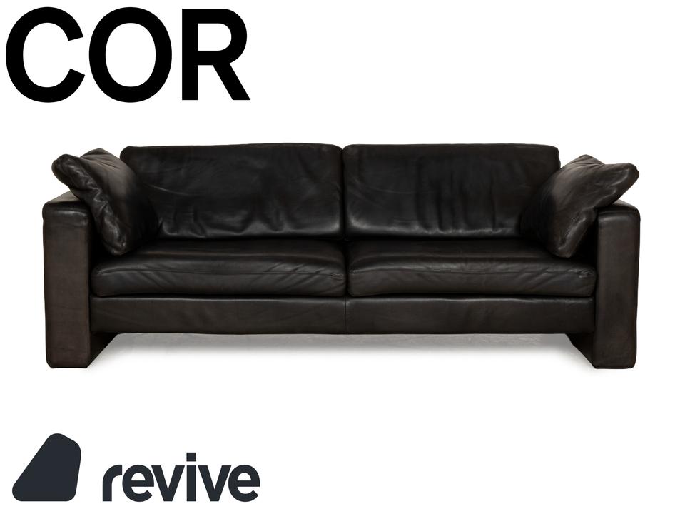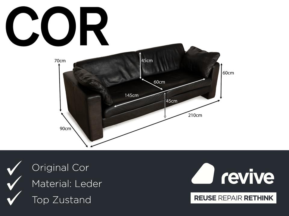 Das Sofa Conseta von Cor ist mit schwarzem Leder bezogen und steht auf bodentiefen Seitenteilen. Es zeichnet sich durch sein klassisches, auf Komfort bedachtes Design aus und lädt zum Verweilen ein. Breite Armlehnen und eine großzügige Polsterung sorgen dafür, dass dieser Dreisitzer zum neuen Lieblingsplatz im Wohnzimmer wird.