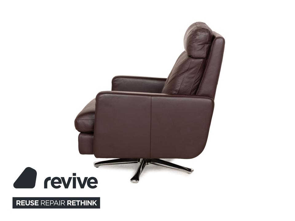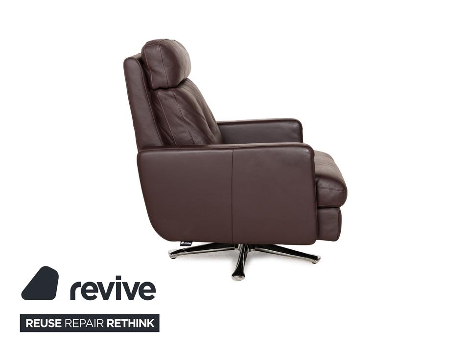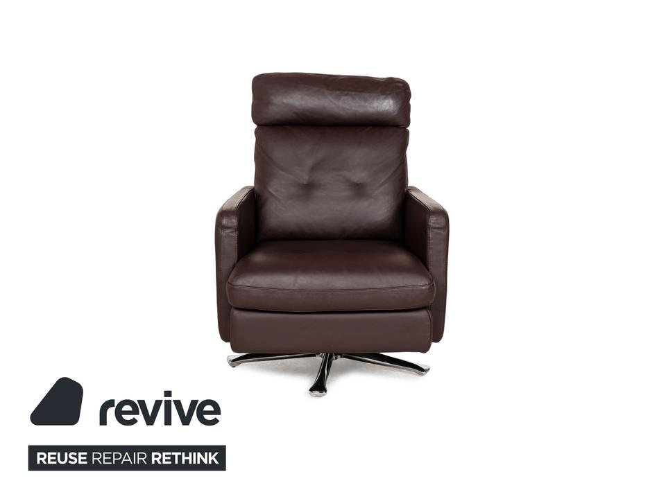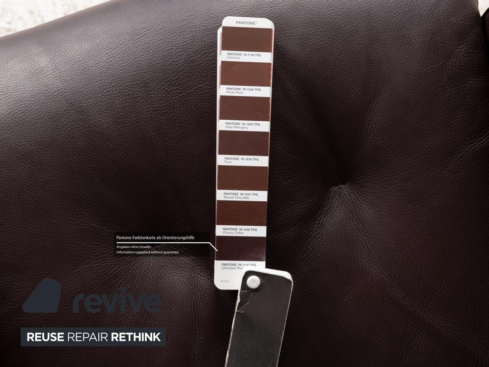 Der Sessel Cor von Conseta ist mit einem dunkelbraunen Leder bezogen und steht auf einem Metallkreuz in Hochglanz. Er zeichnet sich durch sein klassisches, auf Komfort bedachtes Design aus und wird dank großzügiger Polsterung schnell zum neuen Lieblingsplatz in Büro oder Wohnzimmer.
