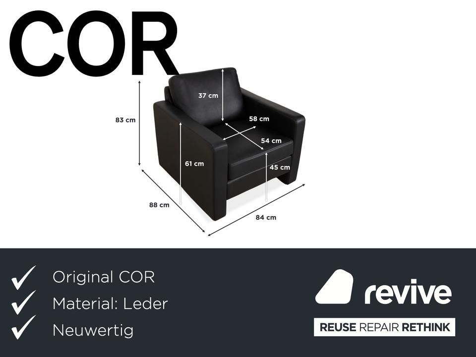 Der COR Conseta Echtleder Sessel verbindet klassische Eleganz mit maximalem Sitzkomfort und steht exemplarisch für die hochwertige Möbelkunst des deutschen Premium-Herstellers COR. Mit seiner klaren, kubischen Formgebung und der vollwertigen Echtlederpolsterung wirkt der Sessel zeitlos modern und fügt sich mühelos in vielfältige Einrichtungsstile ein – vom gehobenen Wohnbereich bis zur stilvollen Büro- oder Loungewelt. Gefertigt aus feinstem schwarzem Echtleder, überzeugt der Sessel durch eine angenehm weiche Haptik, hohe Strapazierfähigkeit und eine edle matte Optik. Sitz- und Rückenkissen sind üppig gepolstert und bieten ergonomischen Halt sowie langanhaltenden Komfort. Die breiten Armlehnen unterstreichen den massiven, wertigen Charakter des Designs. Die Conseta-Serie ist für ihre modulare Bauweise und außergewöhnliche Verarbeitungsqualität bekannt – dieser Sessel bildet keine Ausnahme und steht für Langlebigkeit, Stabilität und zeitlose Schönheit.