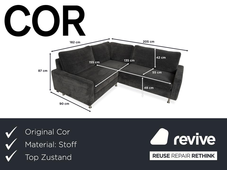 Das Conseta Ecksofa von Cor in elegantem Grau überzeugt durch sein minimalistisches Design und hohen Sitzkomfort. Die klaren Linien und die schlanken, verchromten Metallfüße verleihen dem Sofa eine zeitlose, leichte Ästhetik. Die großzügige Polsterung bietet ordentlich Platz zum Entspannen.