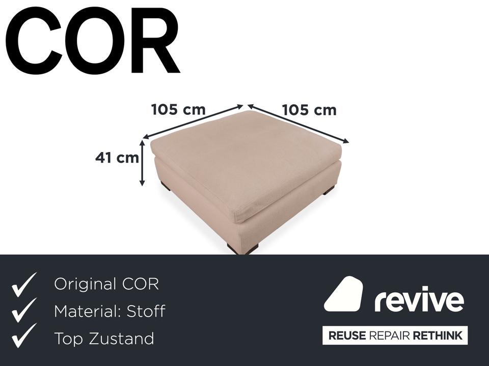 Der COR Conseta Hocker ist die perfekte Ergänzung für eines der bekanntesten und flexibelsten Sofasysteme der Designgeschichte. In einem eleganten, hellen Cremeton gehalten, strahlt dieser Polsterhocker eine ruhige Hochwertigkeit aus und fügt sich harmonisch in anspruchsvolle Wohnlandschaften ein. Der strukturierte Stoffbezug sorgt für eine angenehme Haptik und unterstreicht die klare, kubische Formsprache, für die der Entwurf von Friedrich-Wilhelm Möller seit Jahrzehnten geschätzt wird.Dank seiner soliden Bauweise und der erstklassigen Polsterung dient der Hocker wahlweise als komfortable Fußablage, als zusätzliche Sitzgelegenheit oder – mit einem Tablett kombiniert – als flexibler Couchtisch-Ersatz. Er ruht auf dezenten, dunklen Holzfüßen, die einen stilvollen Kontrast zum hellen Bezug bilden und für einen stabilen Stand sorgen. Mit dem Conseta Hocker entscheiden Sie sich für ein langlebiges Stück deutscher Designkultur, das durch handwerkliche Präzision und funktionale Schlichtheit überzeugt.