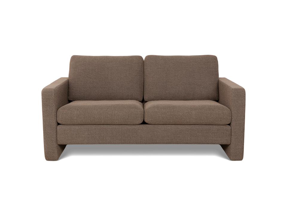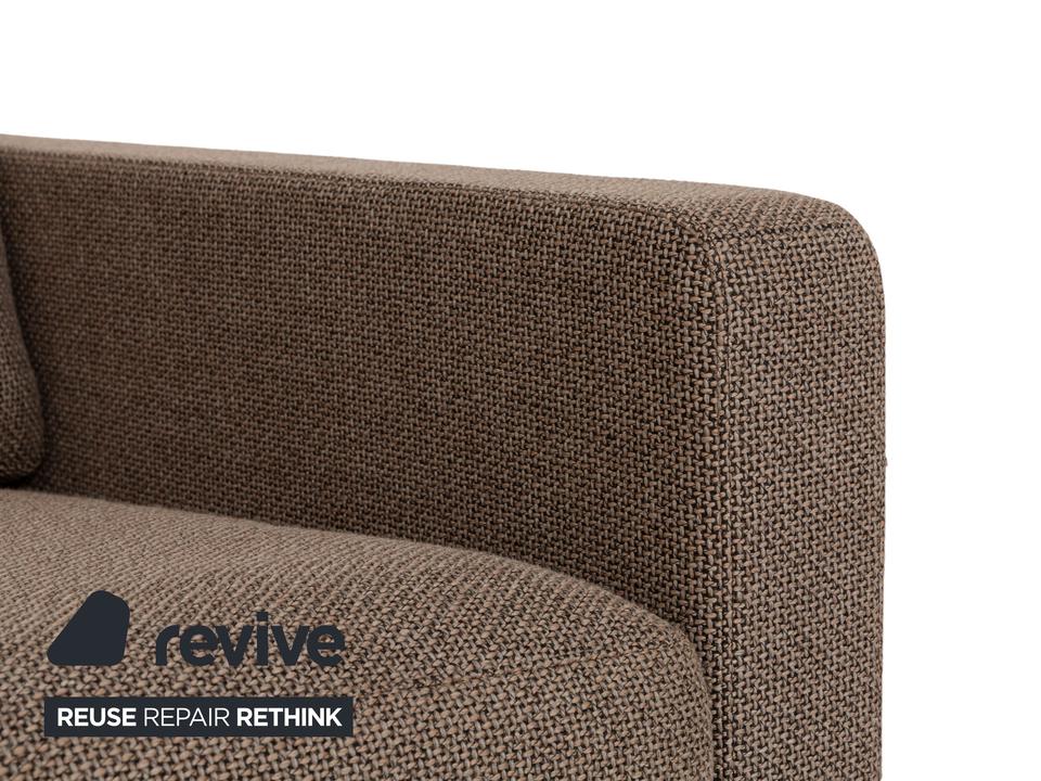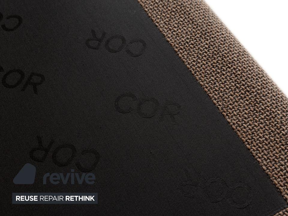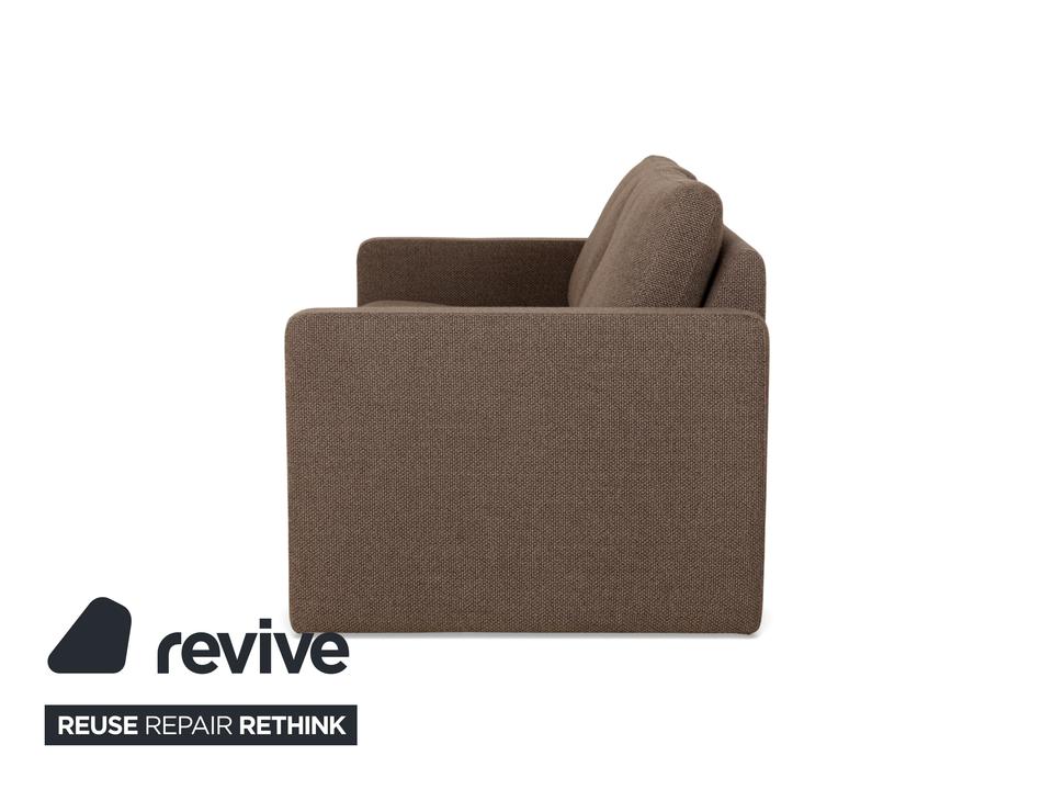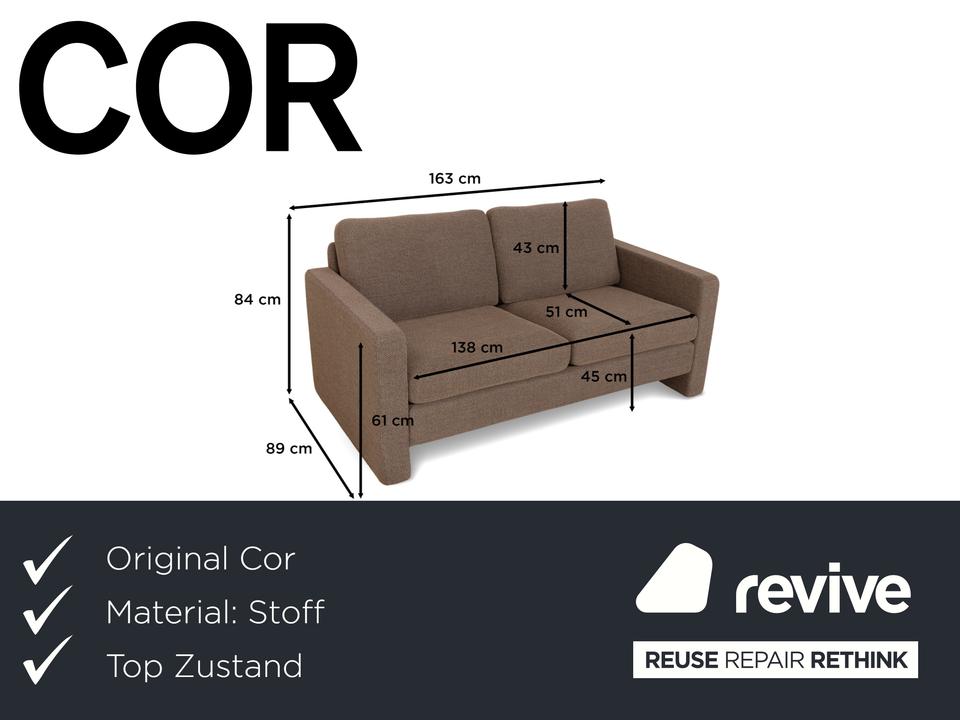 Der Zweisitzer Conseta von Cor ist mit einem braunen Stoff bezogen und steht auf unauffälligen Füßen. Er zeichnet sich durch das klassische Design und die schlichte, zeitlose Optik aus.