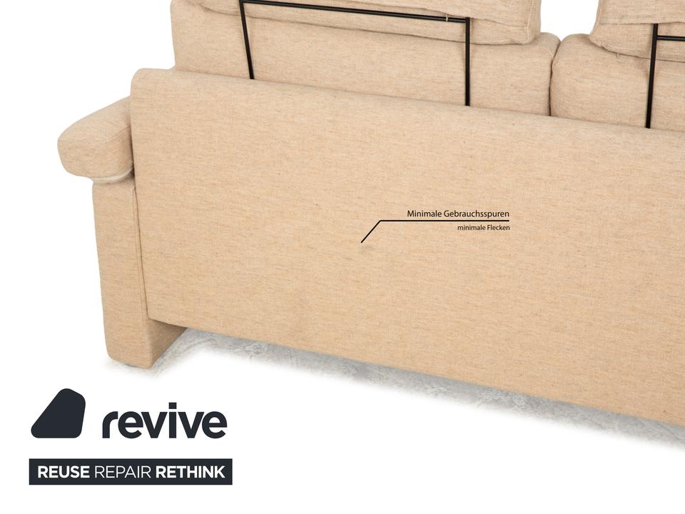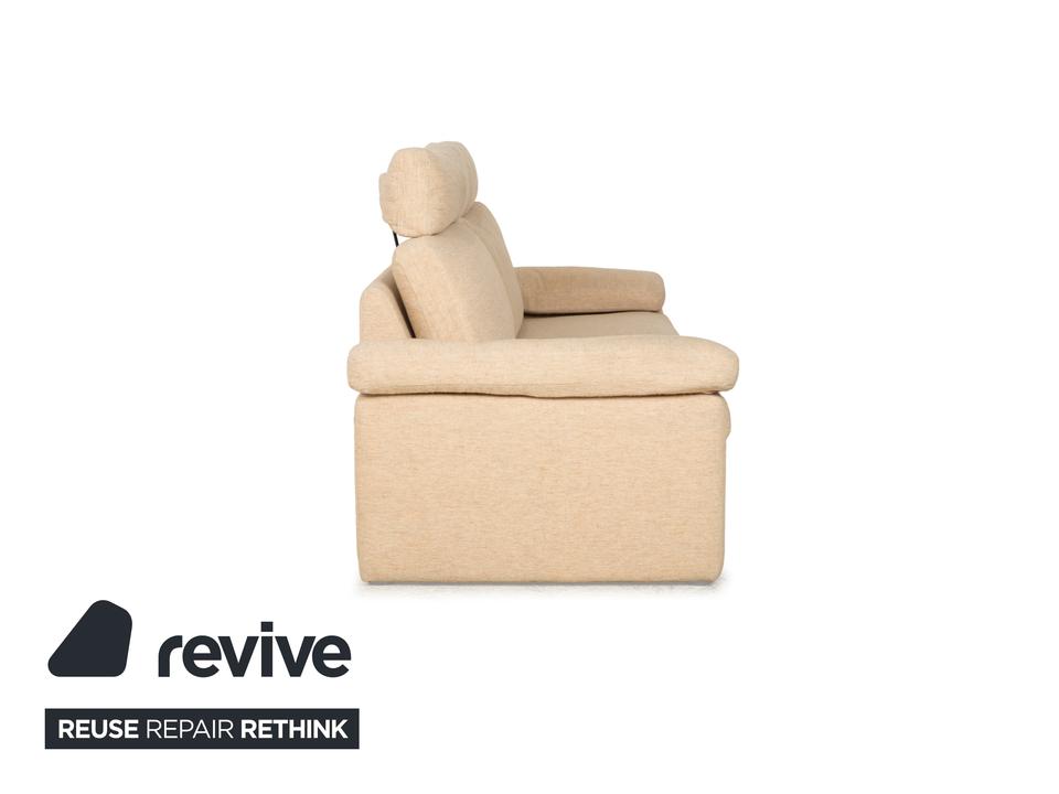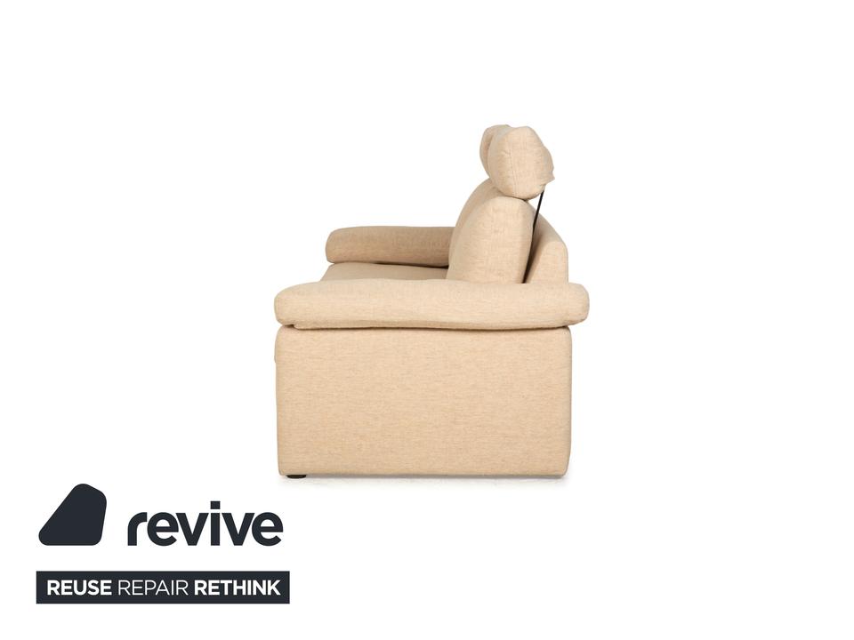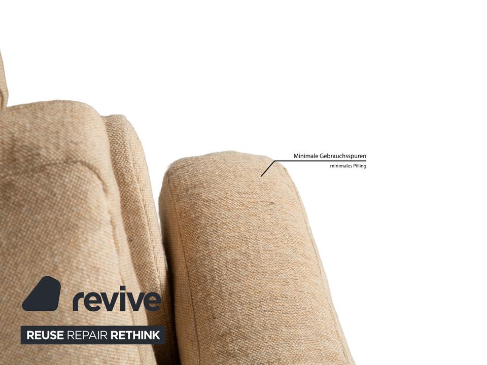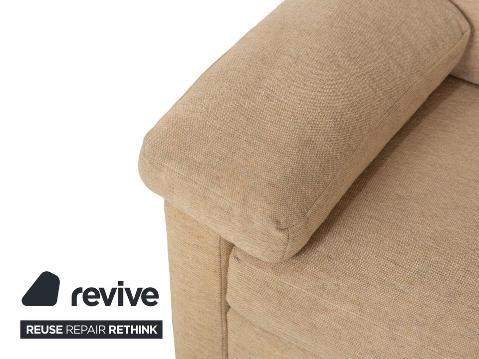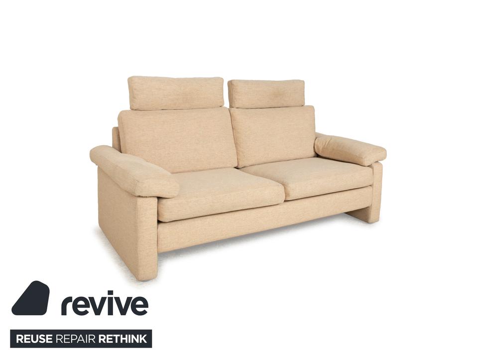 Das Sofa Conseta von Cor ist ist mit einem beigefarbenen Stoff bezogen und steht auf bodentiefen Seitenteilen. Der Zweisitzer zeichnet sich durch sein klassisches und unaufdringliches Design aus, das ihn zusammen mit der neutralen Farbe zu einem einfach kombinierbaren Möbelstück macht. Breite Armlehnen, großzügige Polsterung und versetzbare Kopfstützen versprechen hohen Komfort.