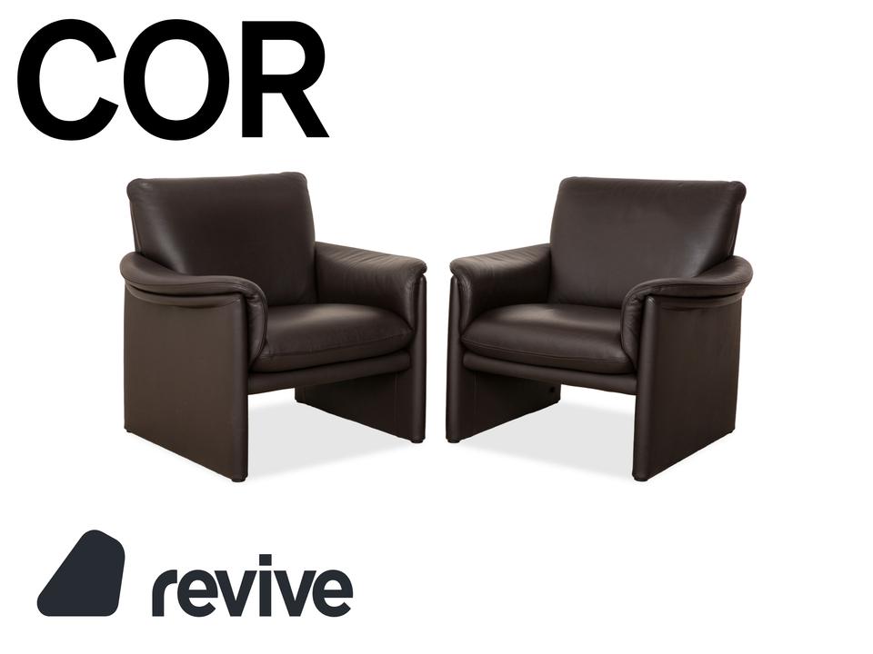 COR Zento 2x Leder Sessel Garnitur Dunkelbraun Kaffee Kastanie