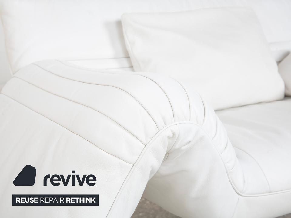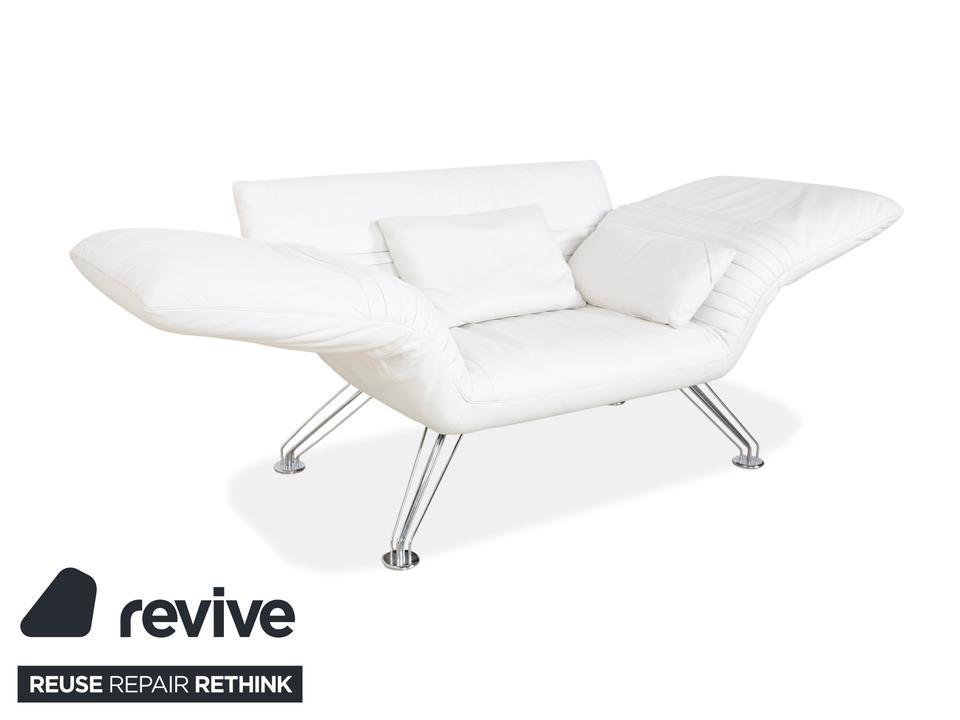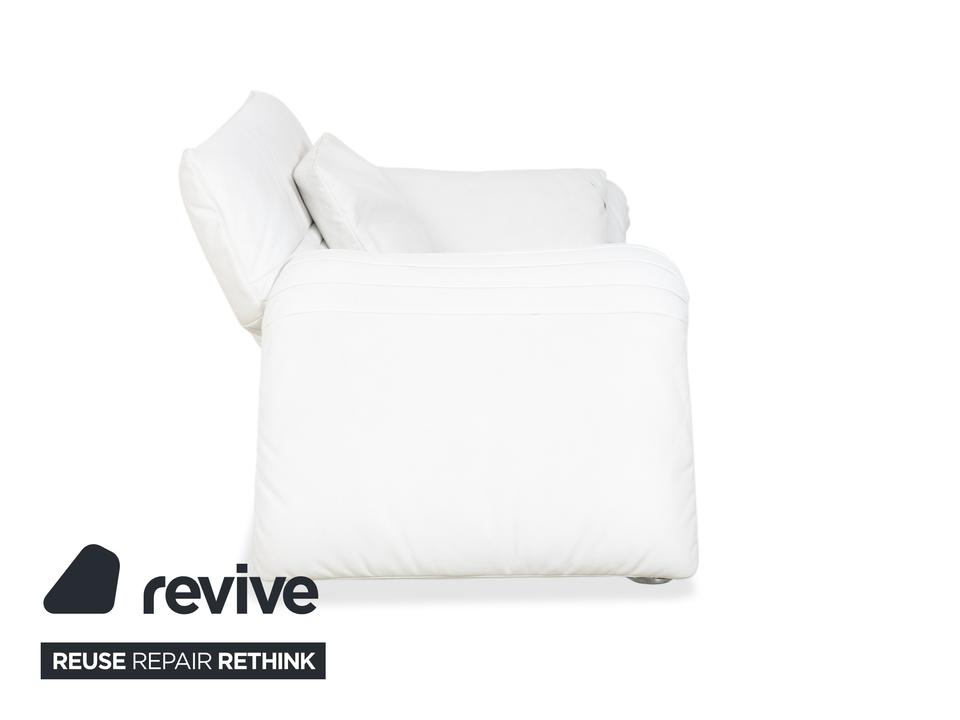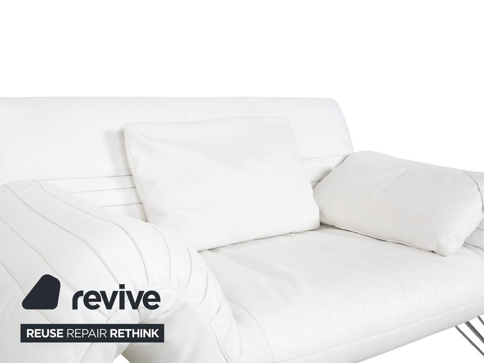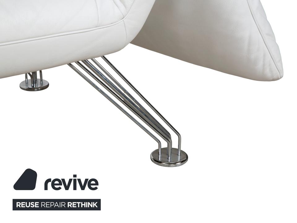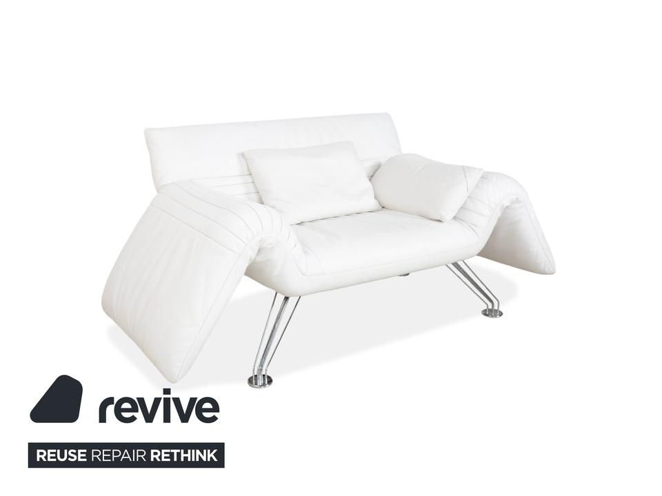 Mit dem Modell DS-142 holst du dir ein Stück Schweizer Ingenieurskunst der Spitzenklasse von de Sede ins Haus. Dieses Möbelstück entzieht sich gängigen Kategorien: Es ist Sessel, Chaiselongue und kompaktes Sofa in einem – ein wahres Verwandlungskünstler.Der Bezug aus hochwertigem Leder ist in einem strahlenden Weiß gehalten, was die futuristische, organische Formgebung perfekt zur Geltung bringt. Das absolute Highlight ist die namensgebende „Wing“-Funktion: Rücken und Armlehnen sind nicht starr, sondern lassen sich unabhängig voneinander verstellen. Auf dem Bild sind die seitlichen Flügel weit nach unten geklappt, wodurch eine offene, breite Liegefläche entsteht. Man kann sie jedoch stufenweise nach oben ratschen, um eine gemütliche Kuhle zum Sitzen oder Anlehnen zu formen.Getragen wird diese komplexe Mechanik von einem filigranen Gestell aus verchromtem Stahl, das technisch und leicht wirkt. Die sichtbaren Ziernähte auf den Flügeln zeugen von der handwerklichen Meisterschaft der Manufaktur. Zusätzliche lose Kissen sorgen für individuellen Komfort im Rückenbereich.
