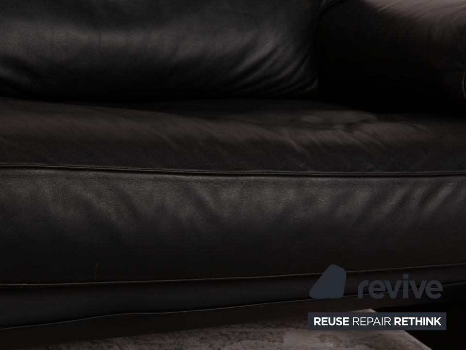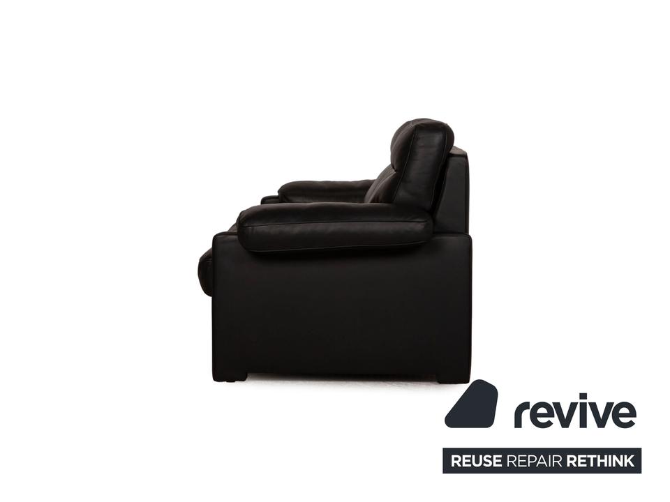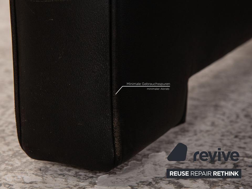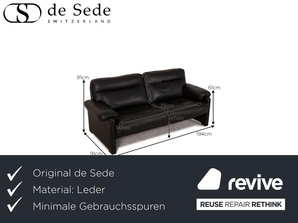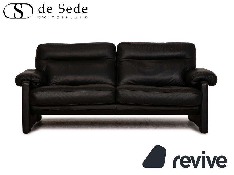 Das ds 70 Sofa von de Sede ist mit einem schwarzen Echtleder bezogen und steht auf bodentiefen Seitenteilen. Das zeitlose Design und die abgerundeten Armlehnen zeichnen den Dreisitzer aus.