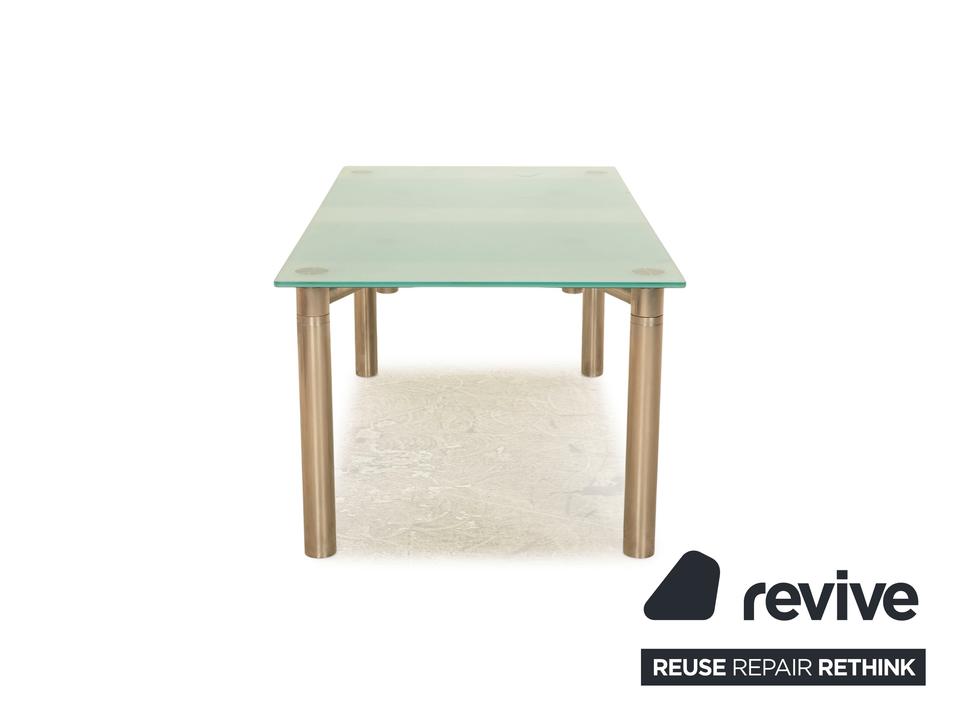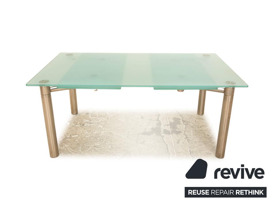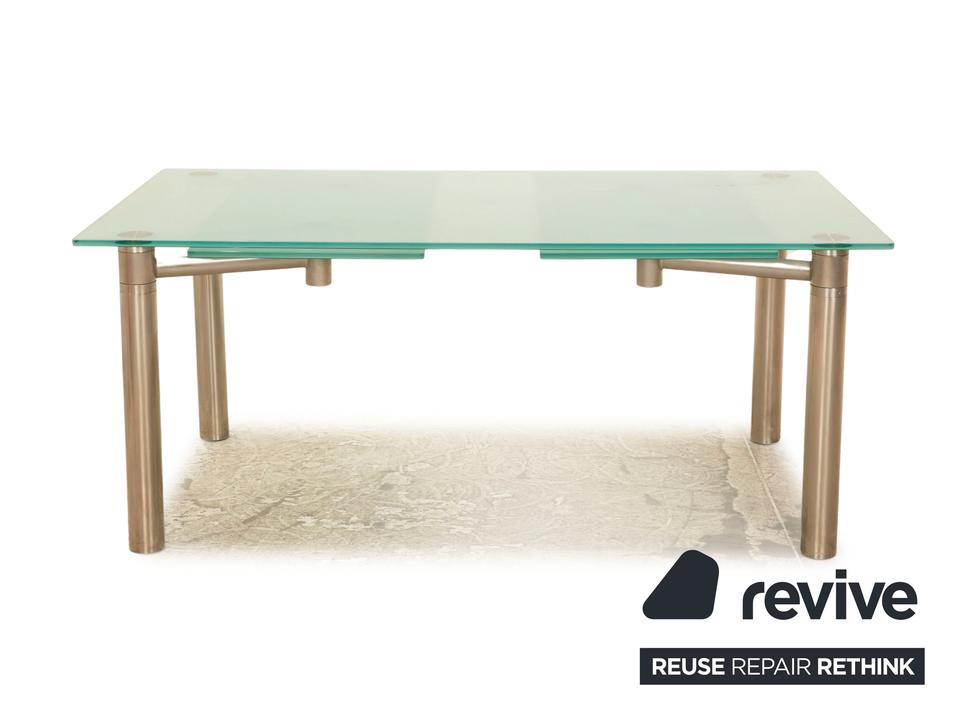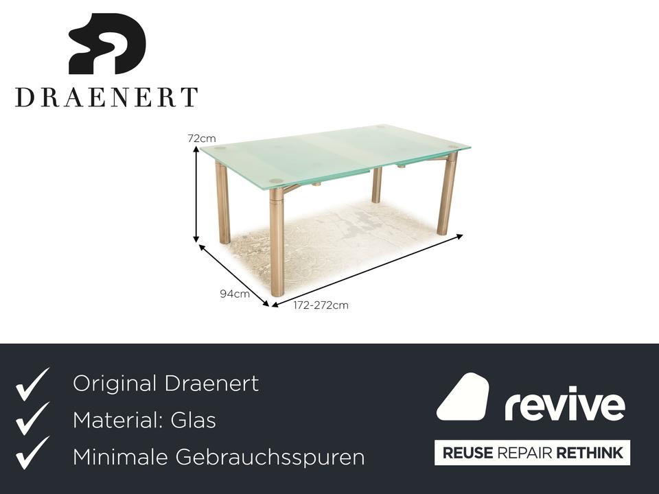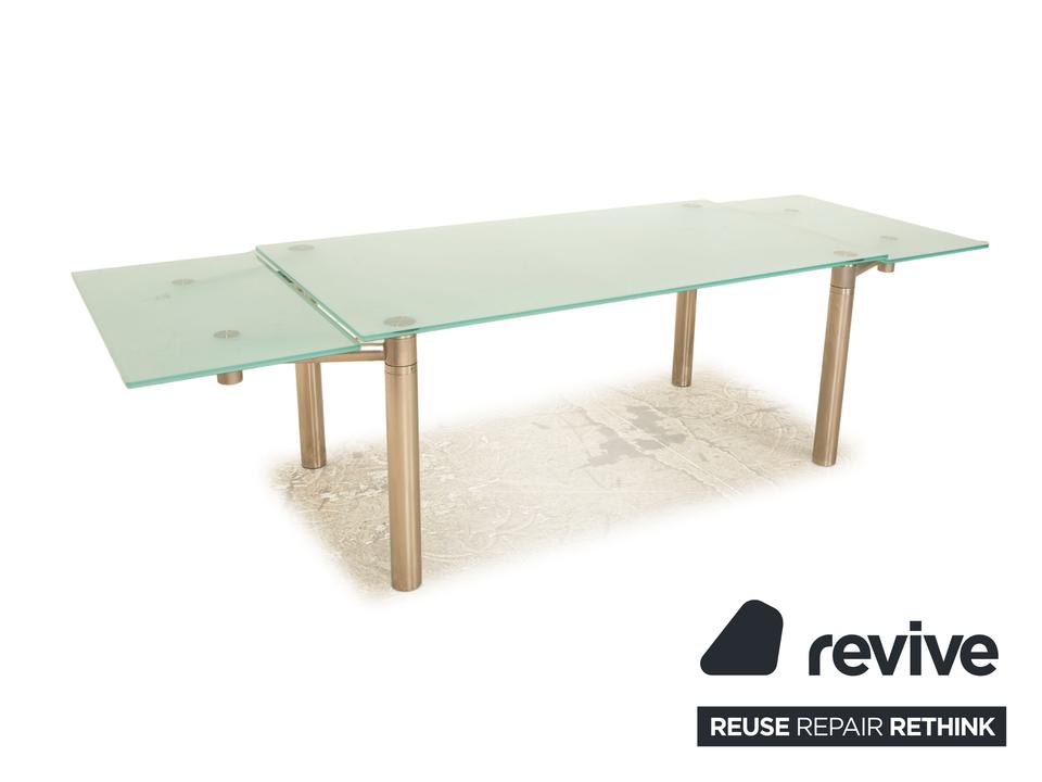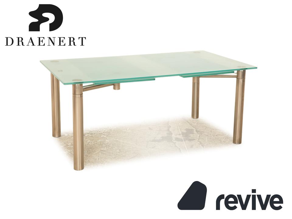 Der Casanova Tisch von Draenert besteht aus einer rechteckigen Glasplatte und steht auf runden Metallfüßen. Die praktische Ausziehfunktion zeichnet den Esstisch aus.
