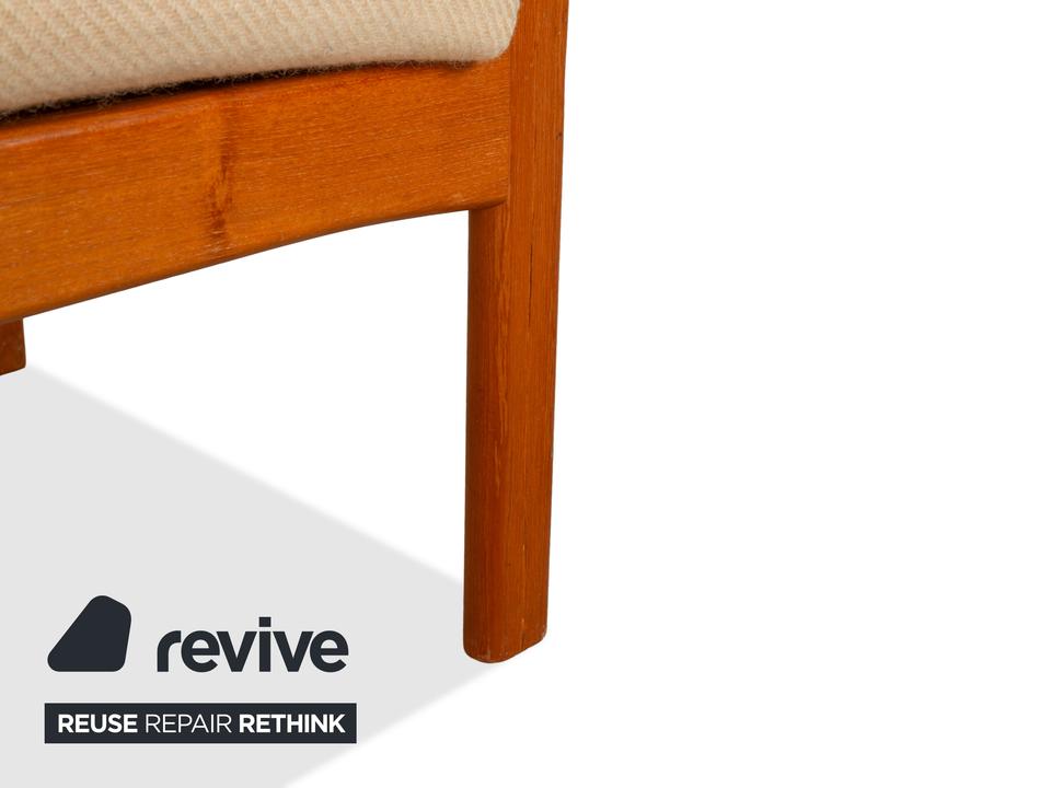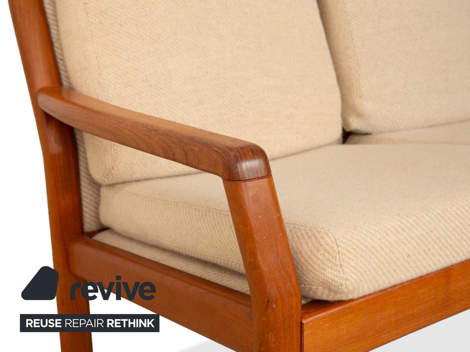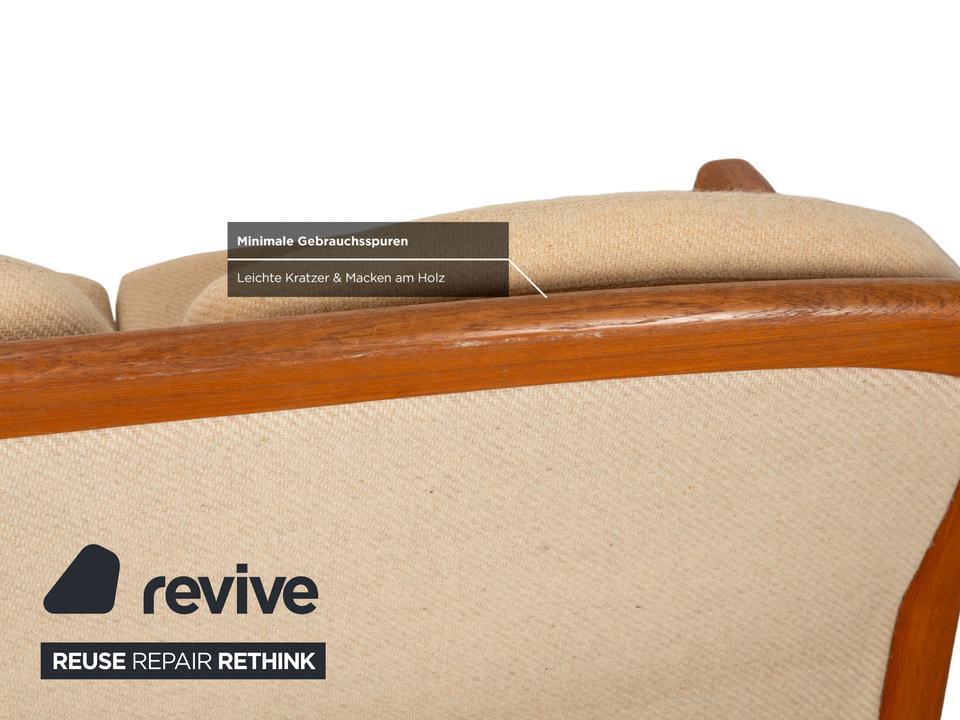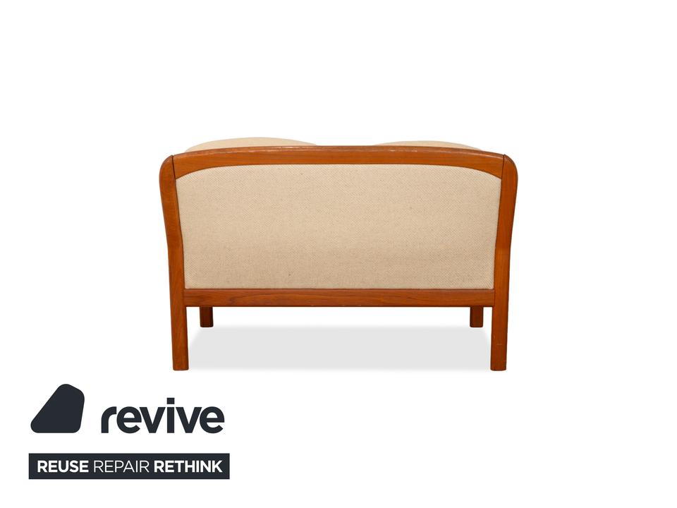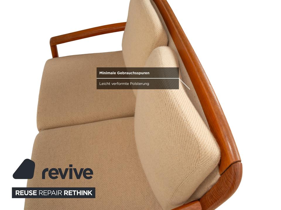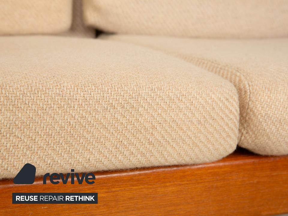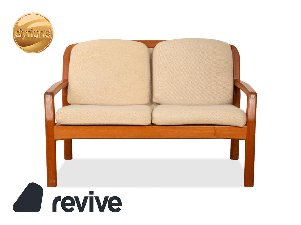 Das elegante Dyrlund Sofa vereint klassisches Mid Century Design mit hochwertiger Handwerkskunst. Das massive Holzgestell überzeugt durch seine warme Maserung und fein geschwungene Form, während die gepolsterte Sitzfläche und Rückenlehne in Braun Beige für angenehmen Komfort sorgen.