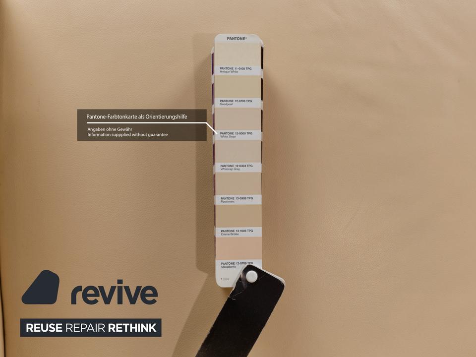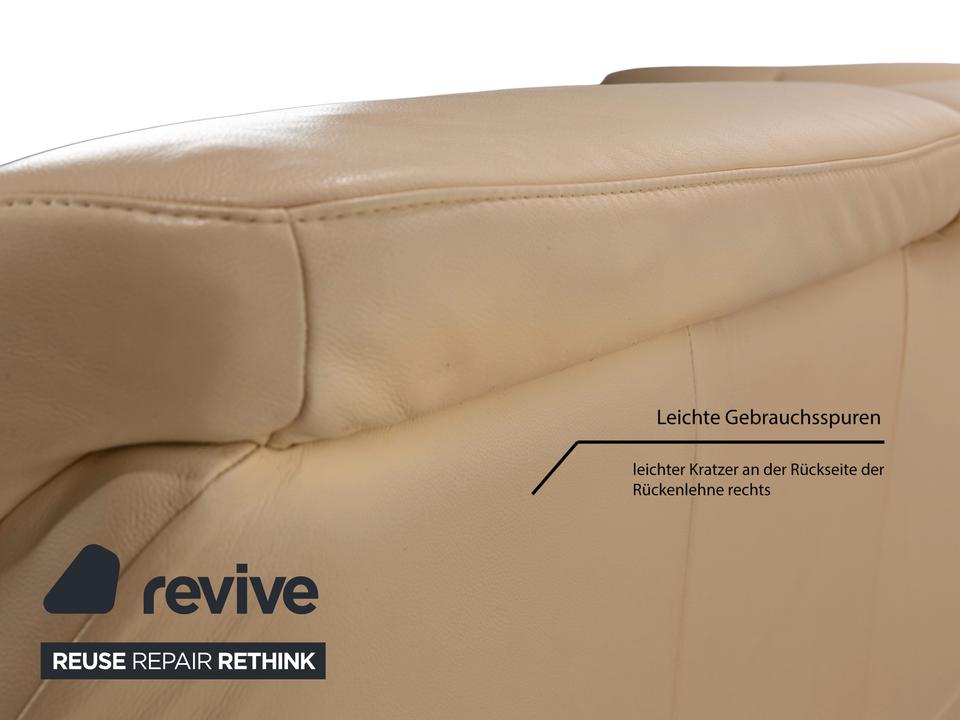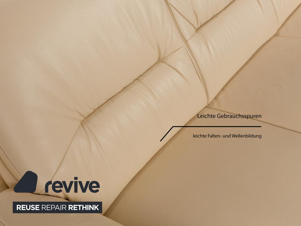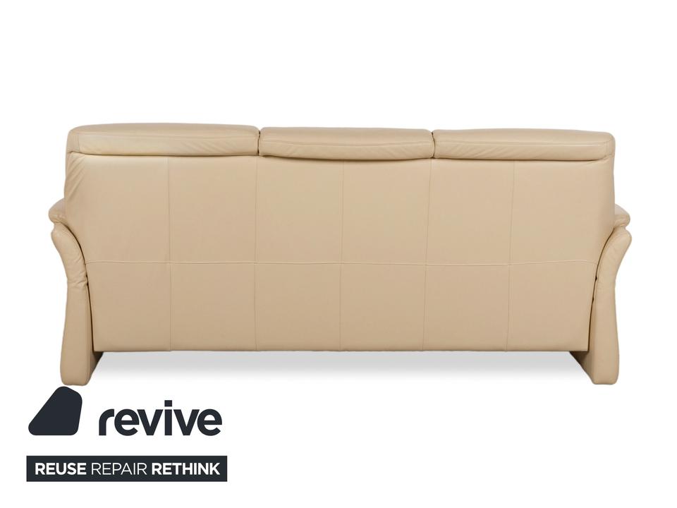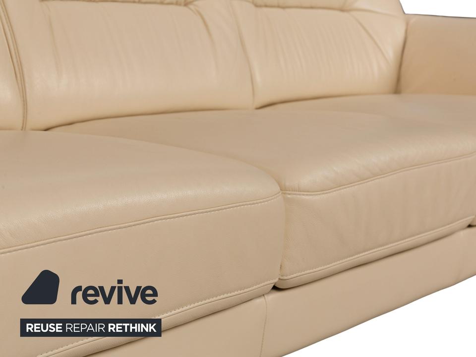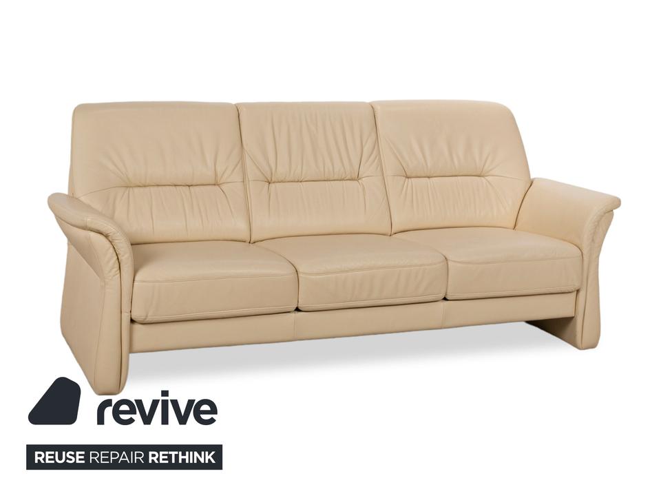 Das Elastoform Dreisitzer Sofa zeichnet sich mit dem hochwertigen Leder als langlebig und bequem heraus. Der Cremeton wirkt edel und einladend. Die Armlehnen können nach außen geklappt werden, was zusätzlichem Komfort gewährt.