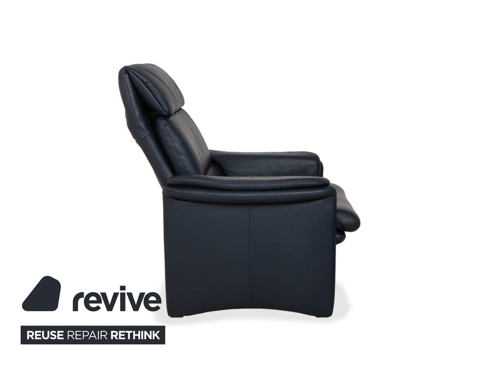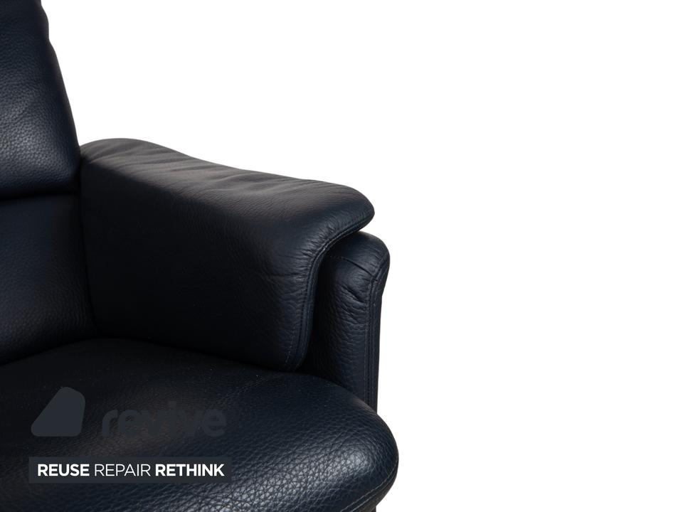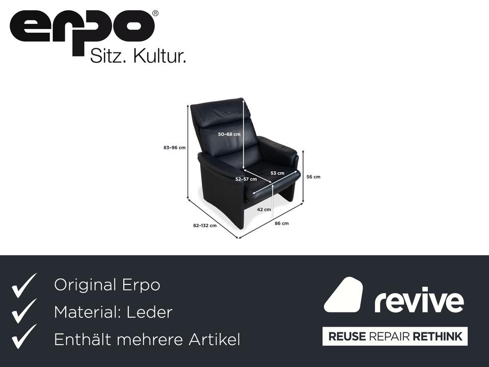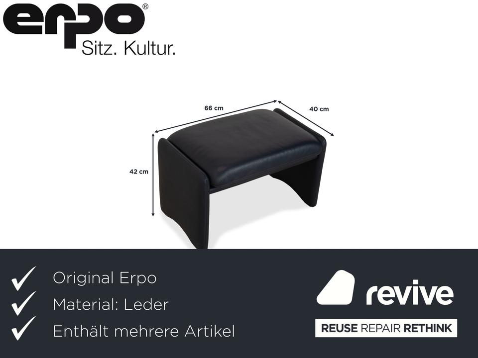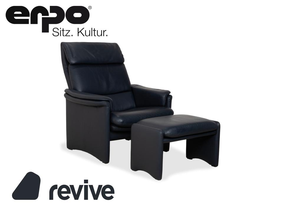 Erpo City Ensemble: Klassischer Komfort im DoppelpackMit diesem Set holst du dir die komplette Entspannungslösung nach Hause. Die Kombination aus dem Sessel „City“ und dem passenden Hocker steht für die hochwertige Sitzkultur von Erpo und vereint zeitloses Design mit maximaler Bequemlichkeit.Beide Möbelstücke sind perfekt aufeinander abgestimmt und in hochwertiges Leder in einem edlen Dunkelblau (Marine) gehüllt. Dieser klassische Farbton strahlt Seriosität und Ruhe aus. Das Design ist unverwechselbar:Charakteristische Wangen-Optik: Sowohl der Sessel als auch der Hocker verzichten auf klassische Füße und ruhen stattdessen auf durchgehenden, lederbezogenen Seitenteilen (Wangen). Dies verleiht dem Duo eine solide, geschlossene Optik und eine klare architektonische Linie.Sichtbarer Komfort: Der Sessel bietet eine hohe Rückenlehne mit einem abgesetzten Kopfpolster sowie weich aufgelegte Polster auf den Armlehnen. Der Hocker greift dieses Prinzip auf und bietet mit seinem dicken Auflagekissen eine softe Ablage für die Beine.Dank der manuellen Funktion kannst du dich im Sessel entspannt zurücklehnen (durch Gewichtsverlagerung), während der Hocker die ergonomisch perfekte Ergänzung bietet, um die Füße hochzulegen und abzuschalten.