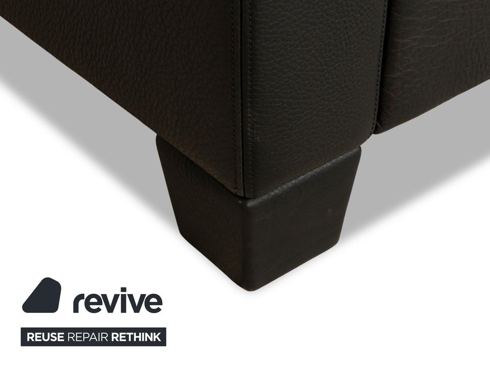 Das Sofa Erpo CL 300 ist mit einem schwarzen Echtleder bezogen und steht auf bodentiefen Seitenteilen. Der Dreisitzer überzeugt durch sein klassisches und geradliniges Design.