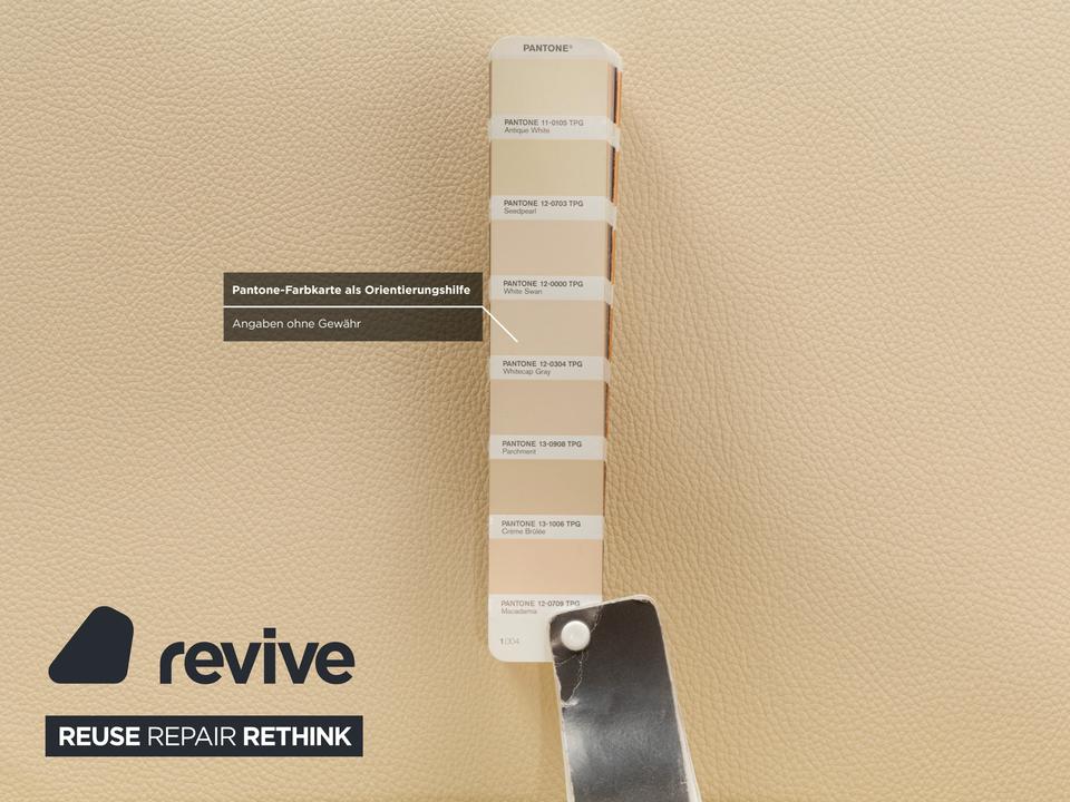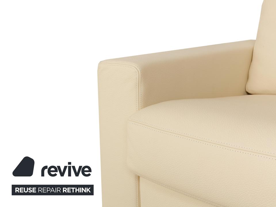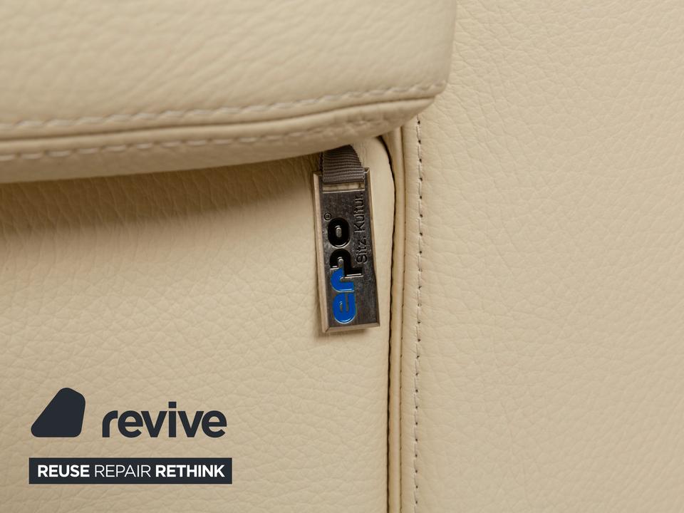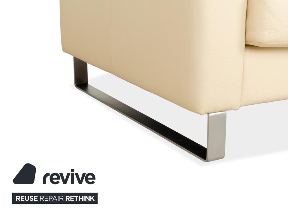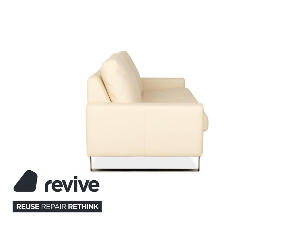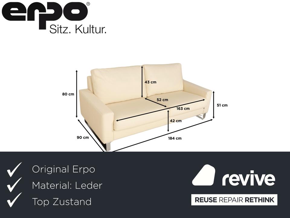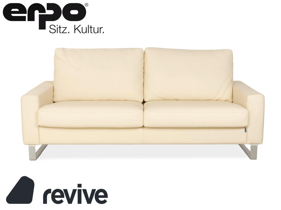 Das Sofa CL 500 von Erpo ist mit cremefarbenen Leder bezogen und steht auf zwei Metallkufen. Das klassische Design des Korpus mit seiner großzügigen Rückenlehnenpolsterung steht im gelungenen Kontrast zu den sehr modern gehaltenen Metallelementen. Dieser Dreisitzer ist eine stilvolle Ergänzung für das moderne Wohnzimmer.