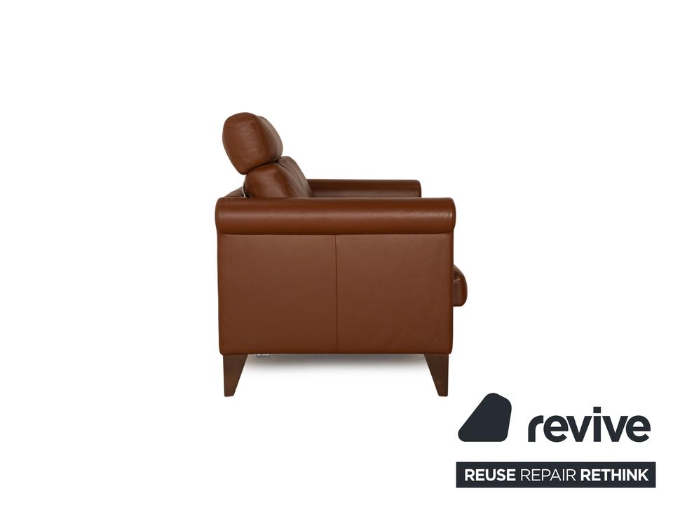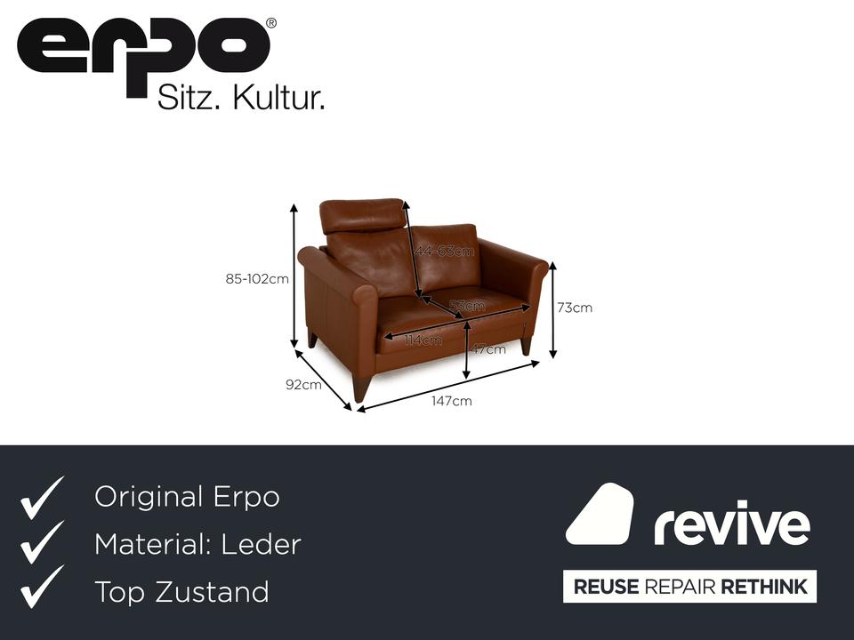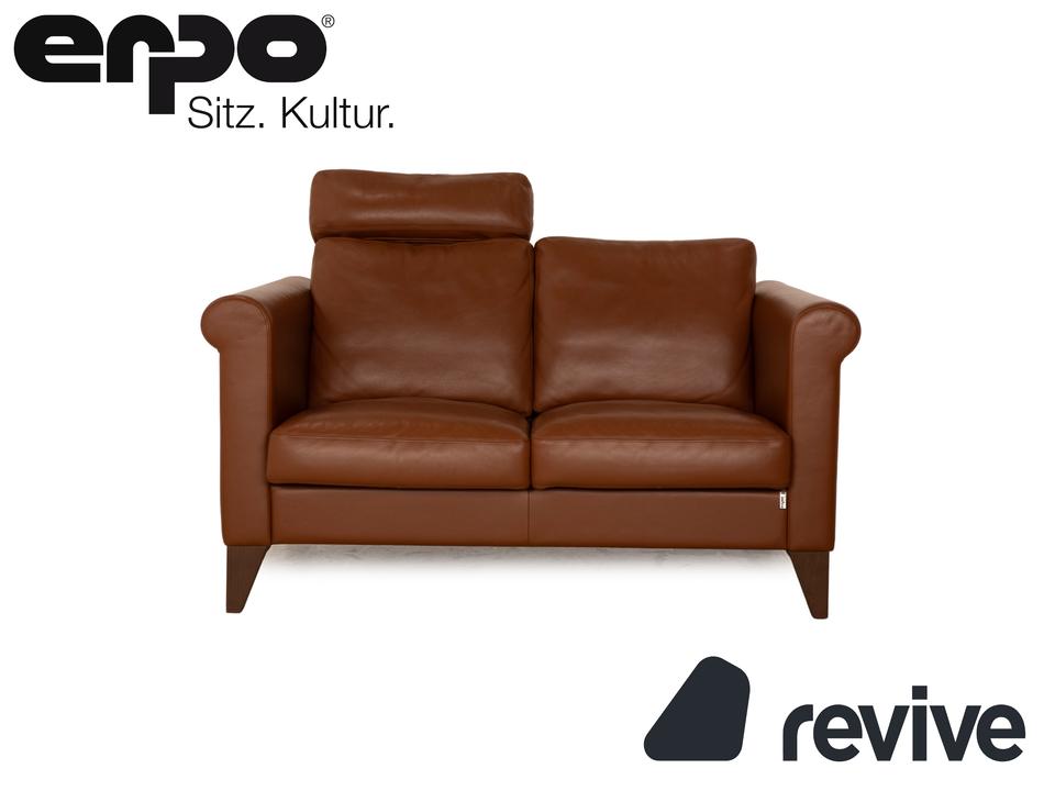Das CL 500 Sofa von Erpo ist mit einem braunen Echtleder bezogen und steht auf braunen Füßen. Das klassische, zeitlose Design und die stilvolle Optik zeichnen den Zweisitzer aus.