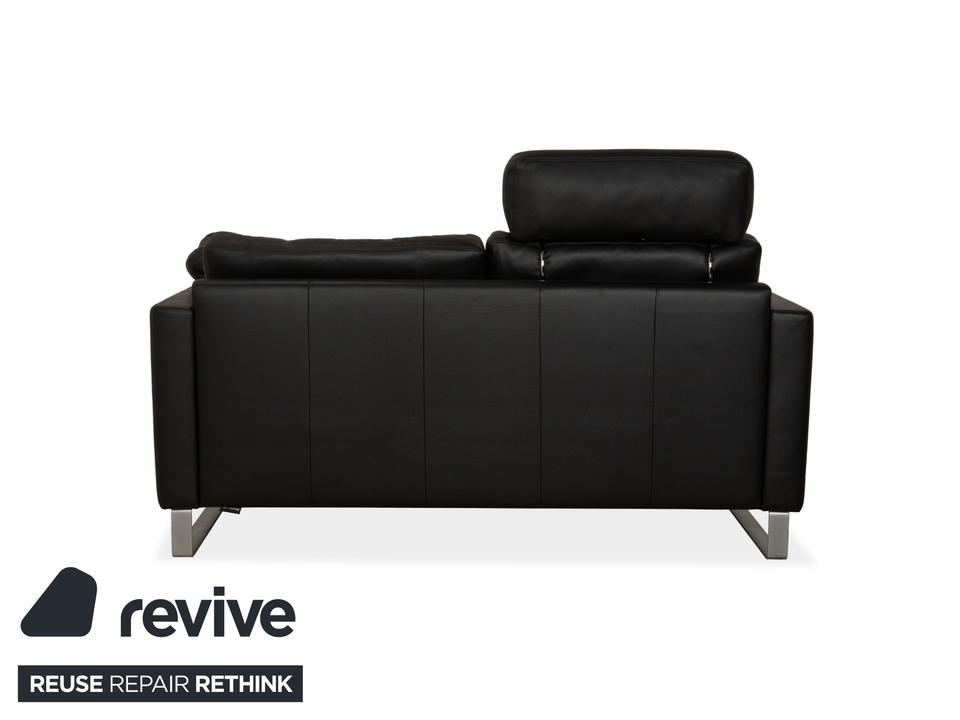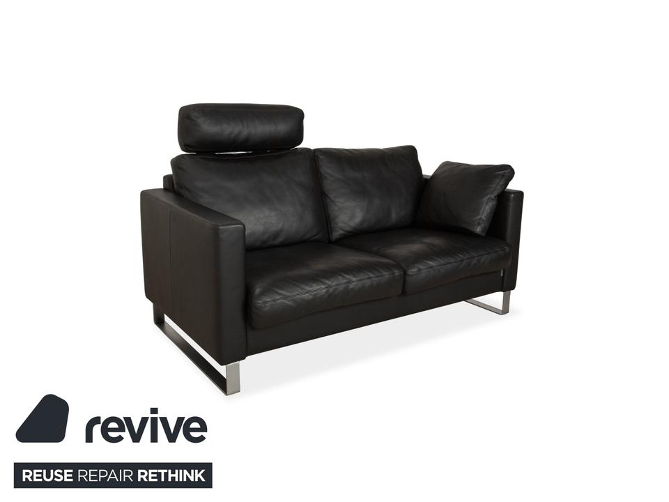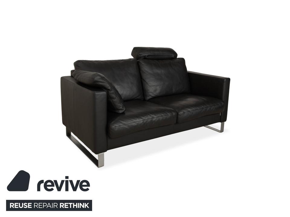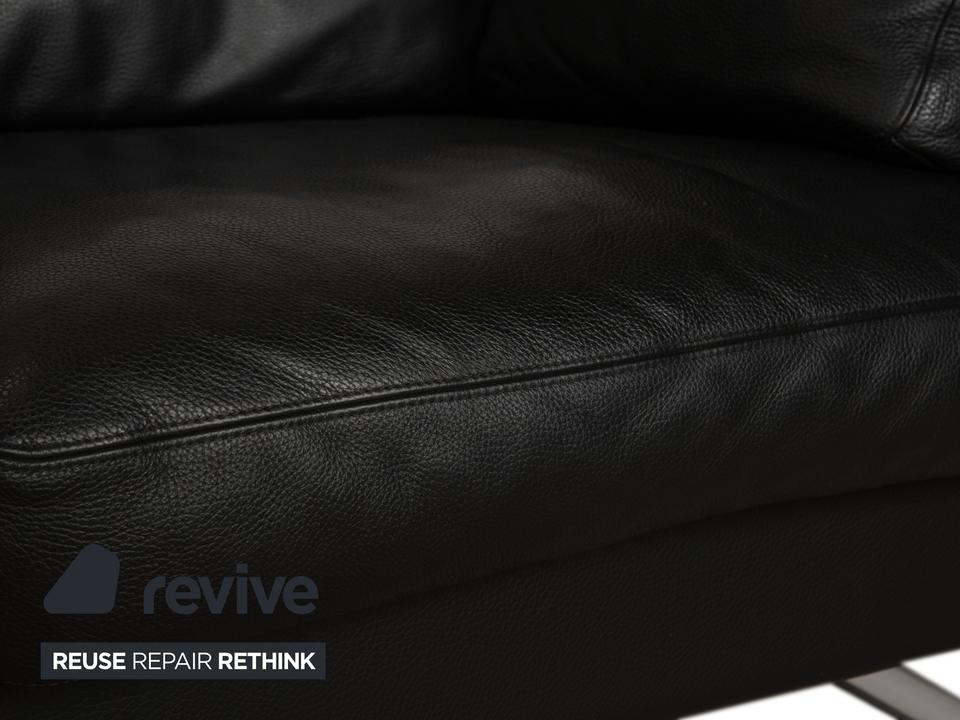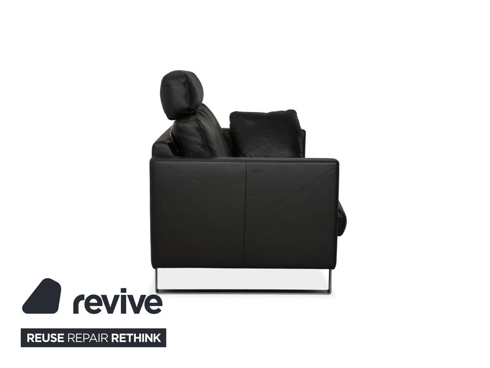 Das Sofa CL 500 von Erpo ist mit schwarzem Leder bezogen und steht auf zwei Metallkufen. Das klassische Design des Korpus mit seiner großzügigen Rückenlehnenpolsterung steht im gelungenen Kontrast zu den sehr modern gehaltenen Metallelementen. Die Kopfstütze kann flexibel über den Sitzflächen positioniert, stufenweise verstellt oder auch ganz entfernt werden. Dieser Dreisitzer ist eine stilvolle Ergänzung für das moderne Wohnzimmer.