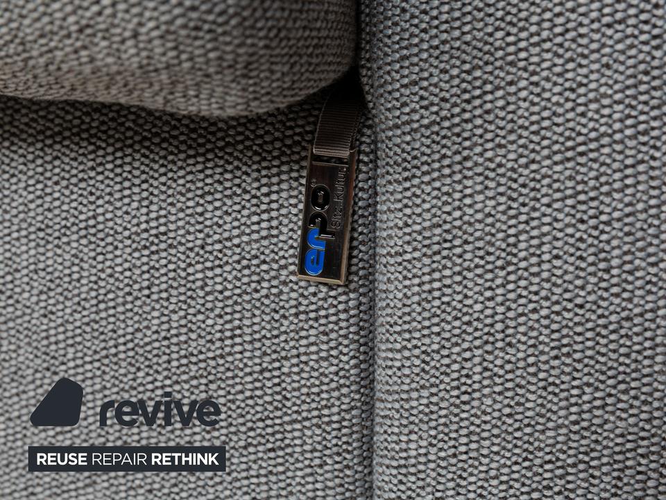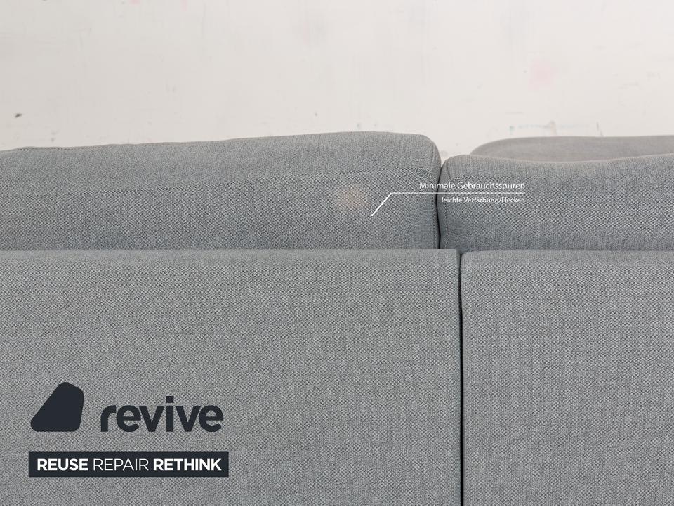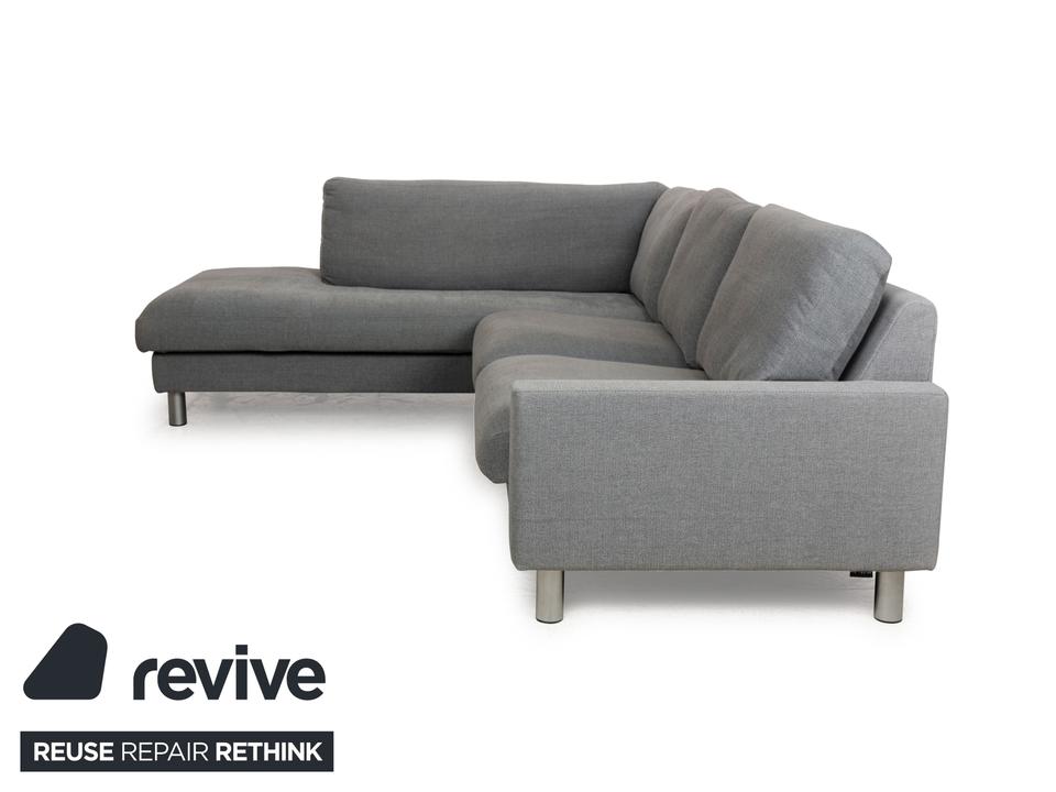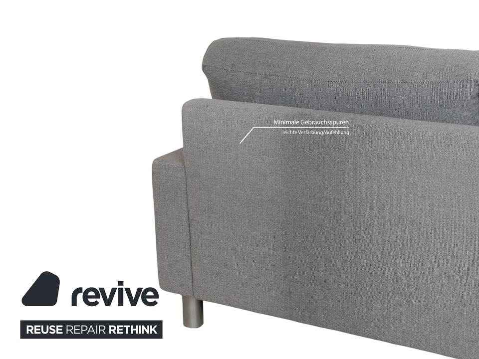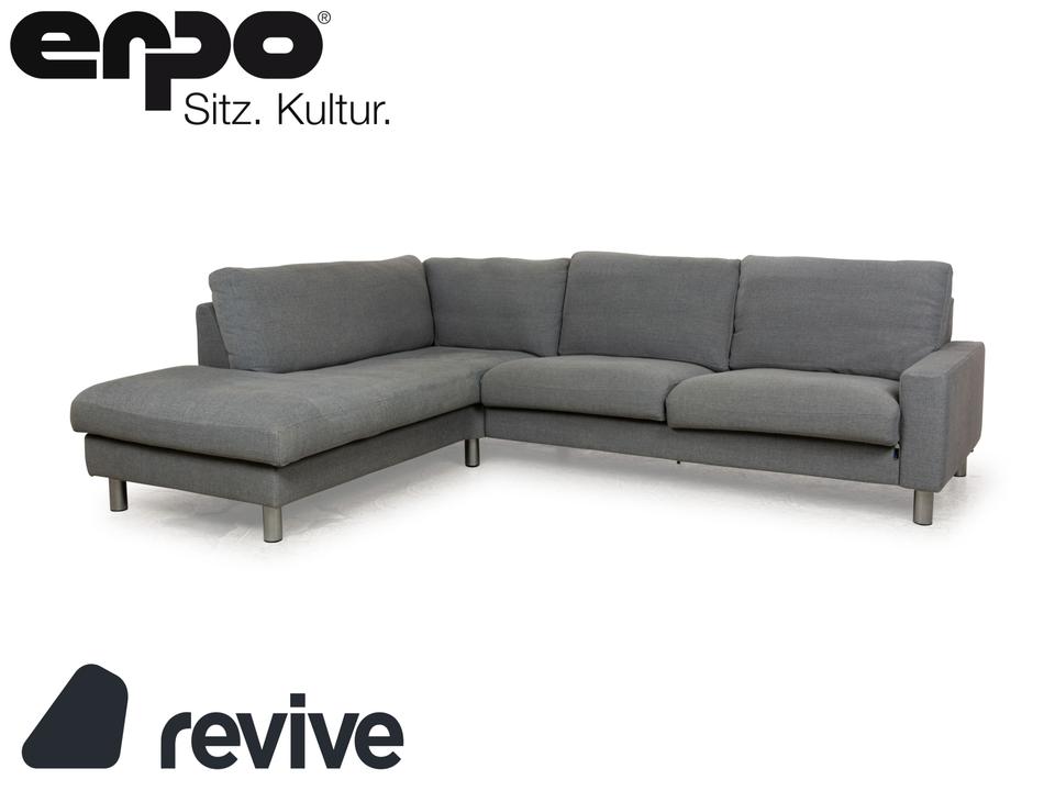Das Sofa CL 500 von Erpo ist mit einem grauen Stoff bezogen und steht auf runden Beinen. Es zeichnet sich durch sein reduziertes und schlichtes Design aus, wodurch es – zusammen mit der neutral gehaltenen Farbe – einfach mit weiteren Einrichtungsgegenständen kombinierbar ist. Hohe Rückenlehnen und eine Recamiere sorgen für großen Komfort.