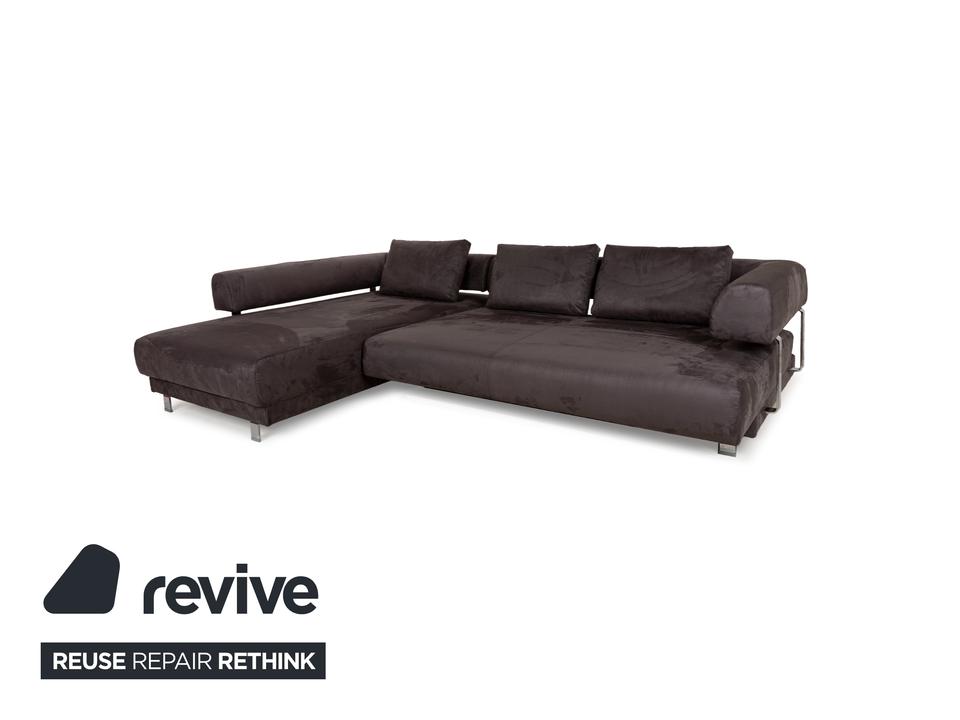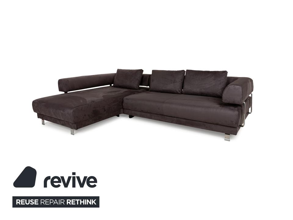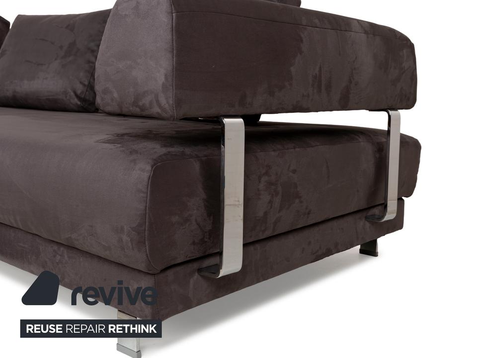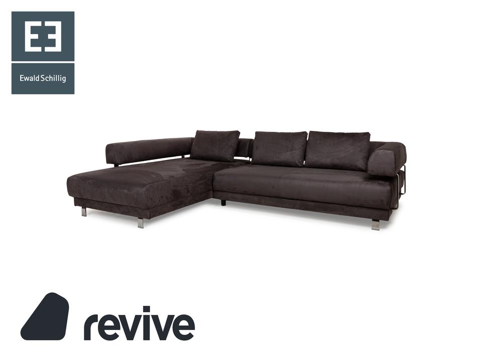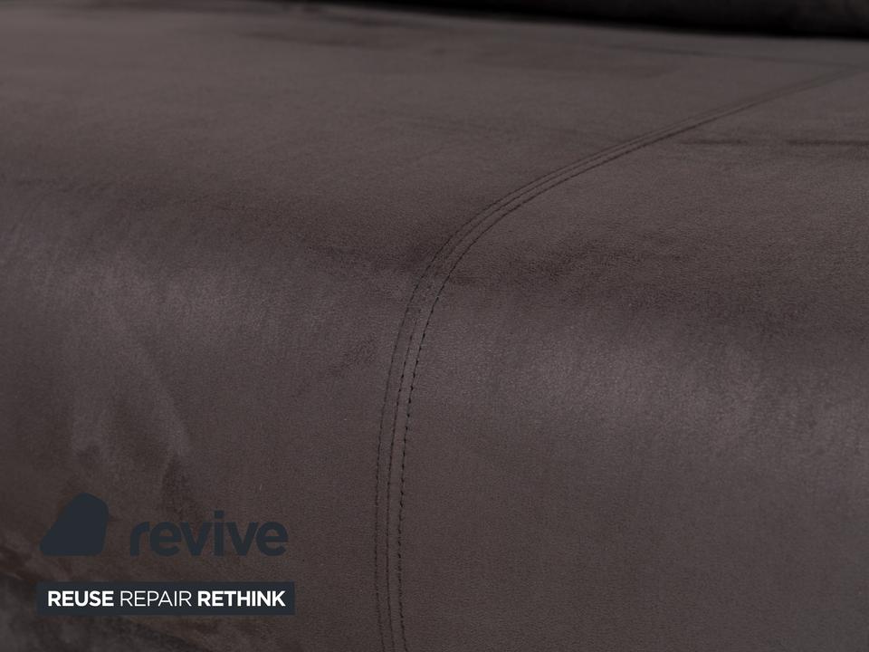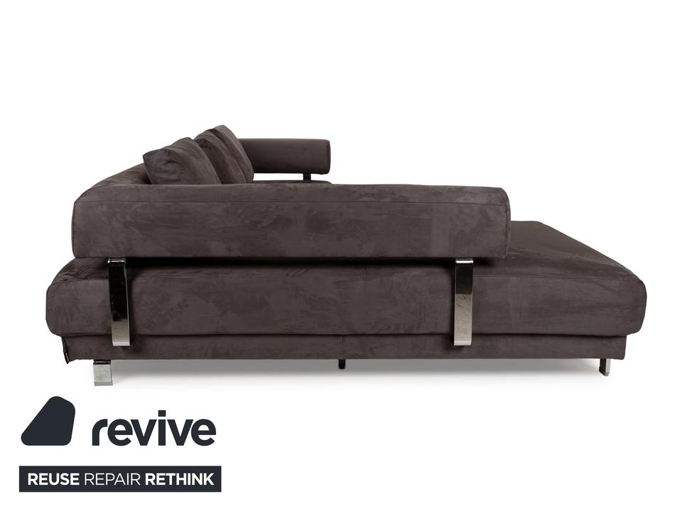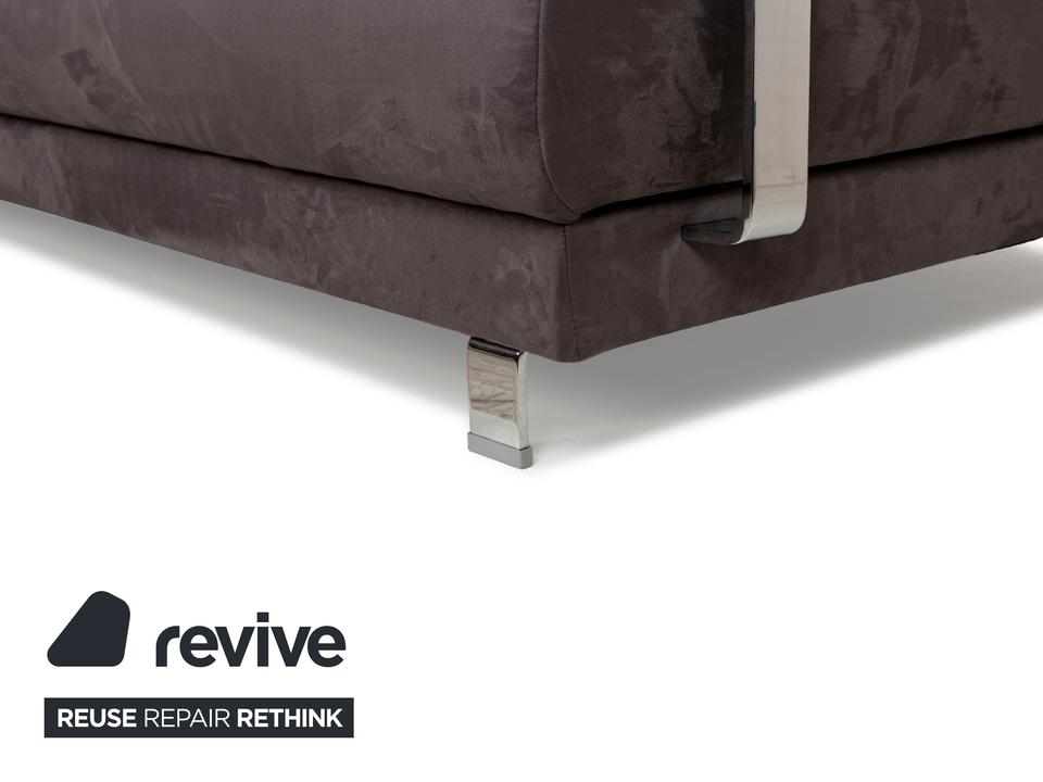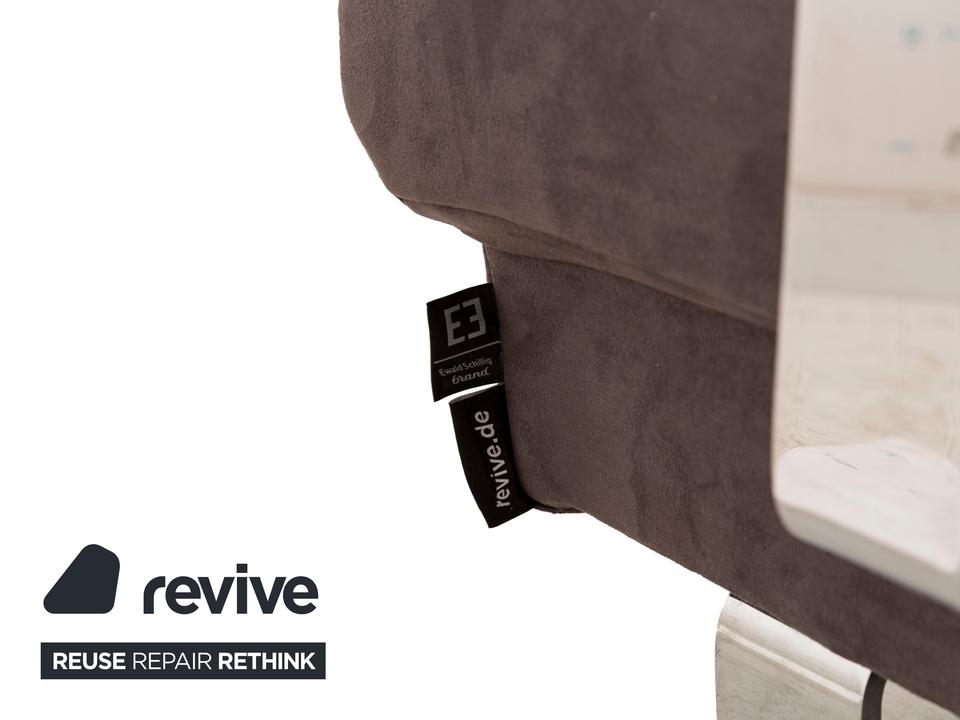 Das Ecksofa Brand Face von Ewald Schillig ist mit einem grauen Stoff (Denver 395 von Höpke) neu bezogen worden und steht auf hochglänzenden Metallfüßen. Die gelungene Kontrastierung von Metall und Stoff sorgt für einen spannenden Look. Das Sofa bietet in Grundposition durch tiefe Sitzflächen und große Rückenlehnenkissen bereits hohen Komfort, welcher durch die manuell noch erweiterbare Sitztiefe noch erhöht wird. Informationen zum verwendeten Stoff Denver 395:Grundschicht: 83% Polyester, 17% Baumwolle,Nutzschicht: 100% Polyester,Scheuertouren: 28.000,Lichtechtheit: 4-5