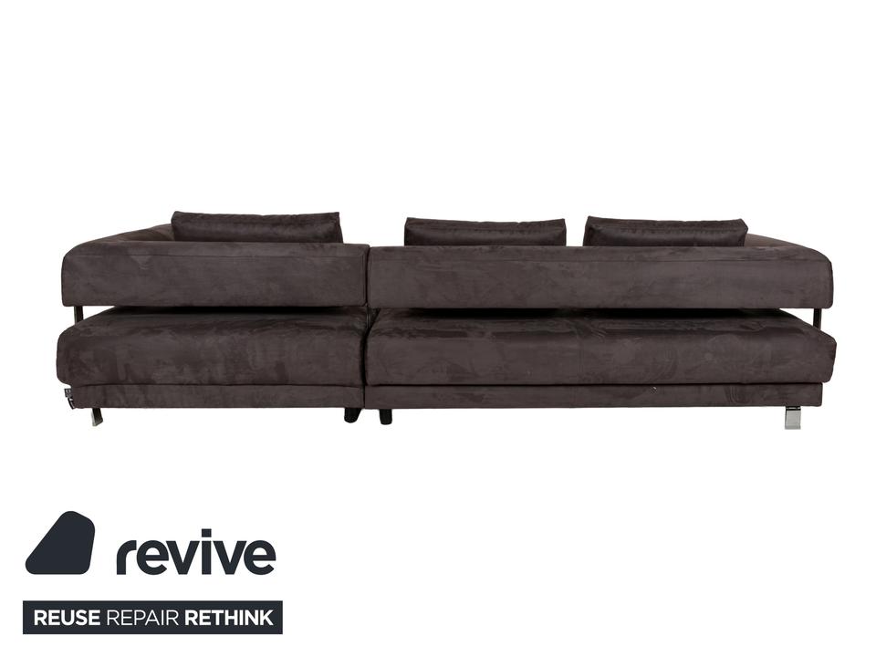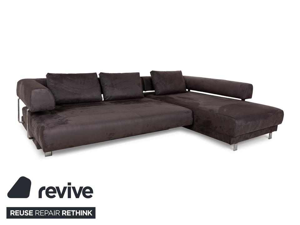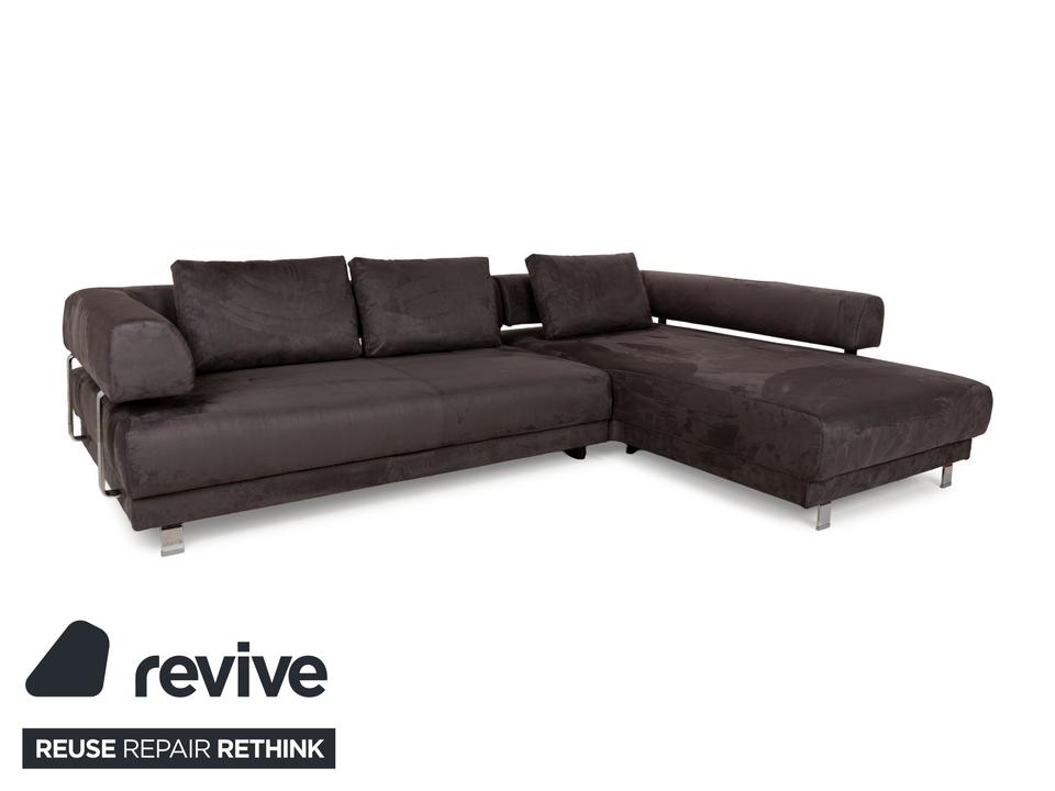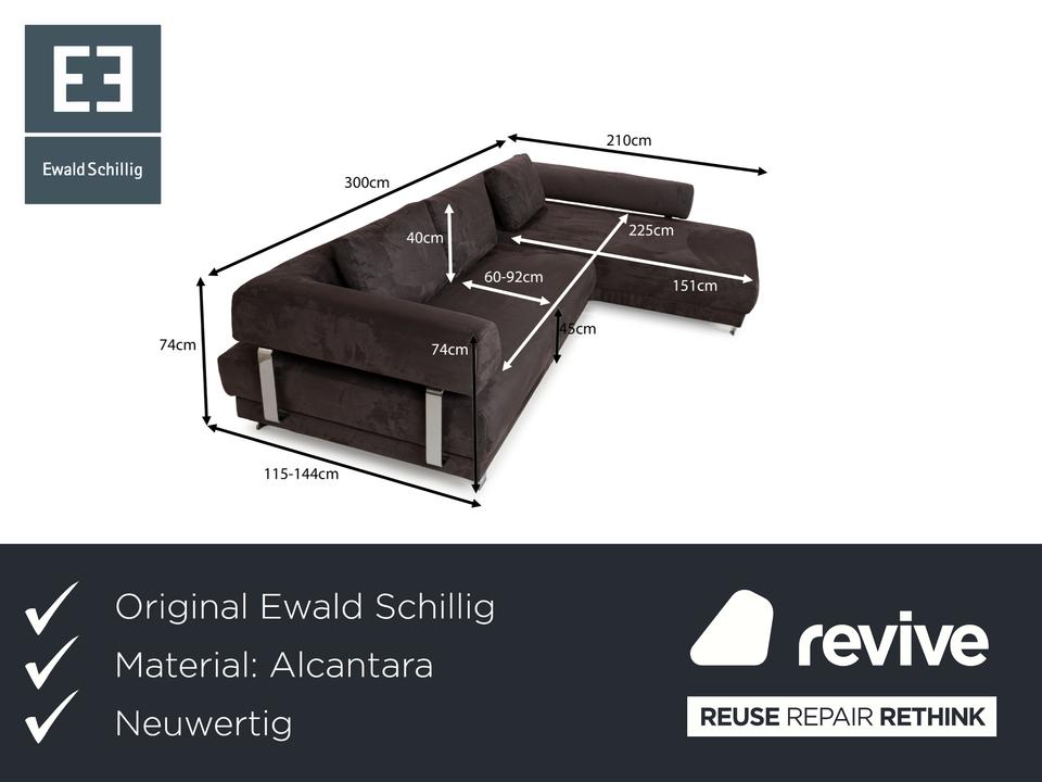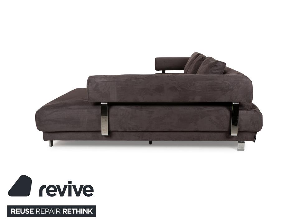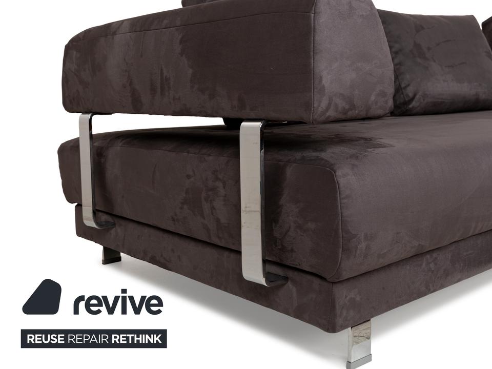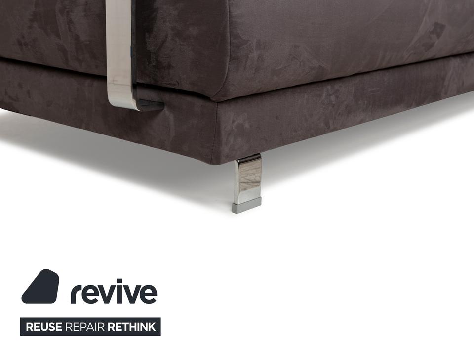 Das Ecksofa Brand Face von Ewald Schillig ist mit einem grauen Stoff (Denver 395 von Höpke) neu bezogen worden und steht auf hochglänzenden Metallfüßen. Die gelungene Kontrastierung von Metall und Stoff sorgt für einen spannenden Look. Das Sofa bietet in Grundposition durch tiefe Sitzflächen und große Rückenlehnenkissen bereits hohen Komfort, welcher durch die manuell noch erweiterbare Sitztiefe noch erhöht wird. Informationen zum verwendeten Stoff Denver 395:Grundschicht: 83% Polyester, 17% Baumwolle,Nutzschicht: 100% Polyester,Scheuertouren: 28.000,Lichtechtheit: 4-5