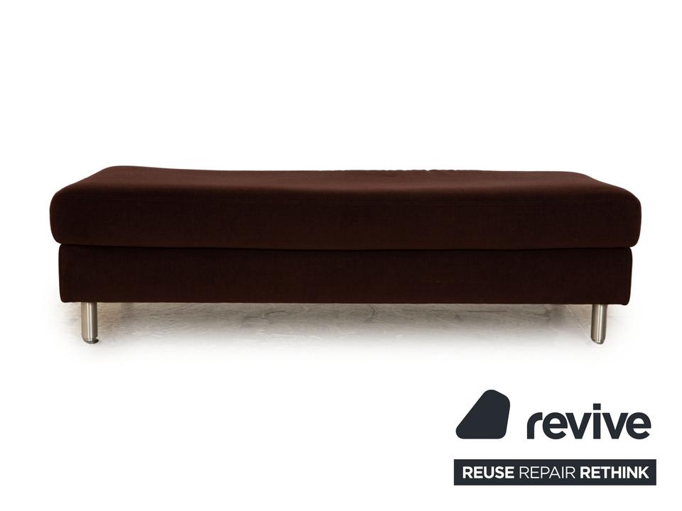 Der Concept Sessel von Ewald Schillig ist mit einem braunen Stoff bezogen und steht auf runden Metallfüßen. Er überzeugt mit seinem zeitlosen Design.