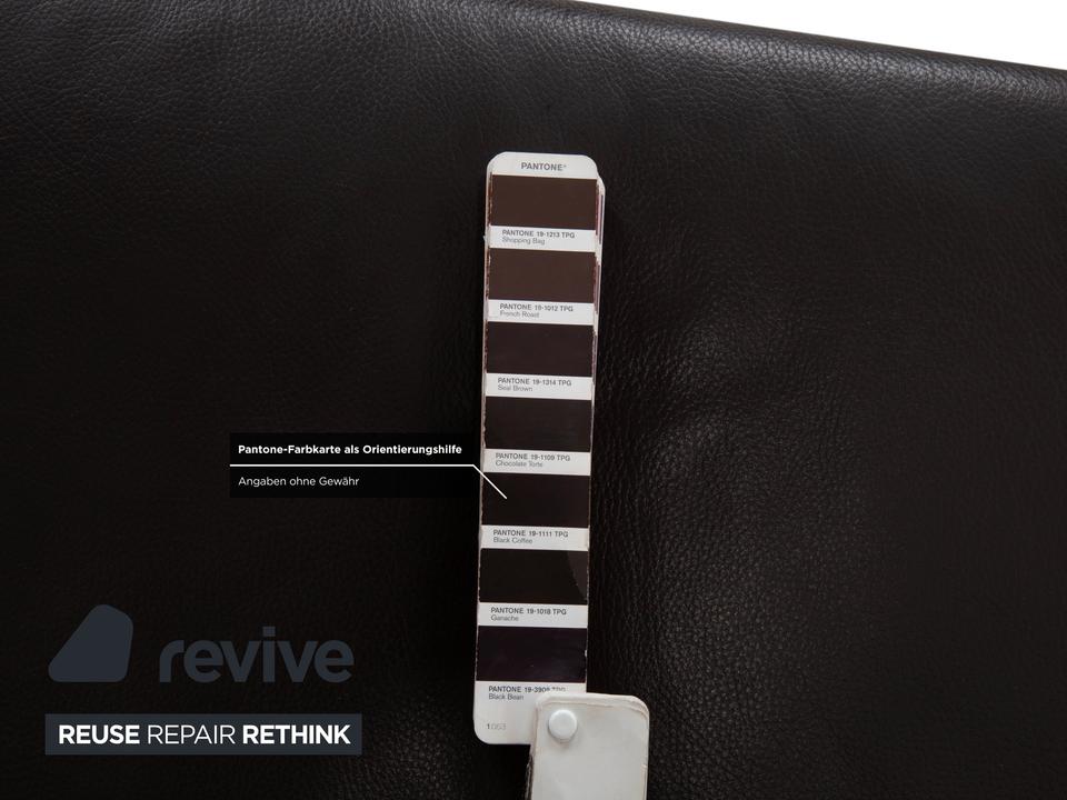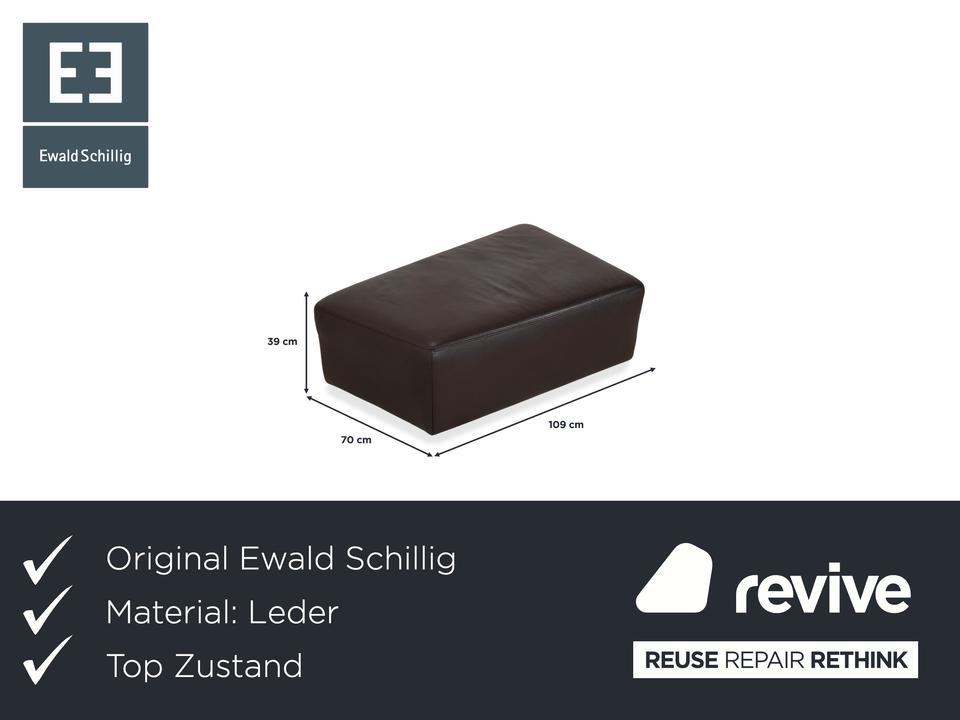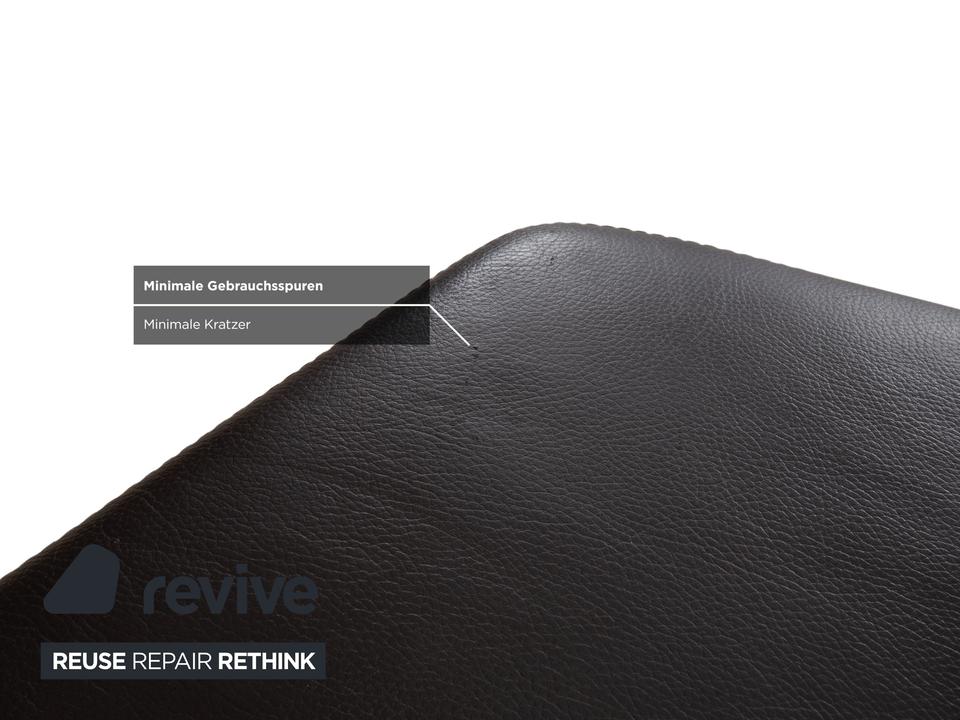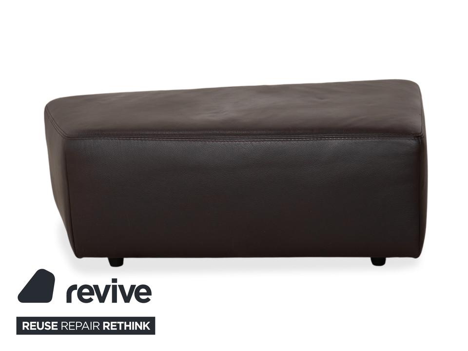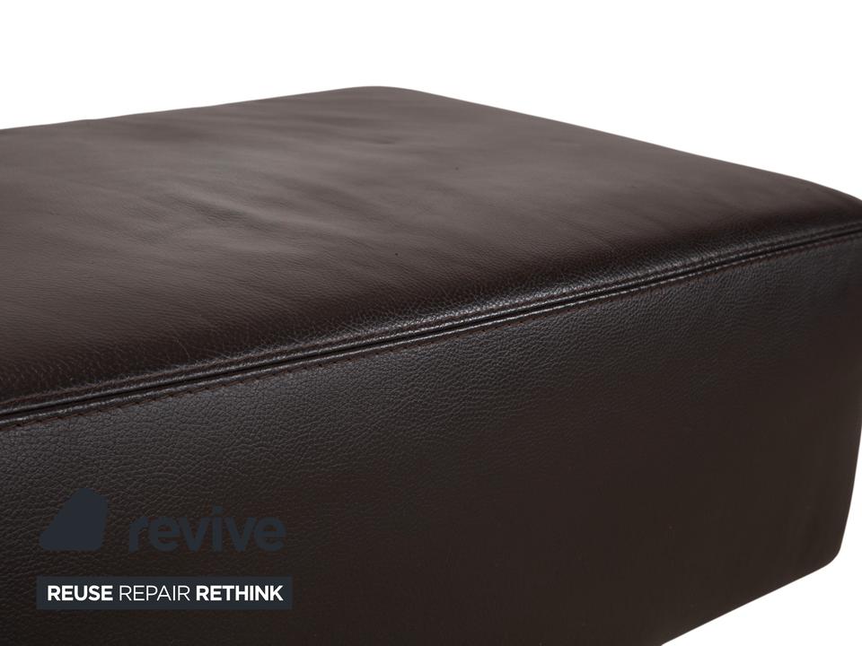 Ewald Schillig Hocker: Der solide Begleiter in BraunDieser Hocker ist die ideale Ergänzung zu einem großzügigen Sofa (wie dem Modell Quantum) und überzeugt durch seine schlichte, geerdete Ausstrahlung. Er ist ein funktionaler Allrounder, der Ruhe in den Raum bringt.Der Hocker ist komplett in hochwertiges, dunkelbraunes Leder gehüllt. Dieser Farbton (ein tiefes Mokka oder Espresso) wirkt sehr edel und ist unempfindlich, was das Möbelstück besonders alltagstauglich macht. Das Design ist kubisch und kompakt: Die klare, rechteckige Form verzichtet auf Spielereien und setzt auf reine Fläche. Eine feine Naht, die entlang der oberen Kante verläuft, rahmt die Sitzfläche dezent ein und zeugt von guter Verarbeitung.Im Gegensatz zu vielen anderen Modellen steht dieser Hocker auf sehr niedrigen, kaum sichtbaren schwarzen Füßen. Dadurch wirkt er sehr bodenständig und massiv, fast wie ein Monolith, der fest im Raum steht.