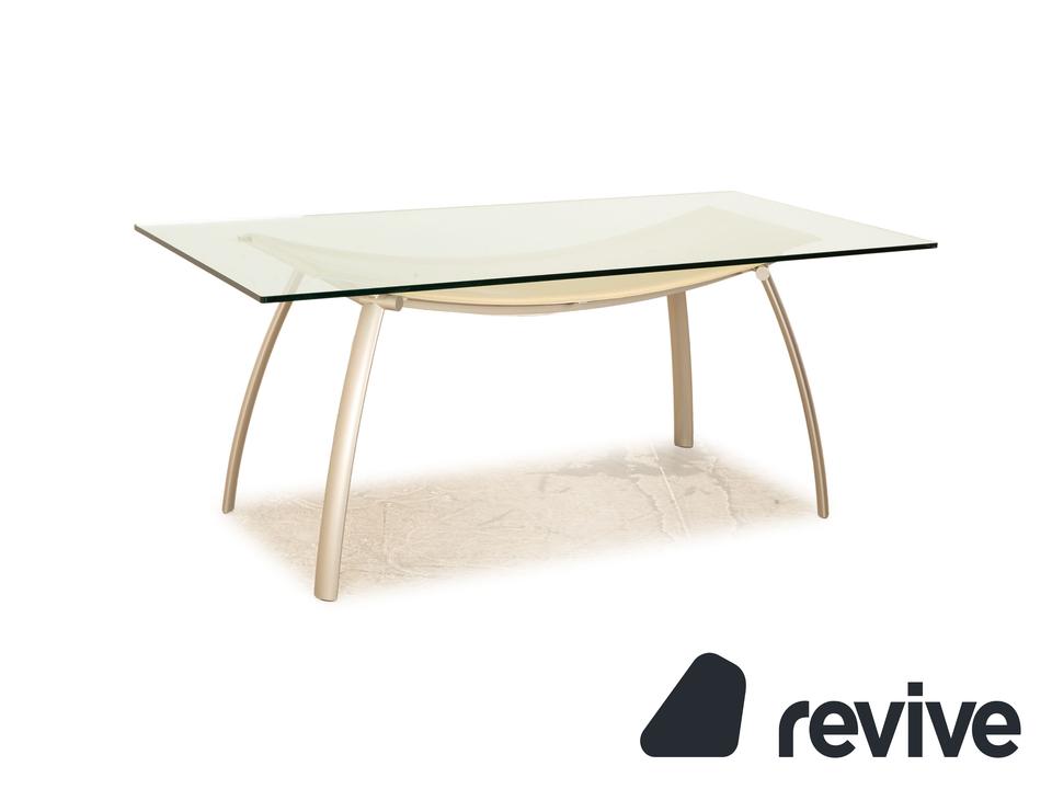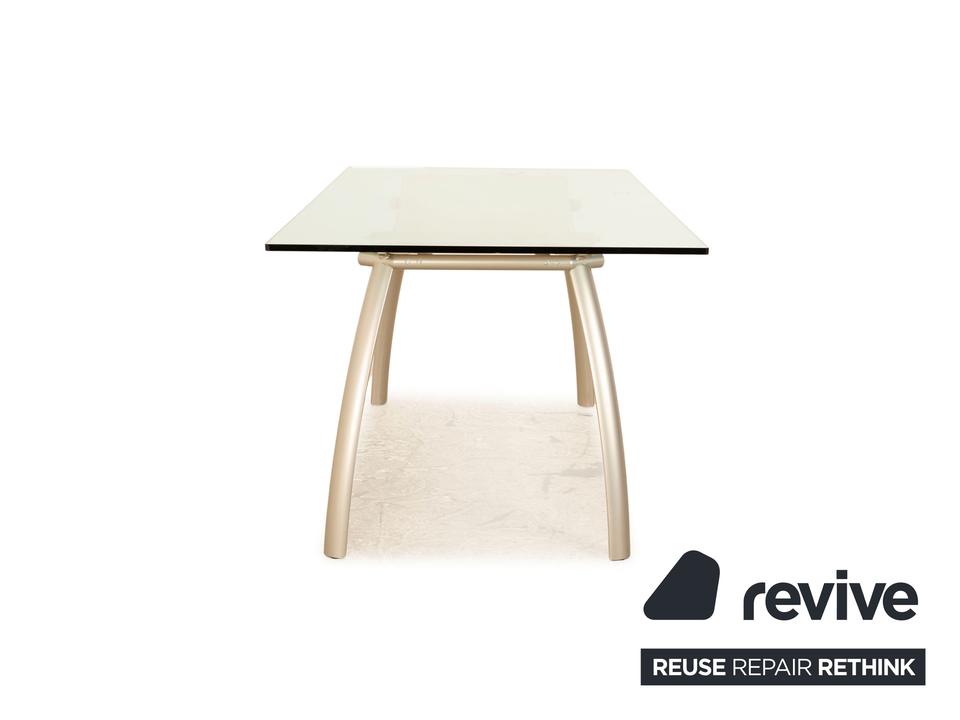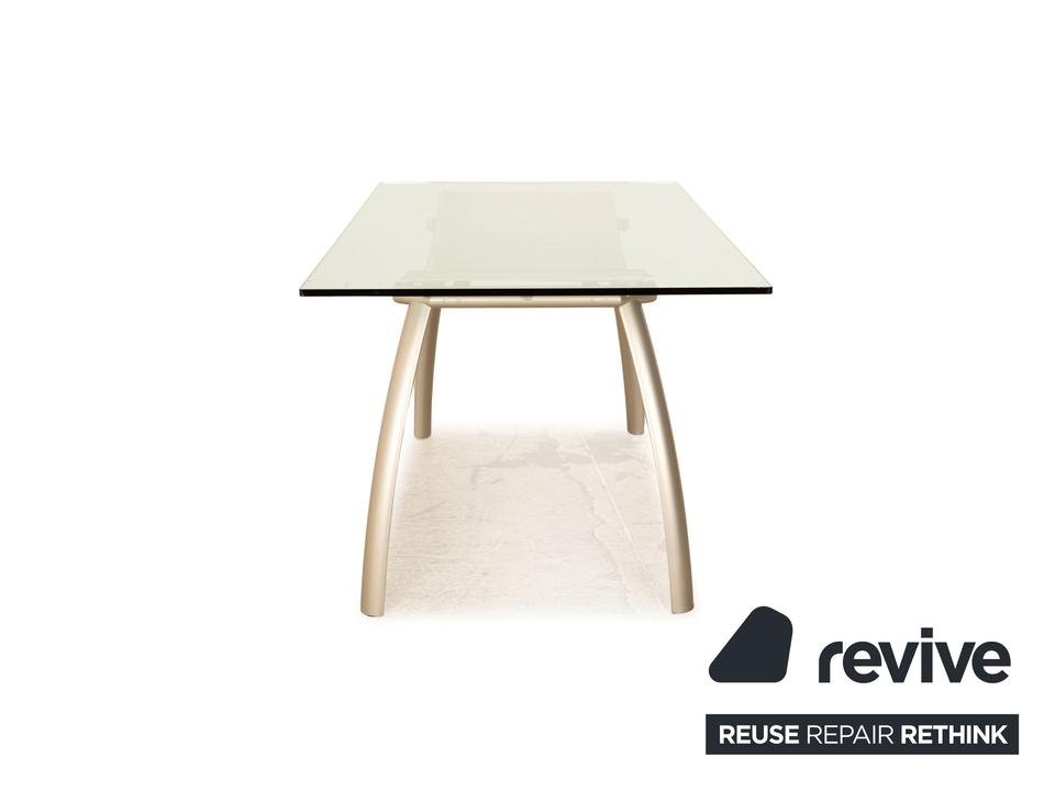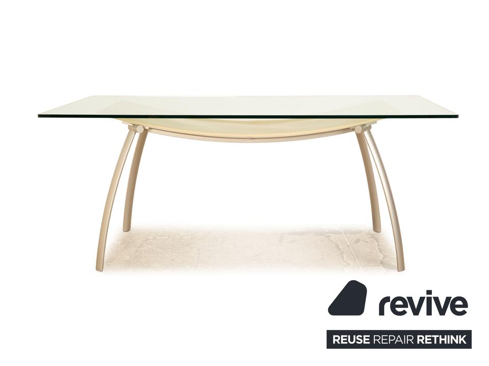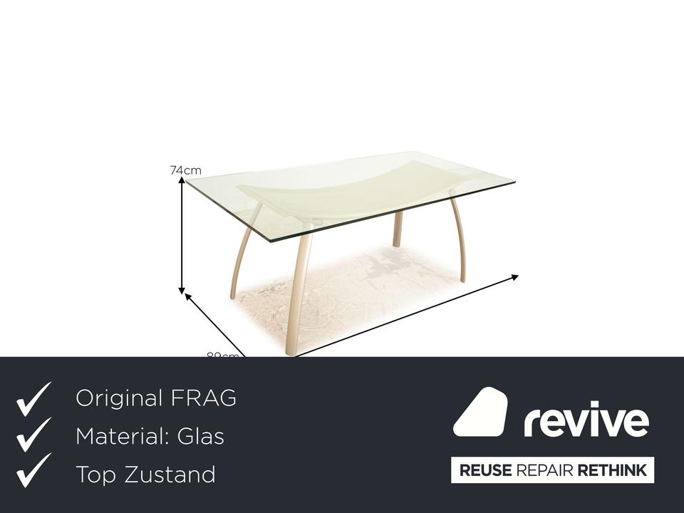 Der FRAG Tisch besteht aus einer rechteckigen Glasplatte und steht auf Metallfüßen. Das zeitlose, rustikale Design zeichnet den Esstisch aus.