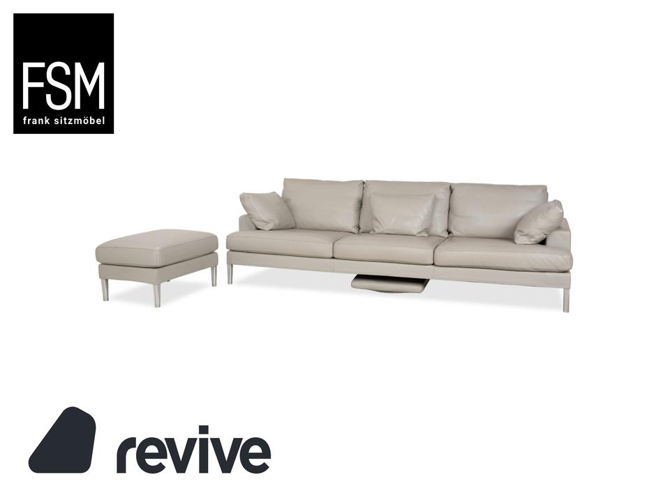 FSM Clarus Leder Dreisitzer Hocker Grau Kiesel Sofa Couch