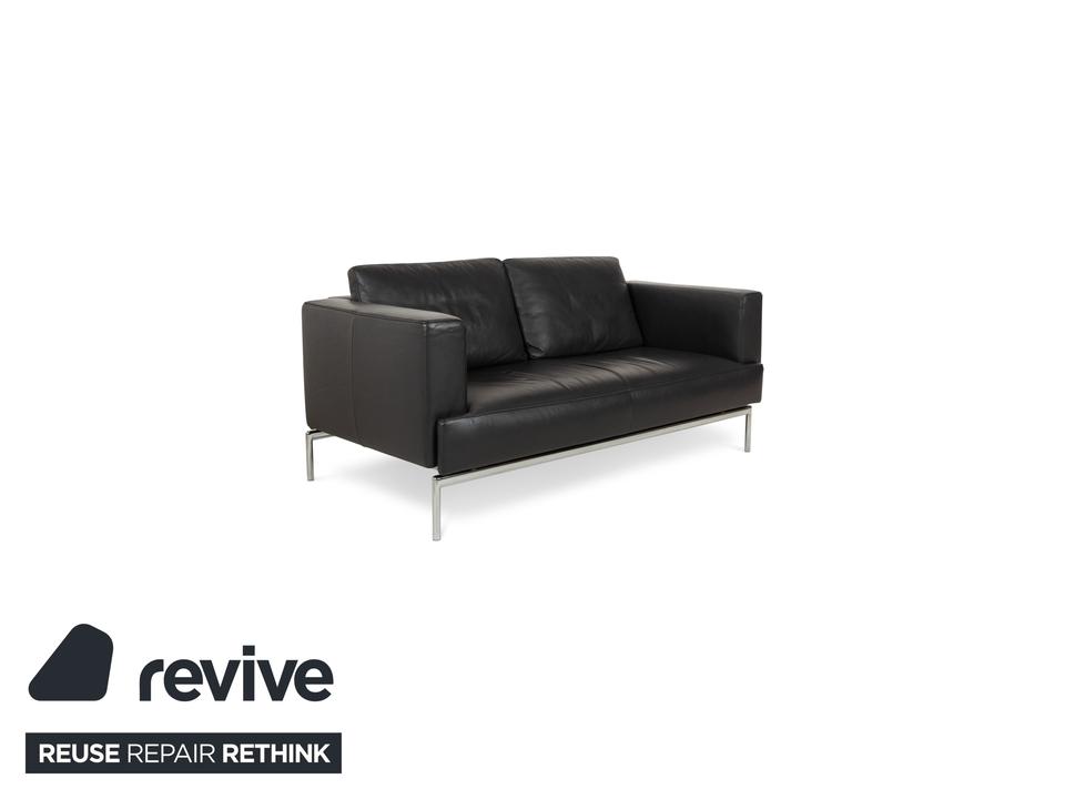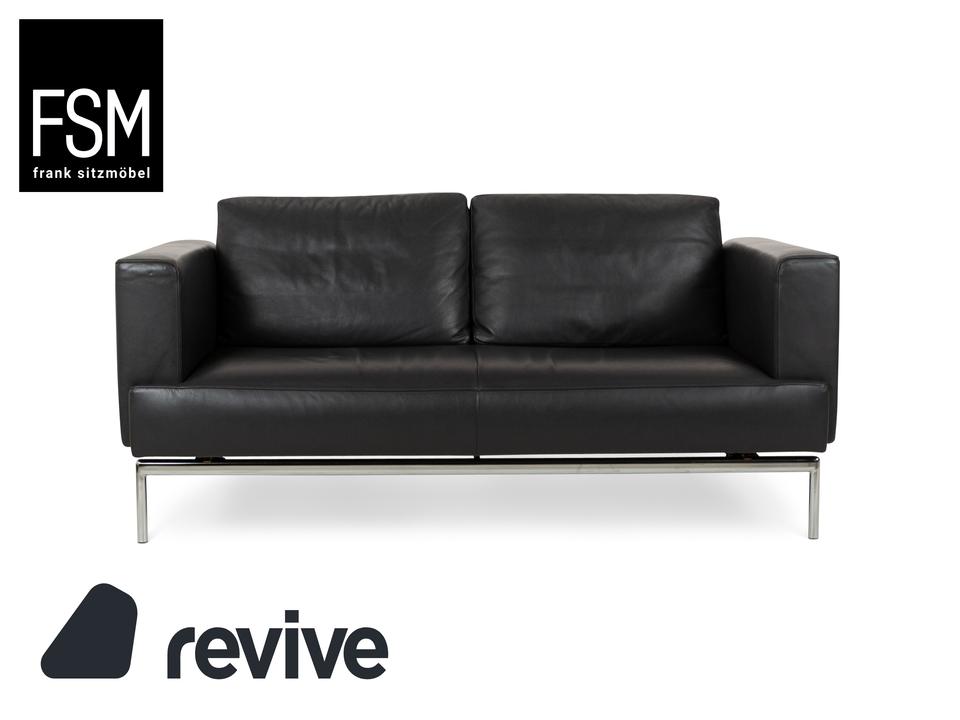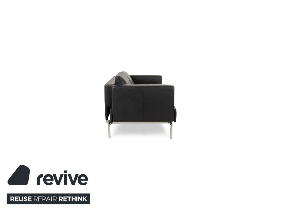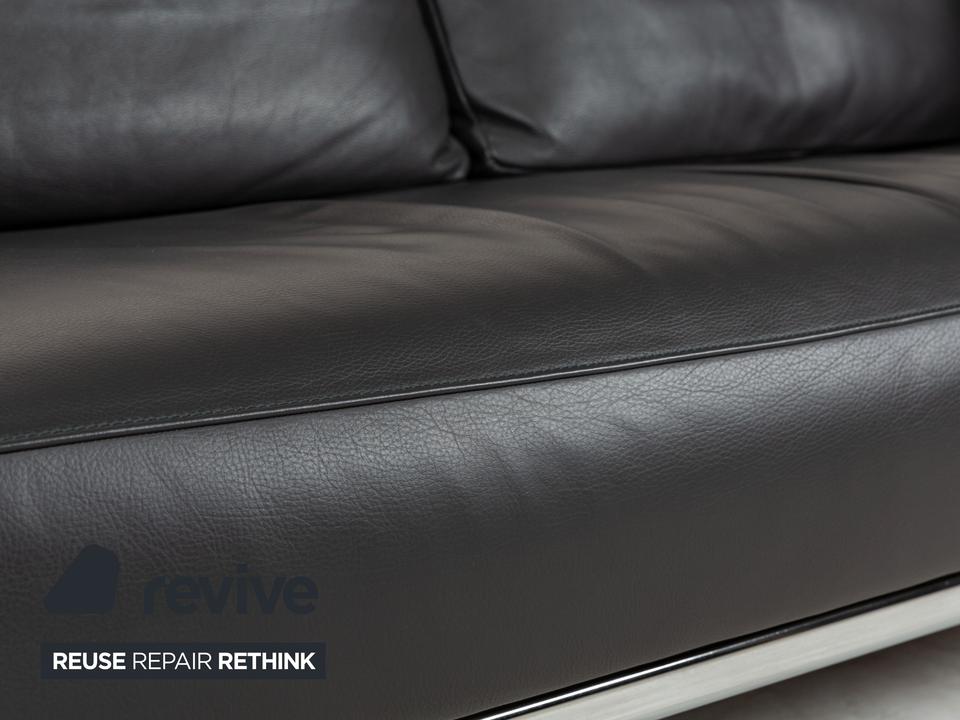 Das Sofs Easy FSM von FSM ist mit einem dunkelgrauen Echtleder bezogen und steht auf einem schlanken, eleganten Metallgestell in Silber. Der Dreisitzer verfügt über eine in der Tiefe verstellbare Sitzfläche für erhöhten Komfort. Klassisches, leicht zu kombinierendes Design zeichnet dieses Sofa aus.
