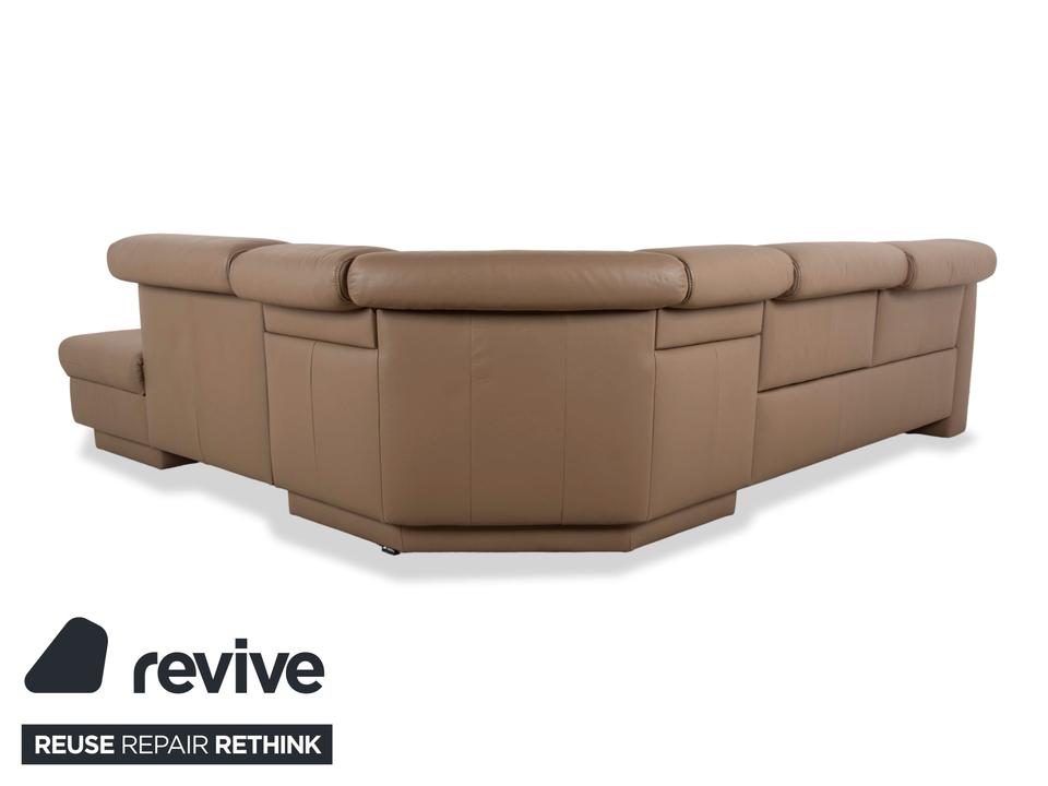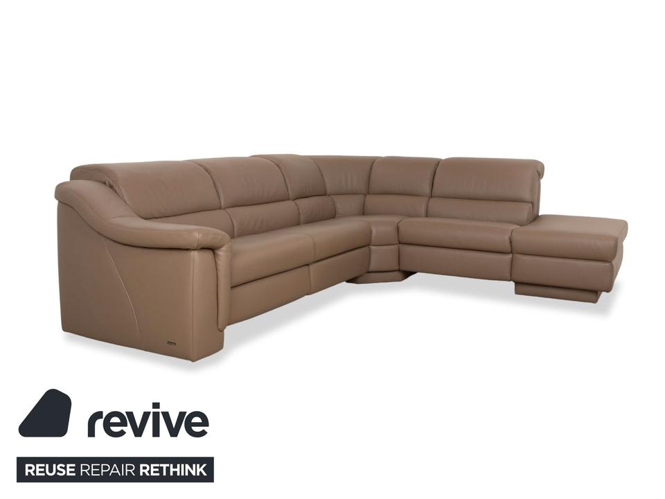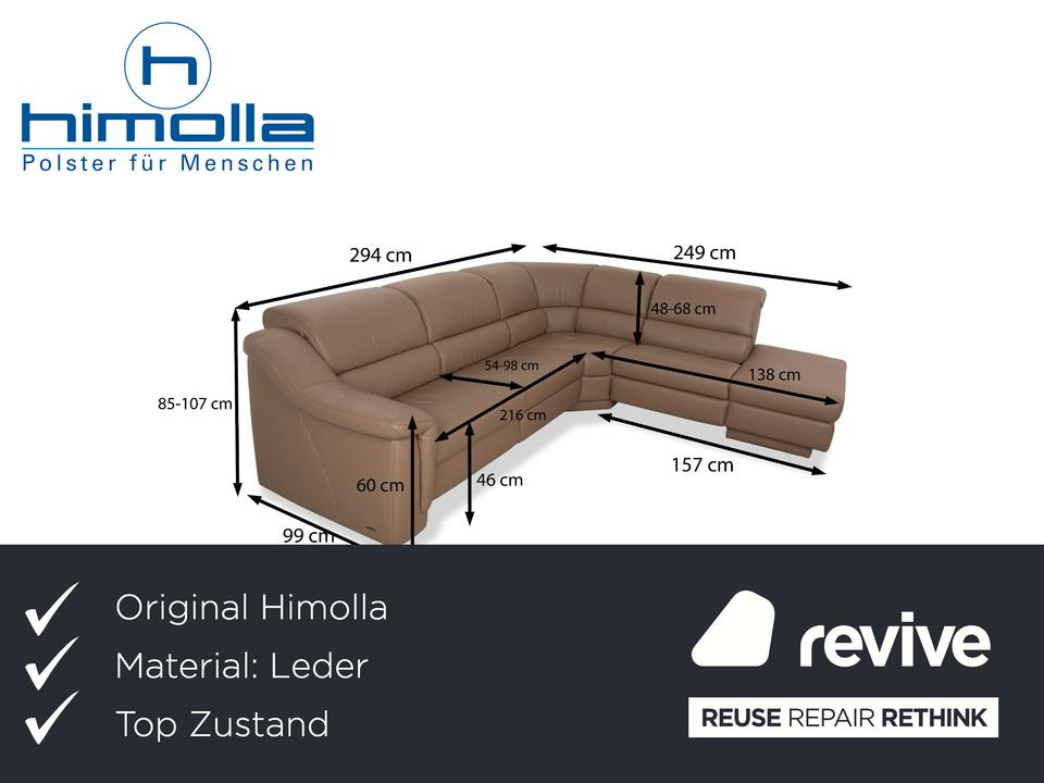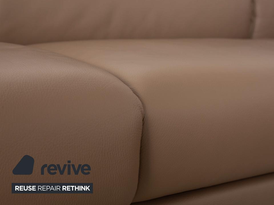 Dieses Himolla Ecksofa erscheint durch seine beige Farbe und die klare Linienführung als echter Hingucker. Die Polsterung und die elektrische Funktion zum Einstellen der Sitz- und Liegeposition sorgen dabei für den nötigen Komfort, während das hochwertige Leder eine besondere Qualität bietet.