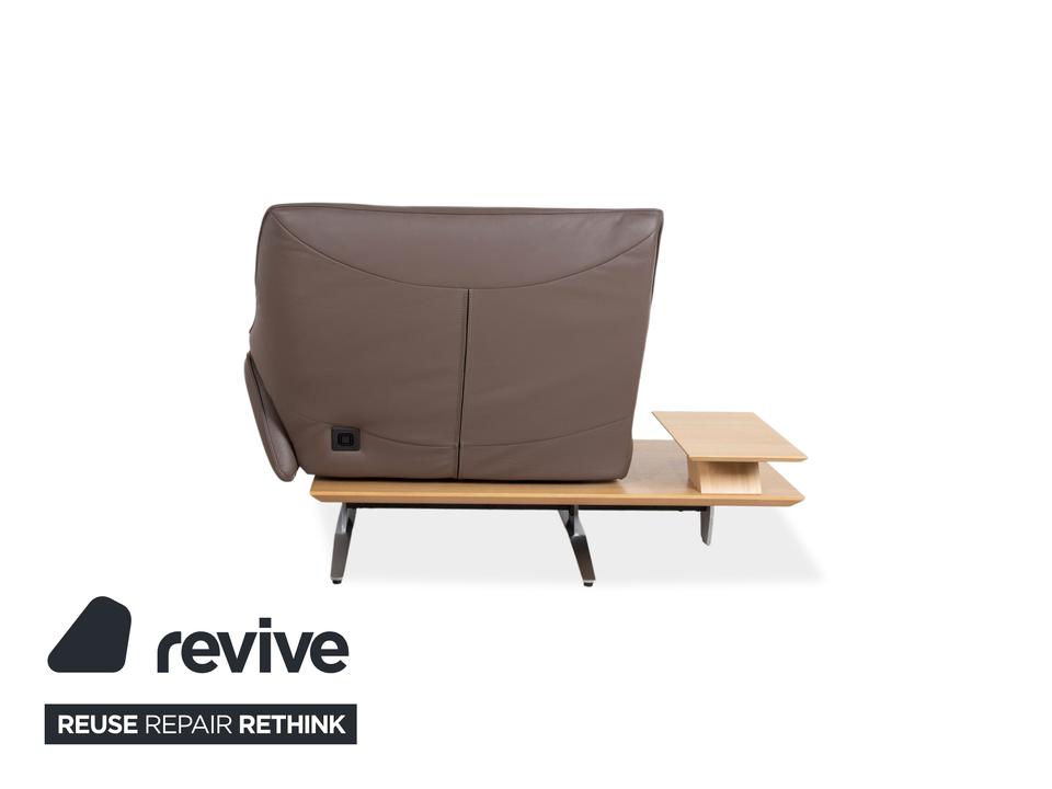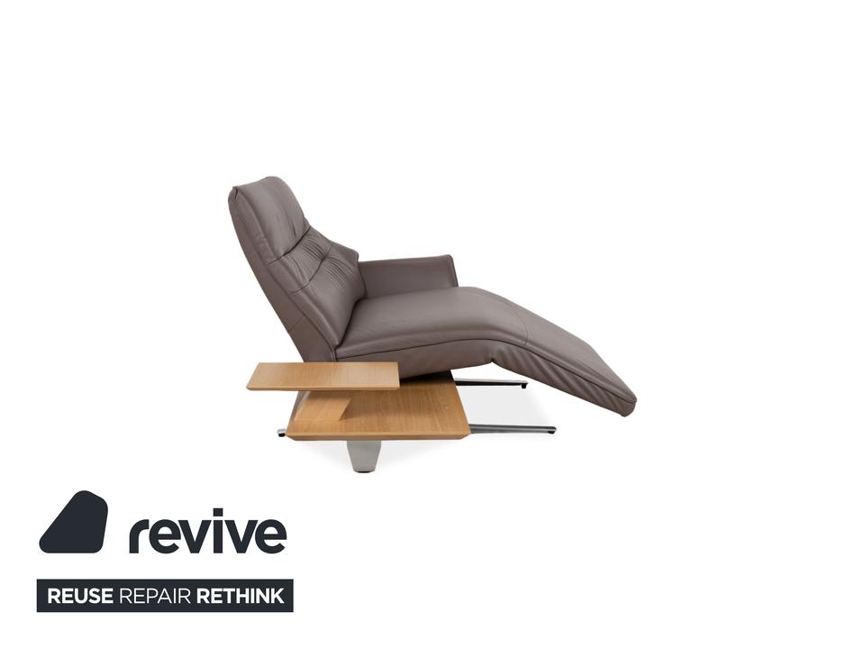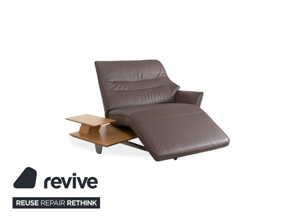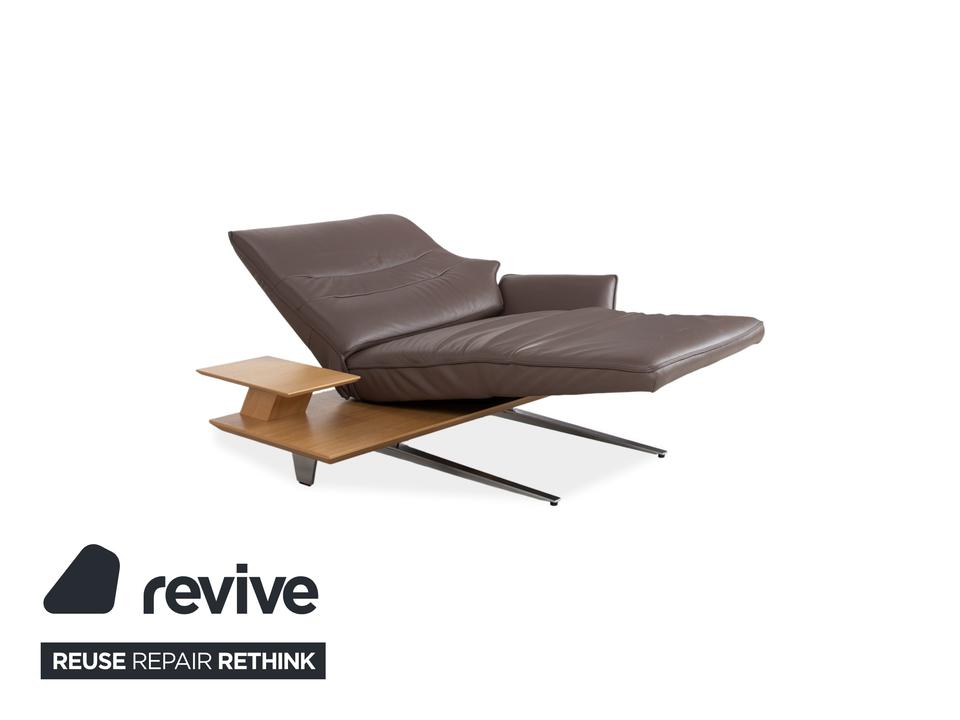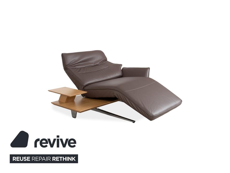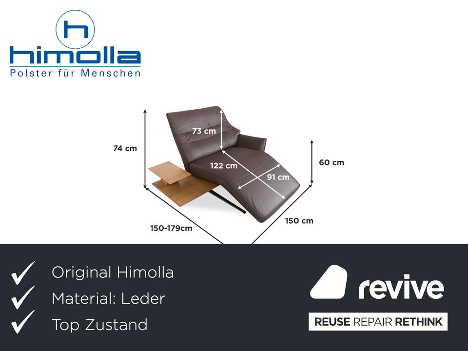Die Himolla 4905 Liege ist definitiv ein Modell für Menschen, die keine Kompromisse bei der Bequemlichkeit und Stilbewusstsein machen wollen. Was uns an diesem Entwurf besonders gefällt, ist der spannende Materialmix aus dem braunen Leder und dem warmen Holzplateau, der sofort eine wohnliche Atmosphäre in dein Wohnzimmer bringt. Das Design wird perfekt von den Metallkufen abgerundet und wirkt so durch die Bodenfreiheit auch angenehm leicht im Raum. Durch die Kombination aus der großzügigen Liegefläche und der integrierten praktischen Ablagefläche nutzt du den Platz perfekt aus.Dank der integrierten elektrischen Funktion lassen sich die Rückenlehne und die Kopflehne stufenlos verstellen, sodass du mühelos von einer aufrechten Position in eine entspannte Relaxhaltung wechseln kannst. Das Besondere ist zudem die Drehfunktion des Sitzes auf dem Holzplateau.