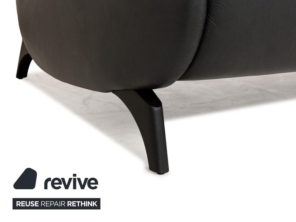 Das Sofa Cumuly von Himolla ist mit grauem Leder bezogen und steht auf eleganten Metallelementen in Schwarz. Der Zweisitzer zeichnet sich durch sein modernes, auf Komfort bedachtes Design aus und verfügt über in der Höhe verstellbare Kopfstützen.