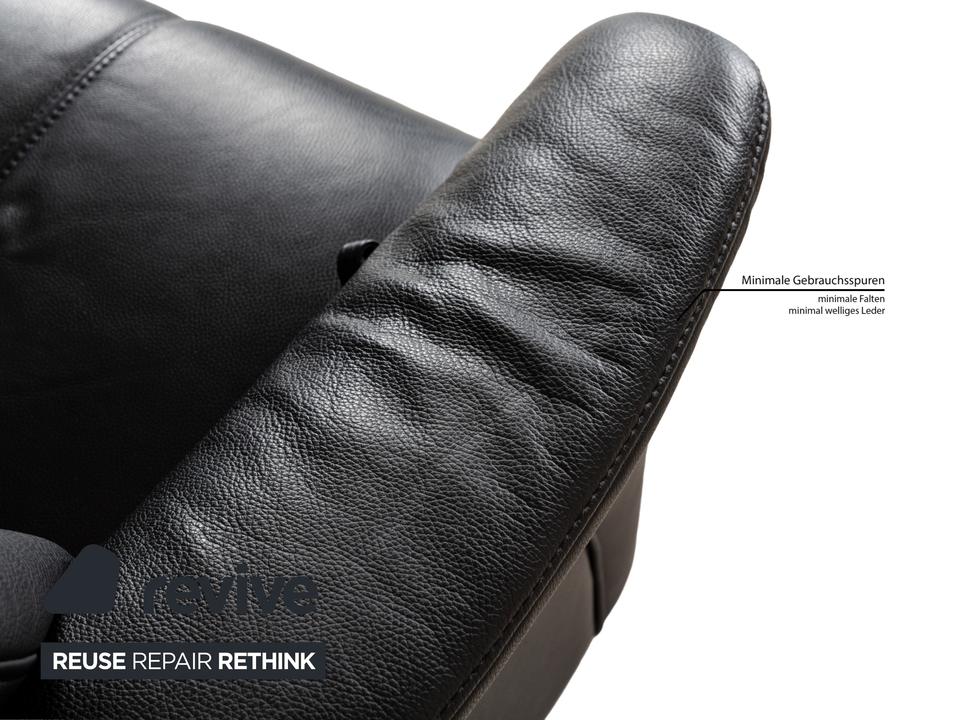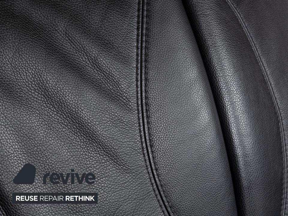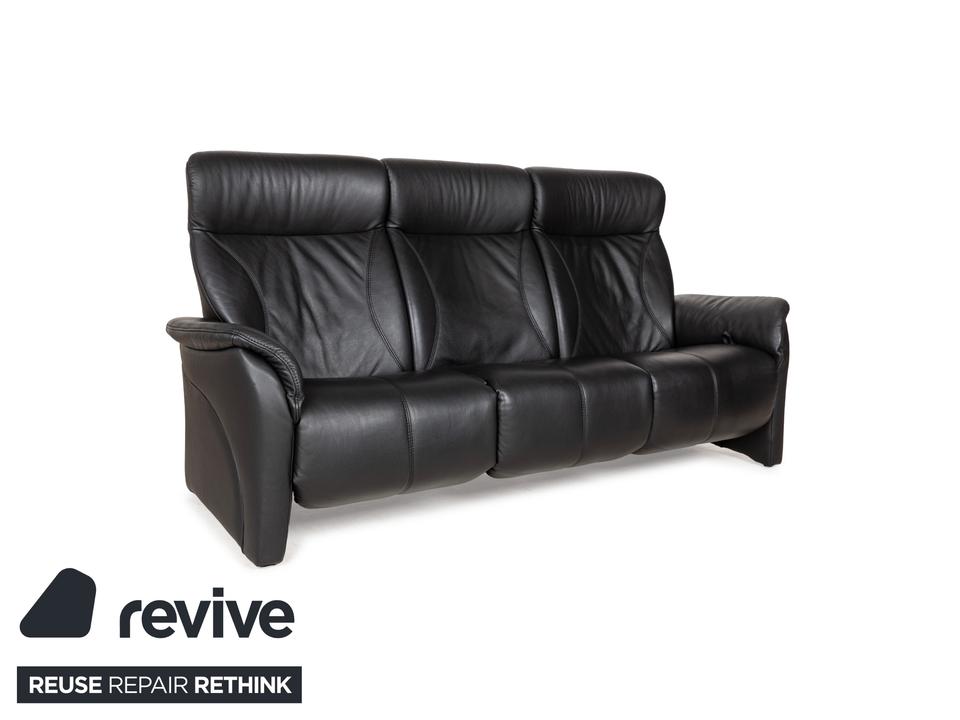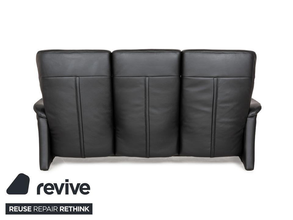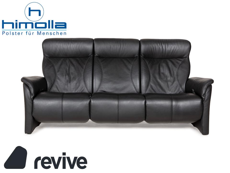 Das Sofa Cumuly von Himolla ist mit schwarzem Leder bezogen und steht auf bodentiefen Seitenteilen. Der Dreisitzer zeichnet sich durch sein klassisches Design mit sanften Schwüngen aus, durch das er leicht mit weiteren Einrichtungsgegenständen kombinierbar ist. Hohe, nach hinten neigbare Rückenlehnen ,breite Armlehnen und erweiterbare Sitzflächen versprechen großen Komfort.