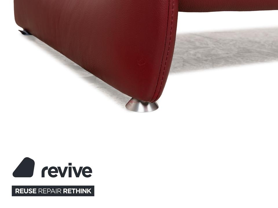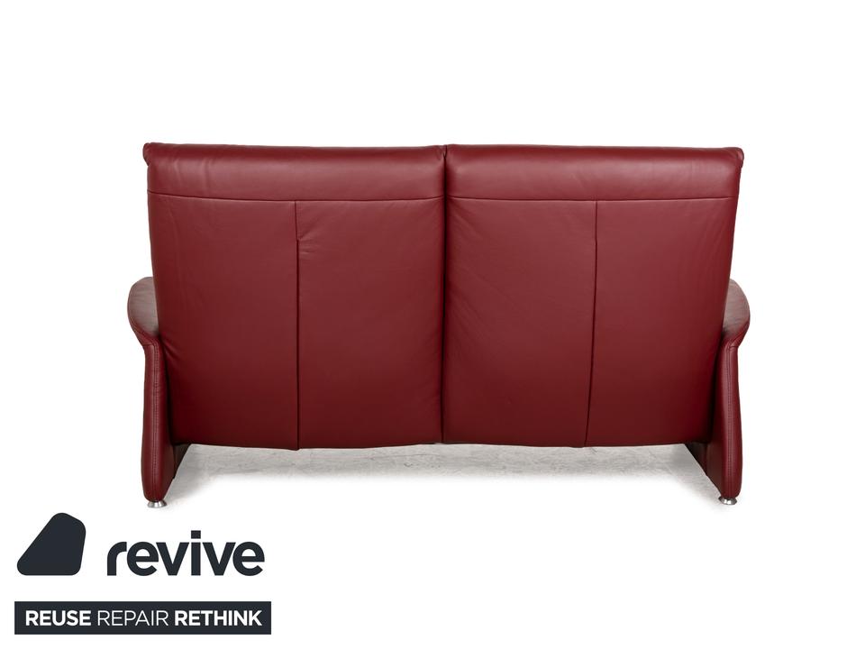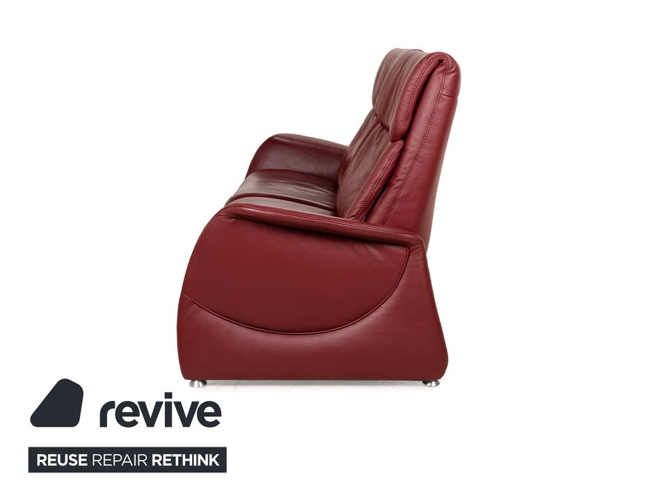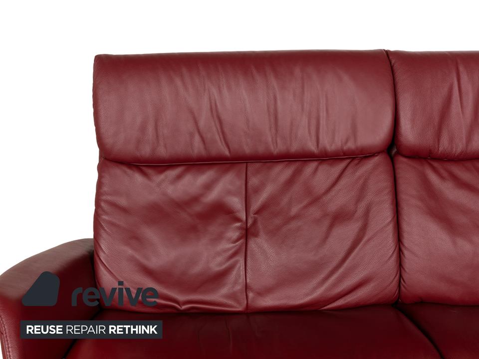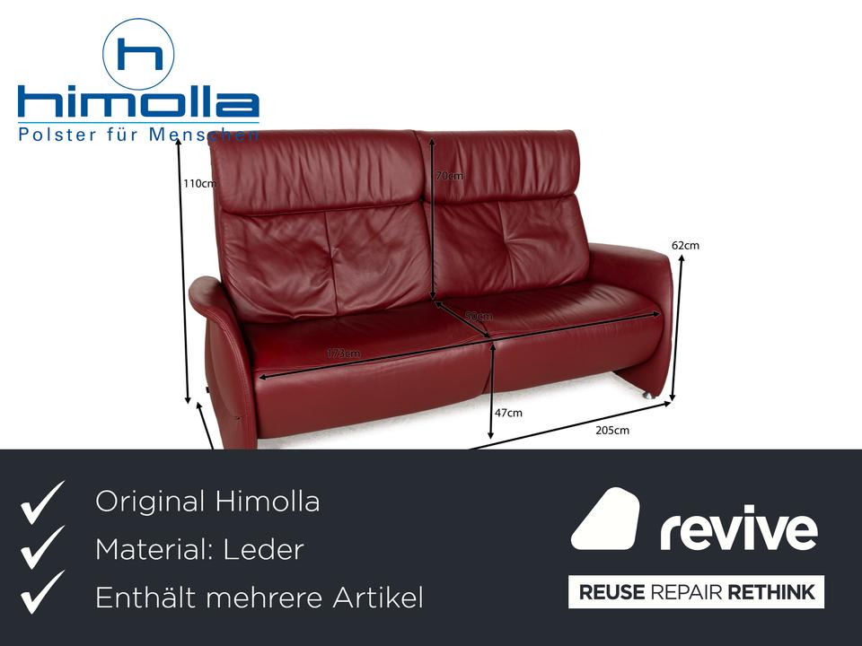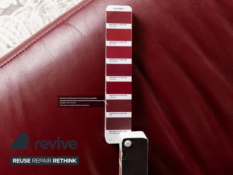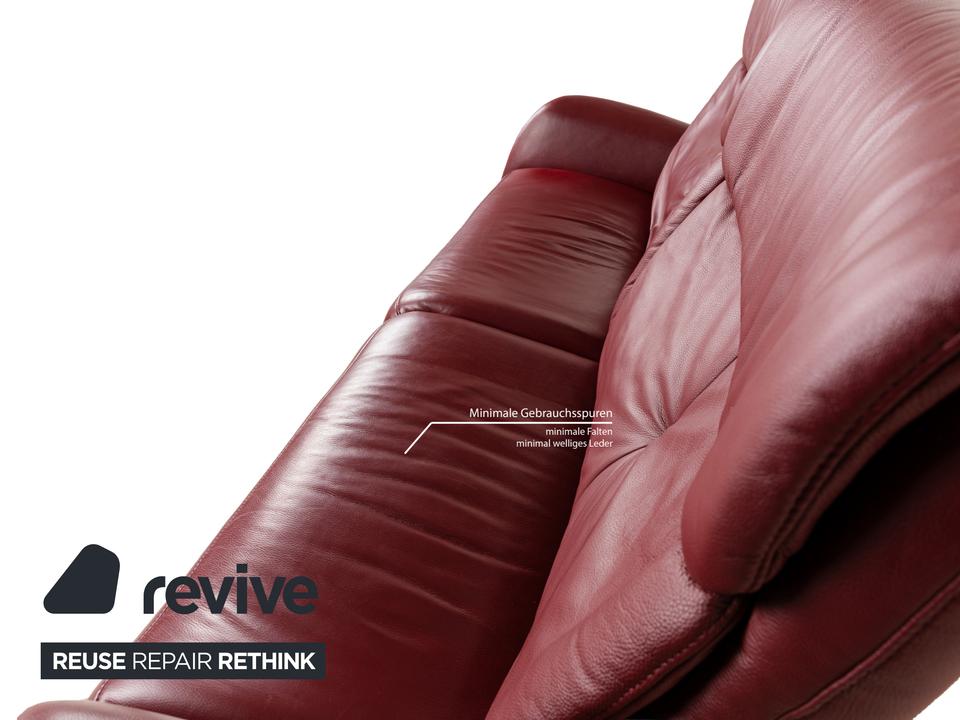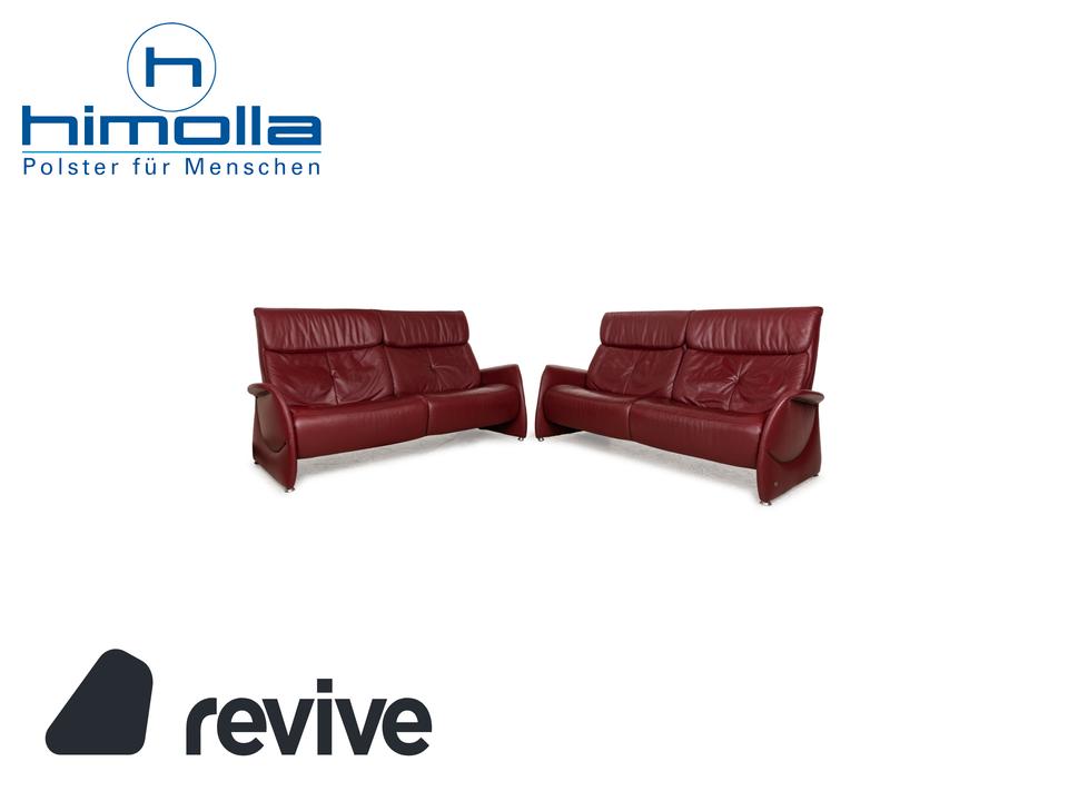 Die Sofa-Garnitur Cumuly von Himolla, bestehend aus zwei baugleichen Dreisitzern, ist mit dunkelrotem Leder bezogen und steht auf nahezu bodentiefen Seitenteilen, die von schmalen, kappenförmigen Metallfüßen getragen werden. Das Set zeichnet sich durch sein klassisches Design aus, das auf hohen Komfort bedacht ist: Die hohen Rückenlehnen und die breite Sitzfläche ermöglichen bequemes und stilvolles Sitzen.