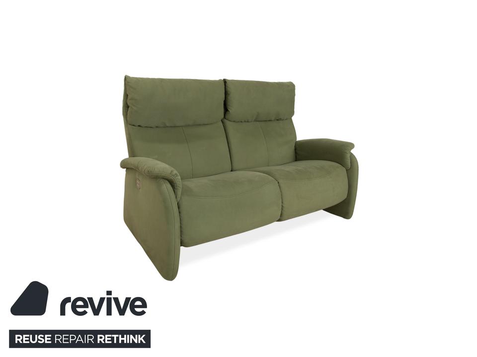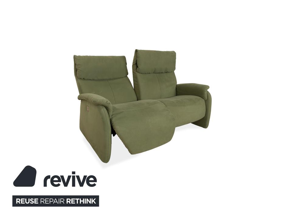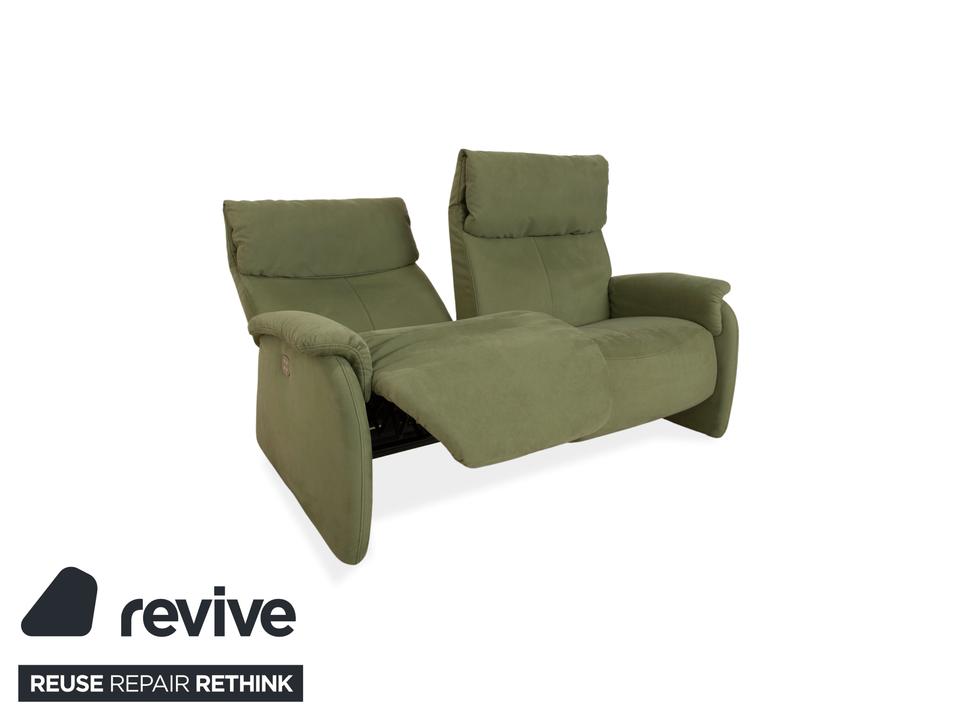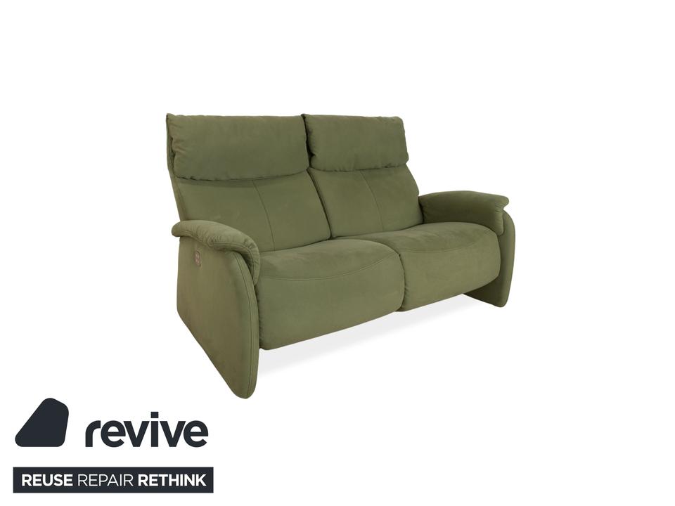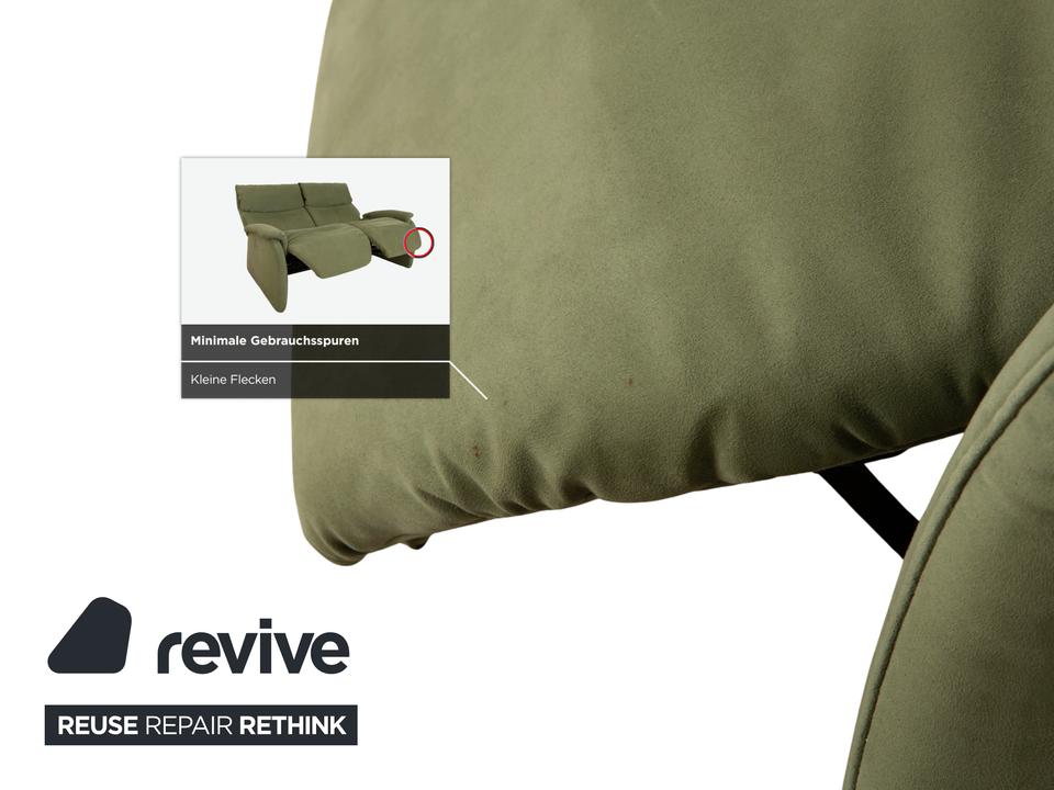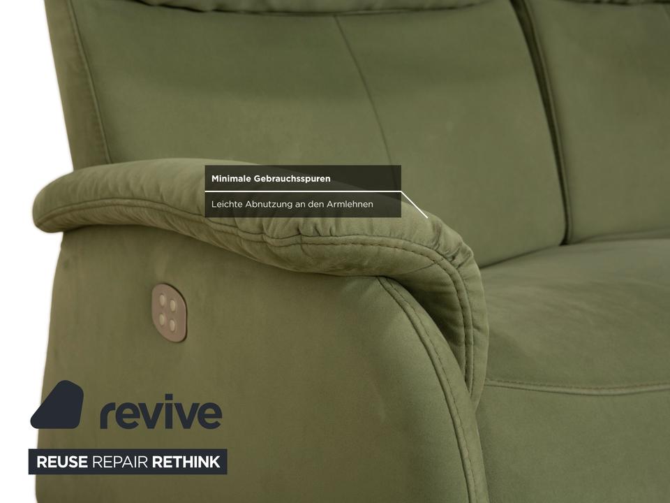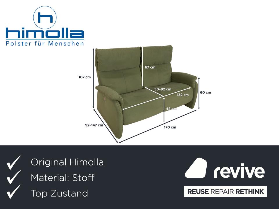 Das Sofa Cumuly von Himolla ist mit oliv grünem Stoff bezogen und verfügt über bodentiefe Seitenteile. Der Zweisitzer ist mit den hohen Rückenlehnen und der breiten Sitzfläche auf höchsten Komfort ausgelegt. Durch die elektrische Relaxfunktion kann von einer aufrechten Sitzposition bis zur entspannten Liegehaltung individuell gewechselt werden.