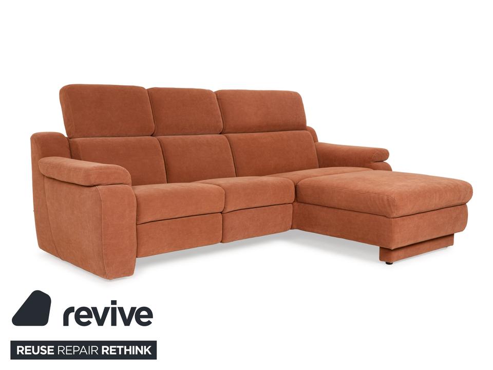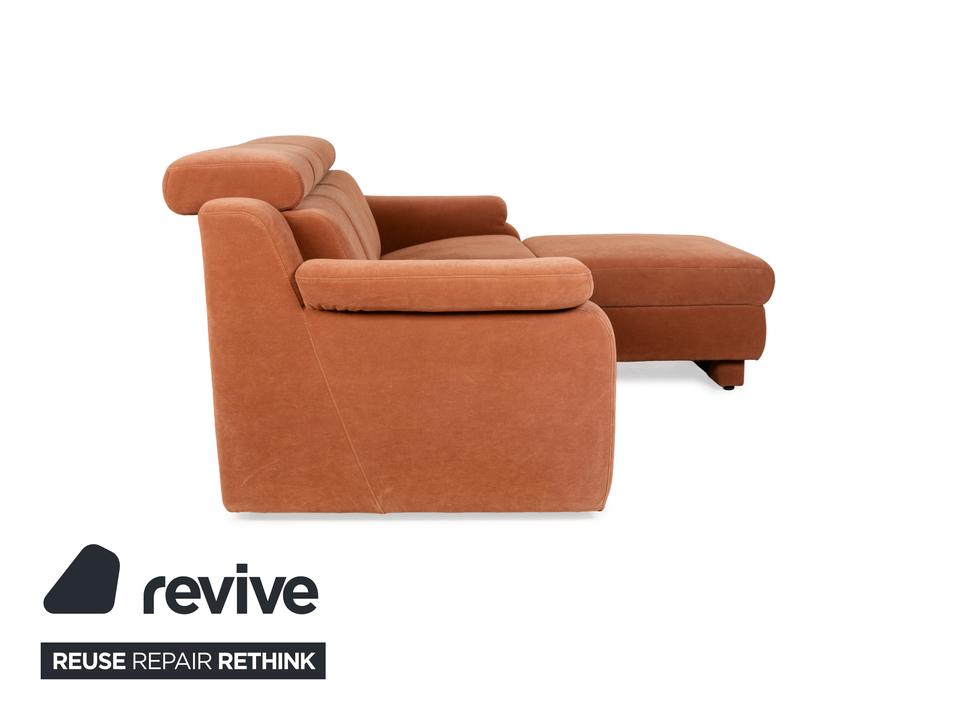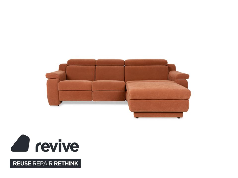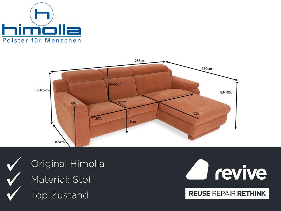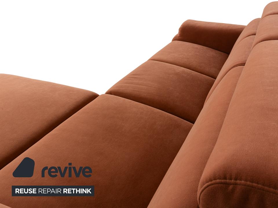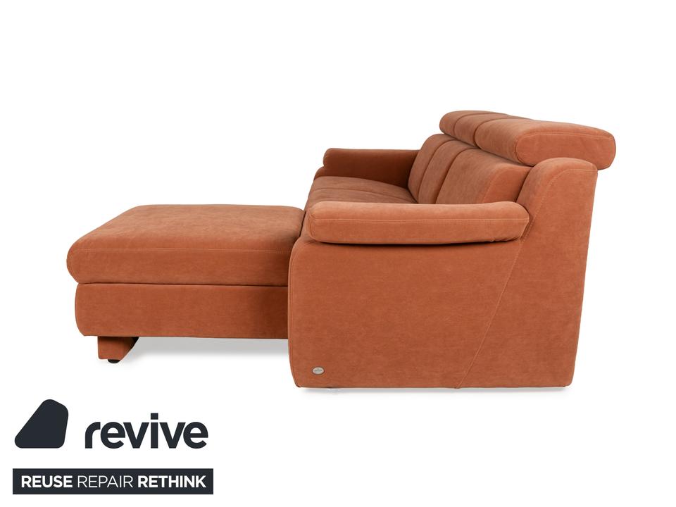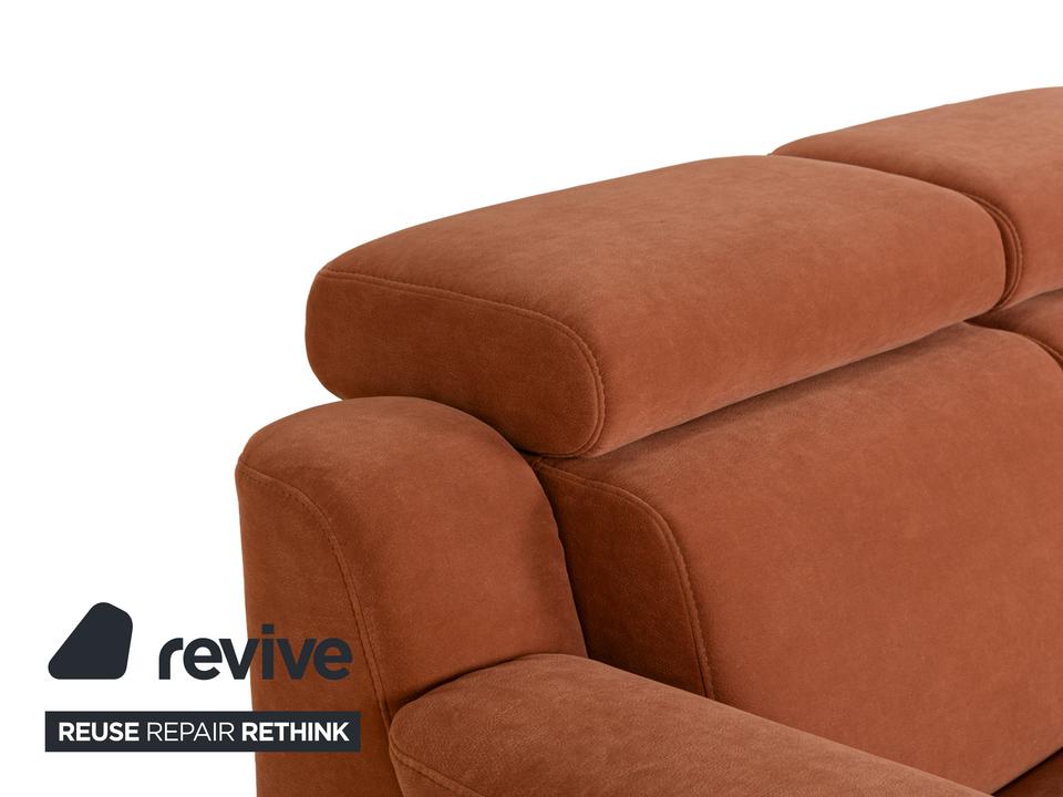 Das Sofa Planopoly von Himolla ist mit einem hellbraunen Stoff bezogen und steht auf bodentiefen Seitenteilen. Es zeichnet sich durch sein fast schon geometrisches Design mit klaren Kanten und Linien aus. Das Ecksofa verfügt über in der Höhe verstellbare Kopfstützen, so dass hoher Komfort garantiert ist.