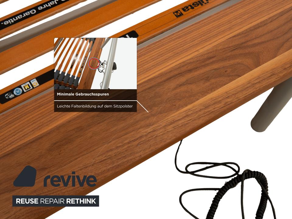 Das Hülsta Bett ist aus einem hochwertigen Holzgestell inklusive Lattenrost gefertigt. Dieses bringt ein hohes Maß an Langlebigkeit und Stabilität mit sich. Der braune Farbton sorgt für eine entspannende Atmosphäre und fügt sich perfekt in jeden Raum ein. Zudem verfügt es über eine Vielzahl an elektrisch verstellbaren Position, wodurch die maximal bequeme Position eingenommen werden kann.